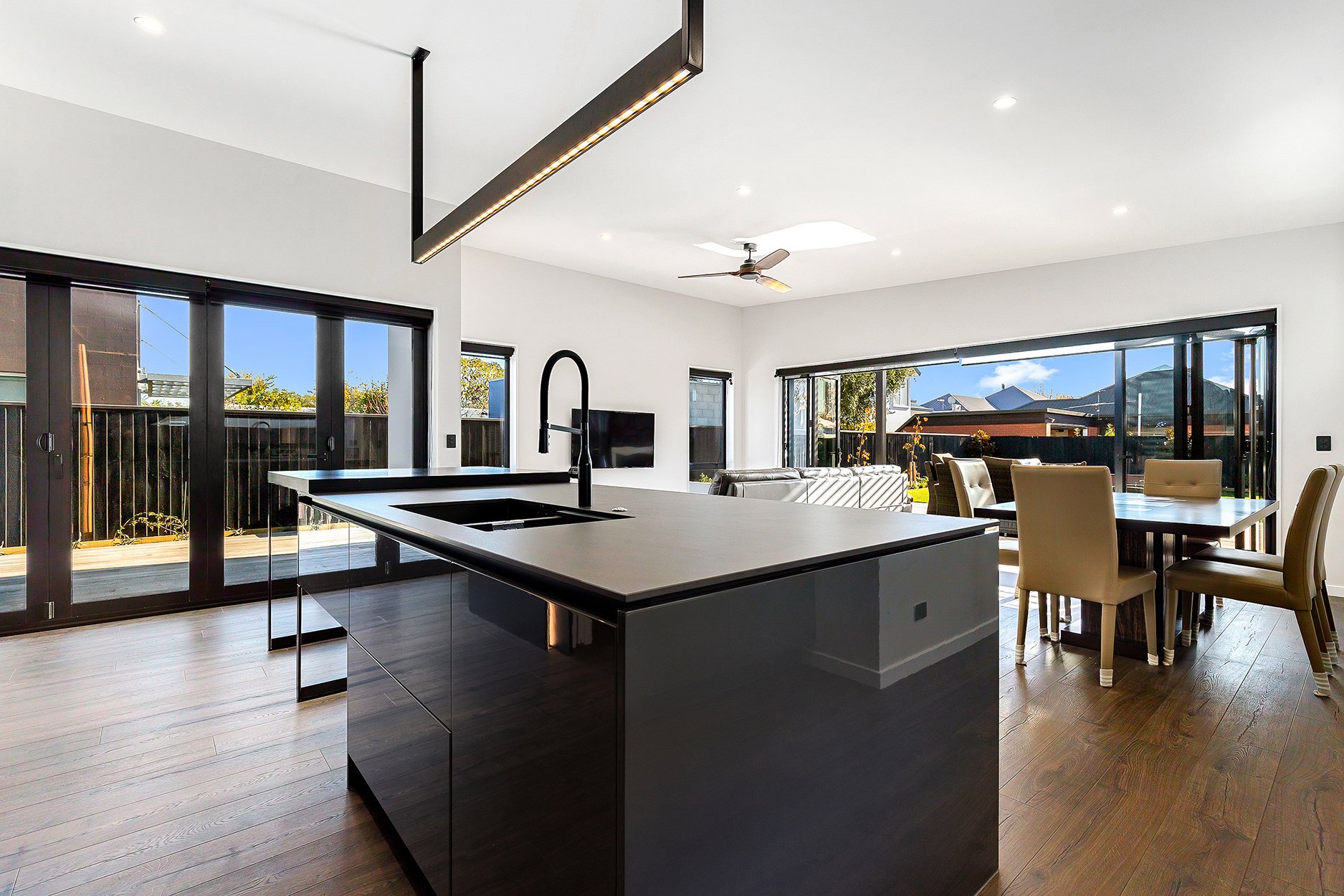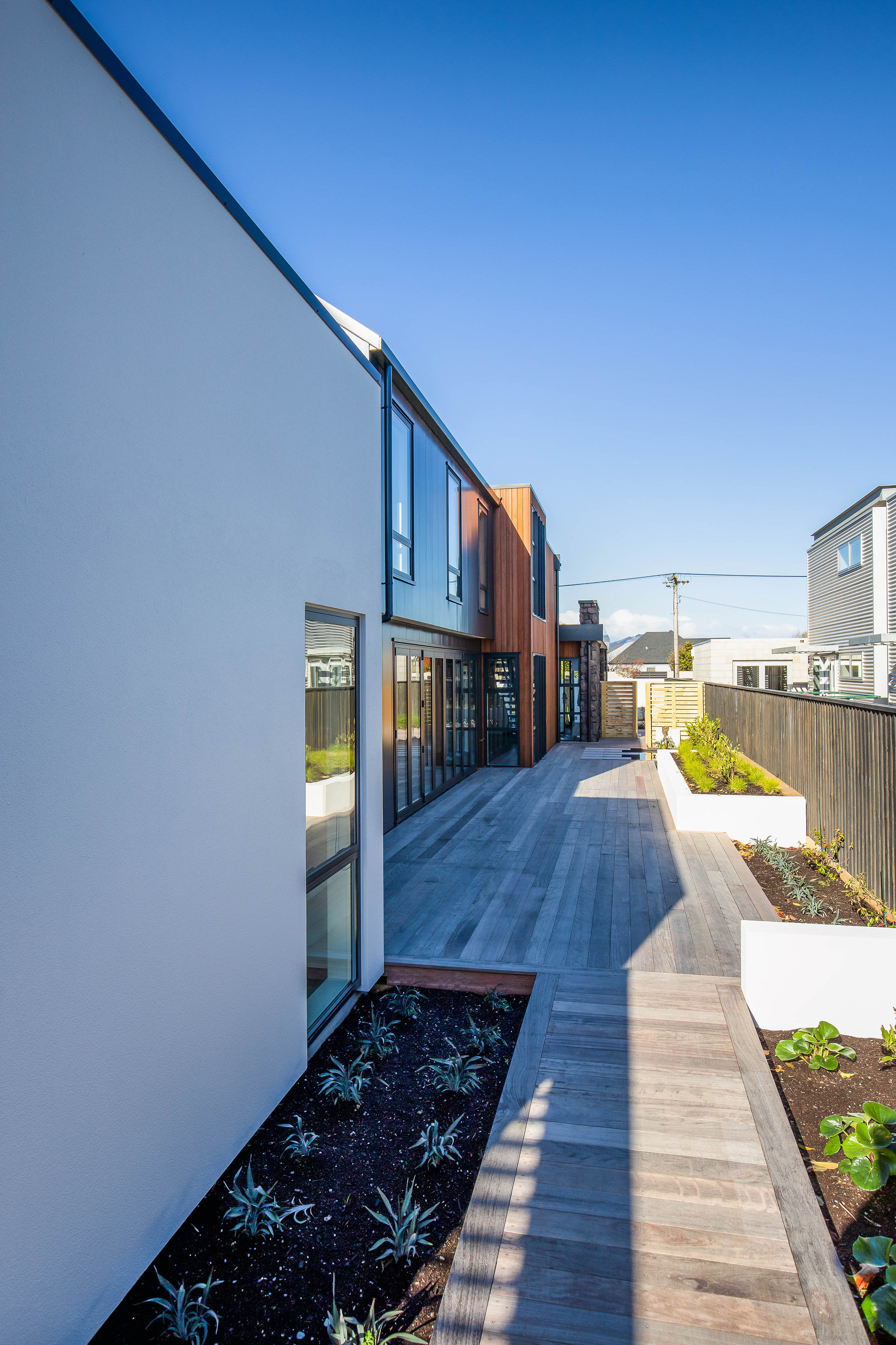Comprised of a series of distinct volumes, stacked one behind the other, this ultra-modern Christchurch home is a brilliant response to its long, slender site.
