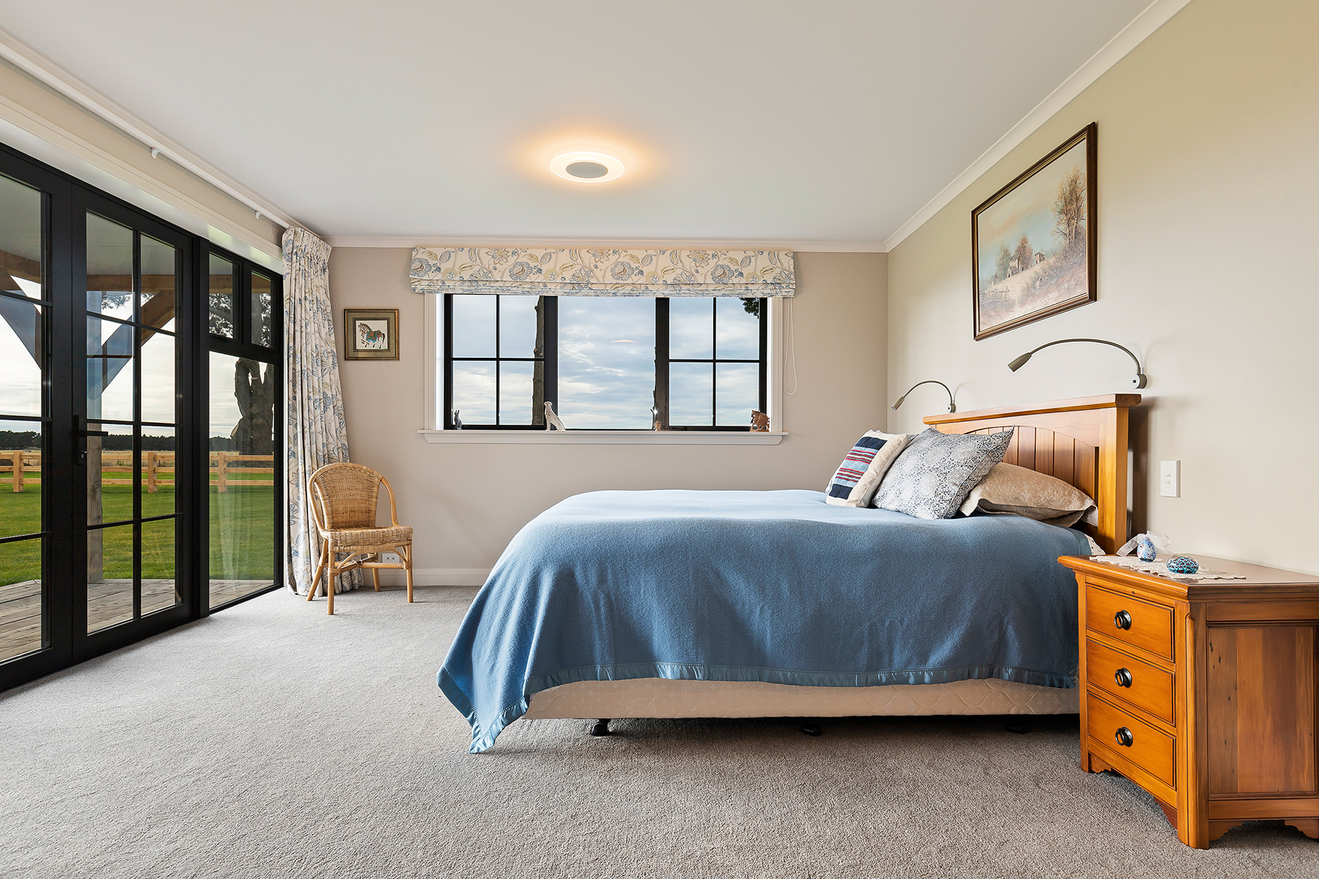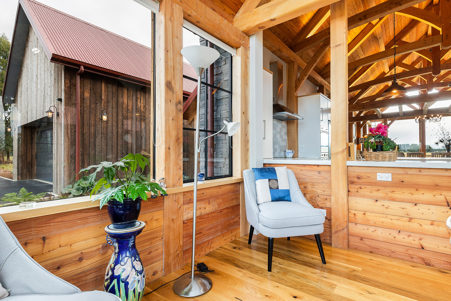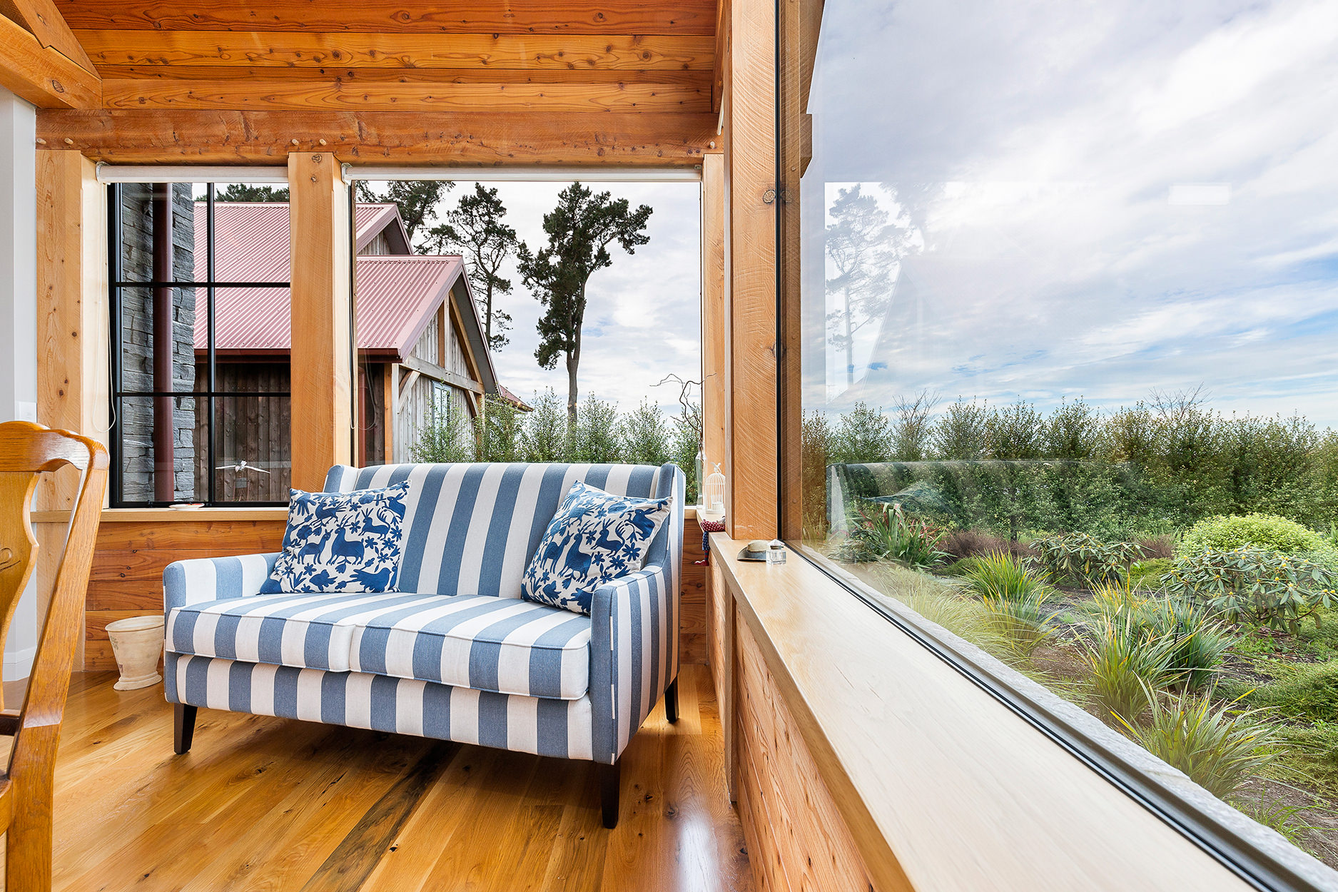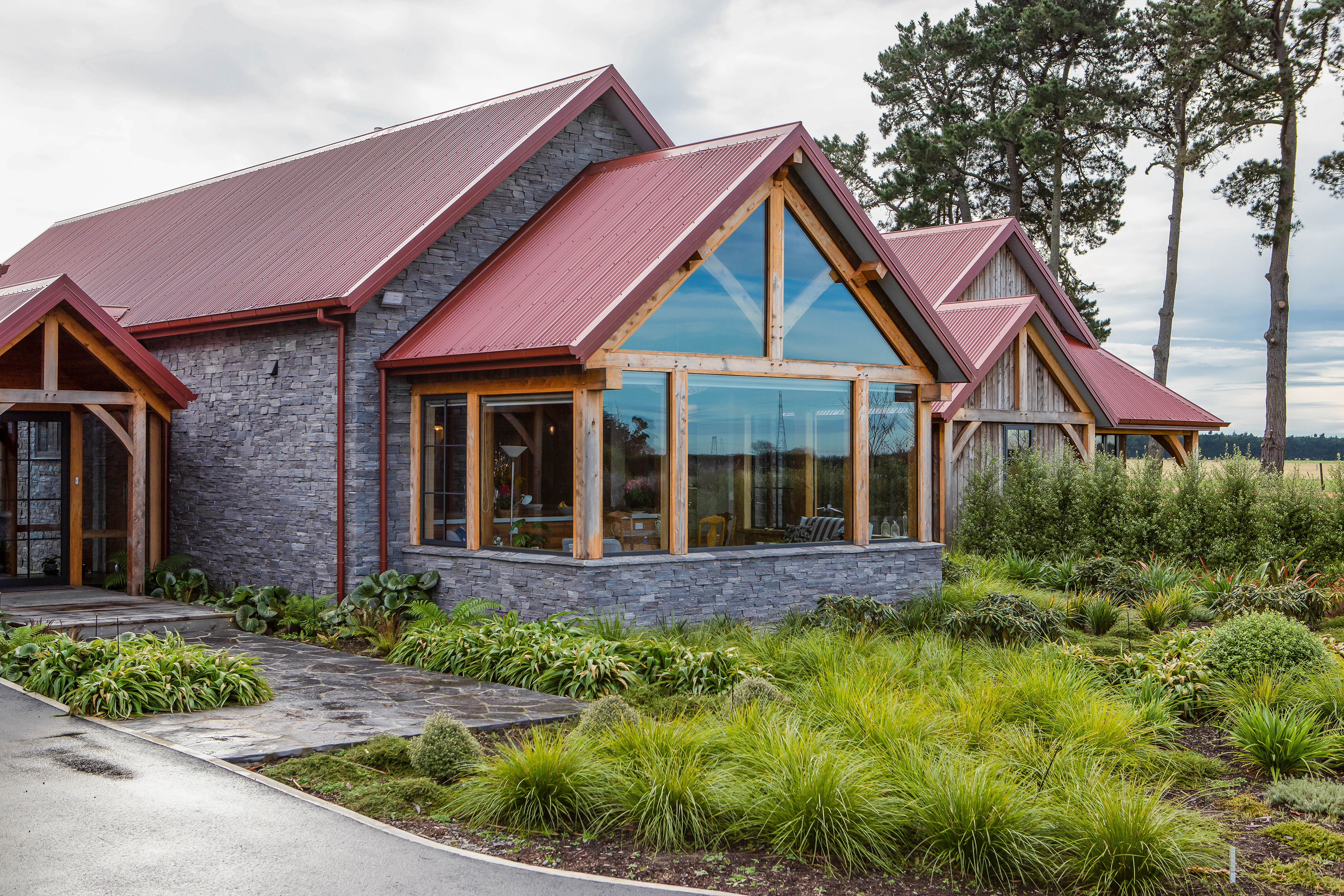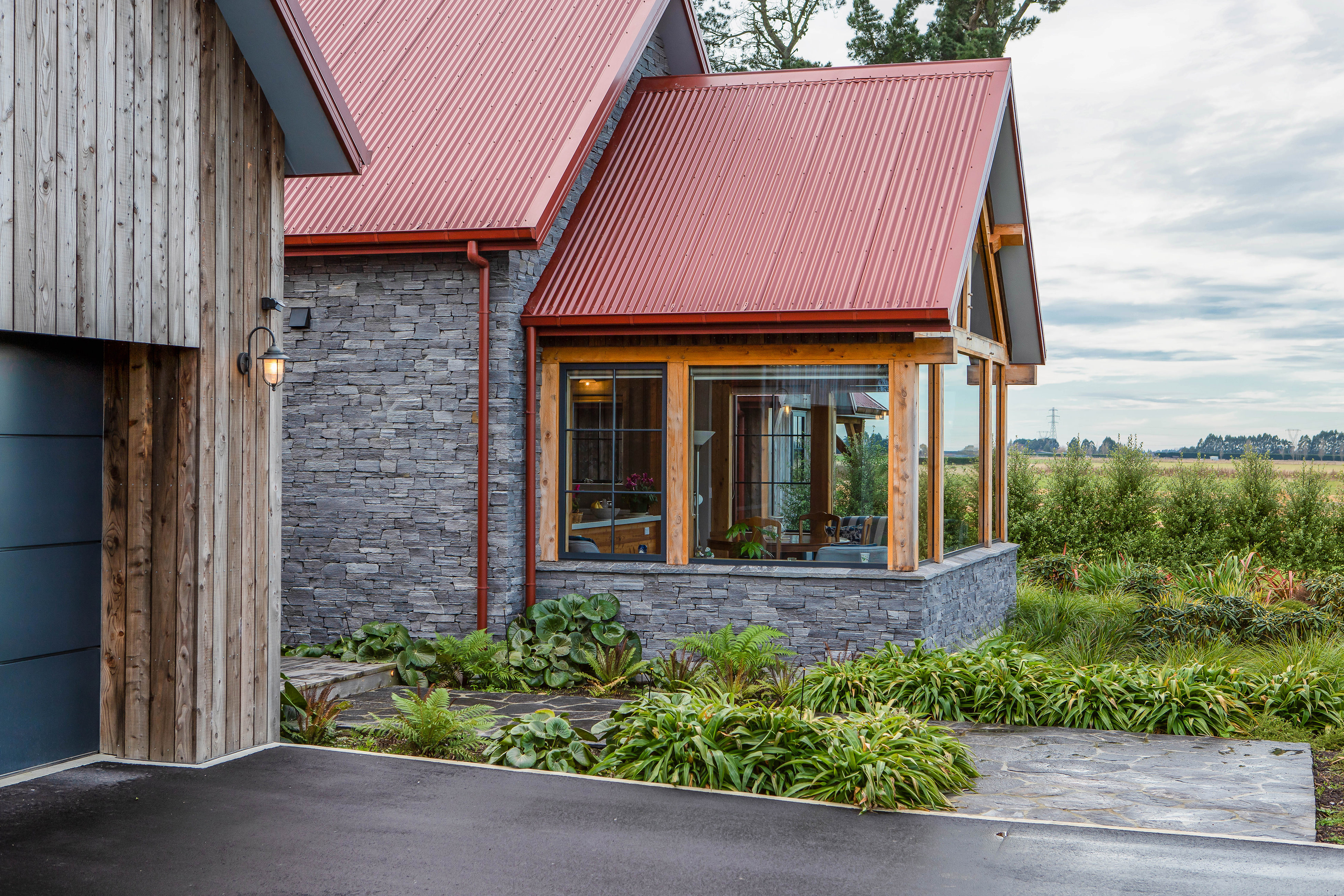 The living part of the home is clad in authentic Westland schist, whereas the barn-style garage and bedroom areas are in sawn reverse board-and-batten. Salt solution and Danish oils enhance the overall finish.