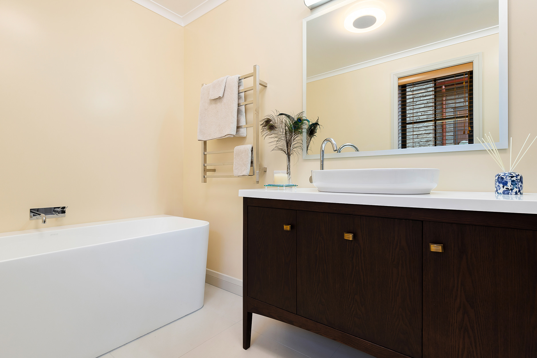 Barn style doors, concealed aluminium joinery, spray enamel and exacting tiling also elevate the abode.