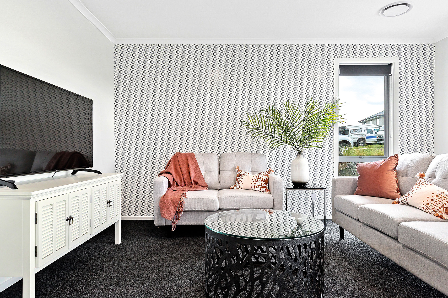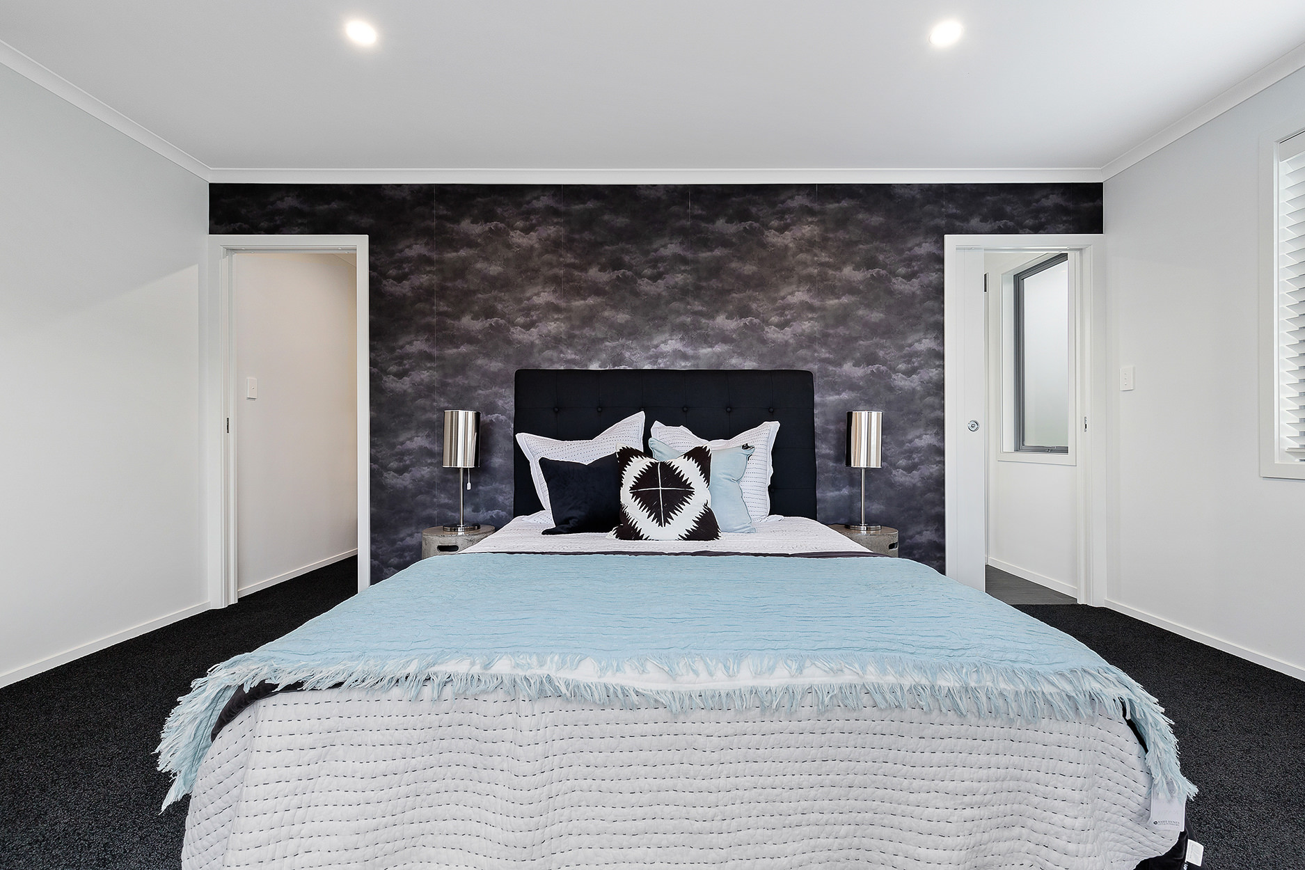 Fittings and finishes, including feature wallpaper, add character and a good dose of glamour throughout.