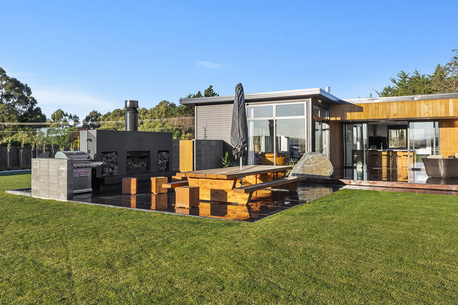 With a firepit, outdoor hearth and indoor gas fire, this modern Oamaru home is one hot property.