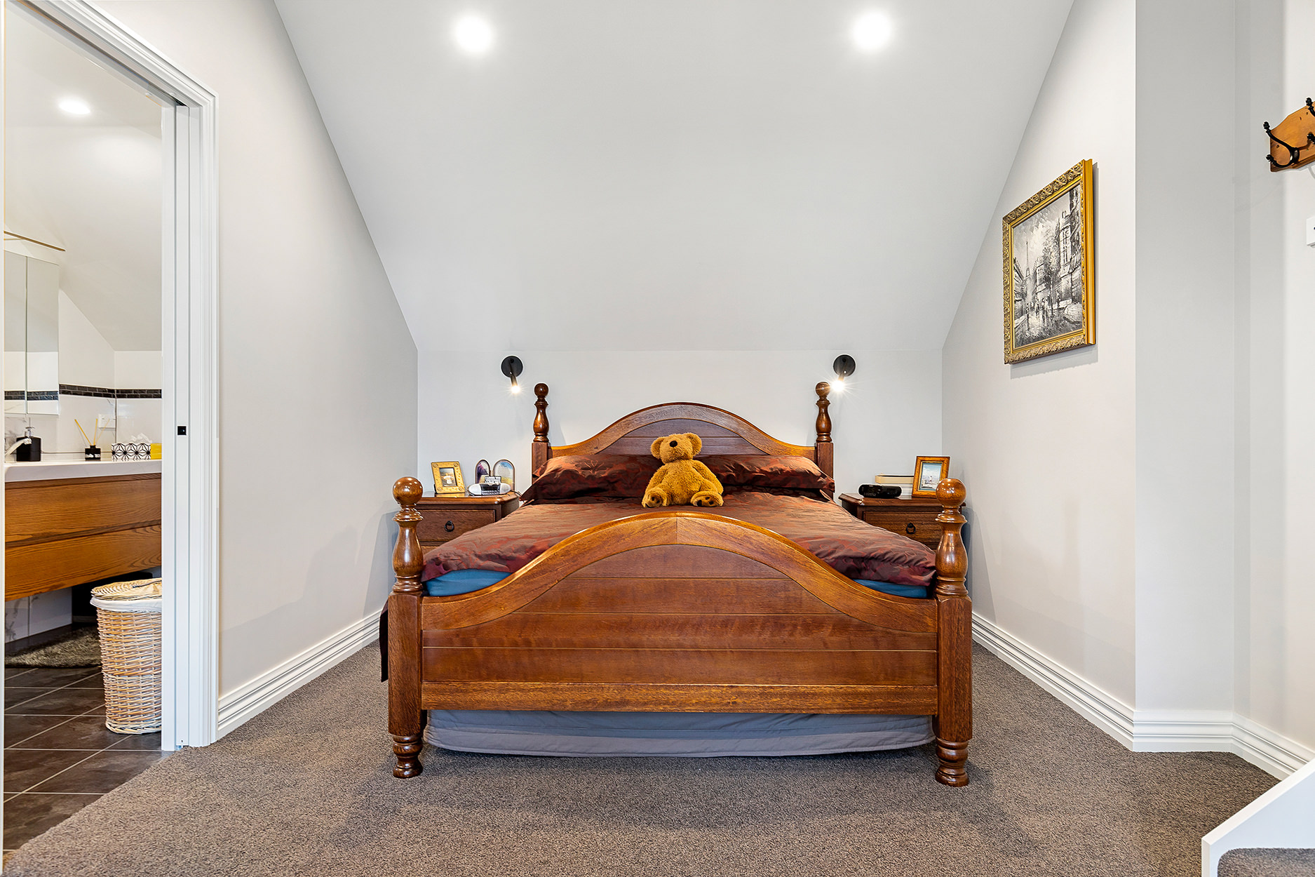 The master bedroom with its walk-in robe and ensuite is also on the upper level.