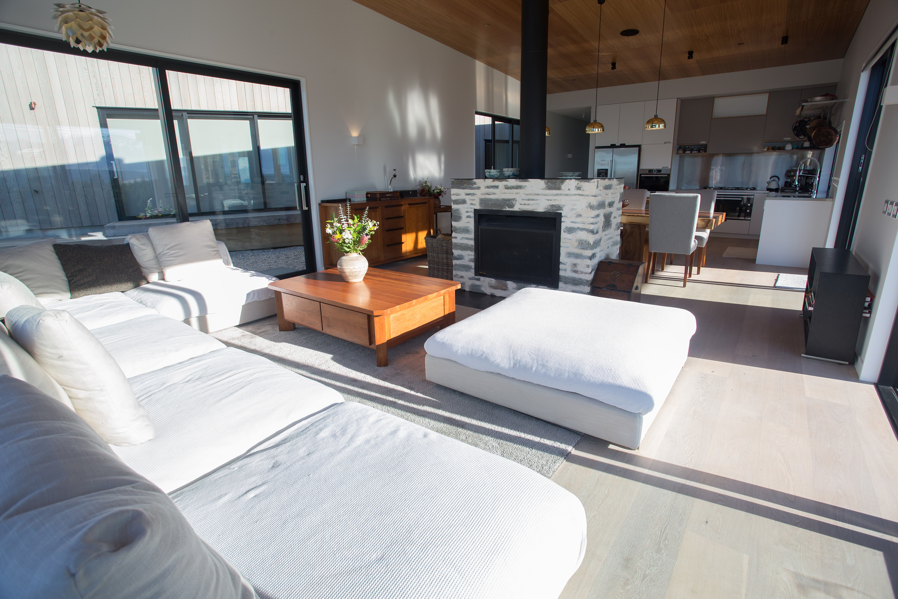 The elements in the high country may be harsh, but they’re no match for this home. During winter the central schist-clad fire and underfloor heating throughout will effortlessly conquer those sub-zero temperatures.
