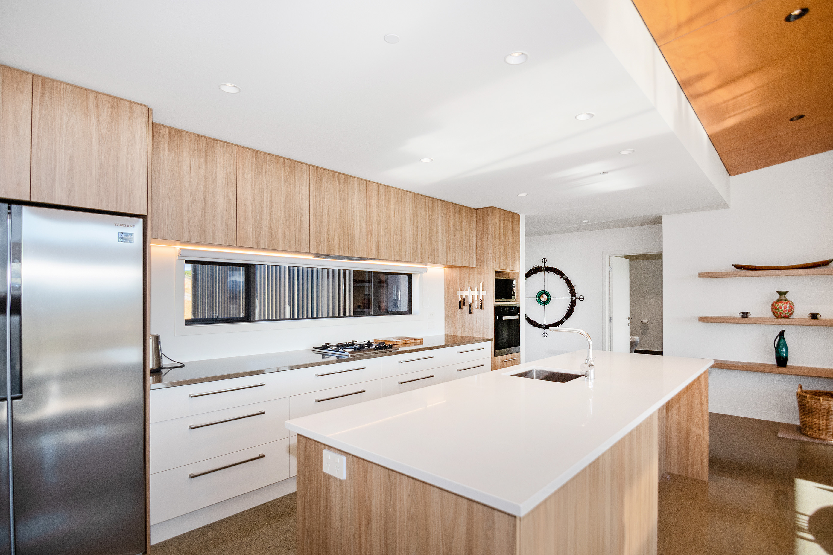 Attractive and eco-friendly, this home outside of Nelson is so in tune with its environment. The 204sqm plan has been designed and constructed to harness as much natural energy as possible. Sunlight floods in through huge panes of glass, warming the polished concrete floors, which spread throughout the house.