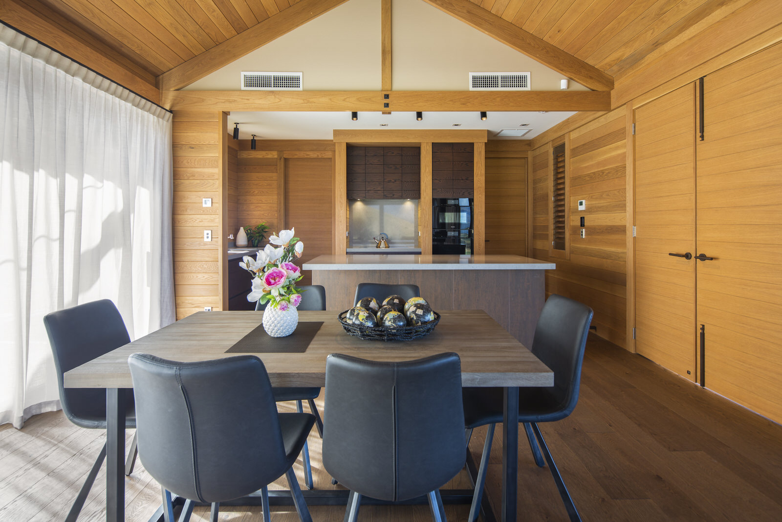 Stylish finishes create the perfect setting for relaxing and entertaining. Interior material choices echo the exterior aesthetic, tying inside and out together.