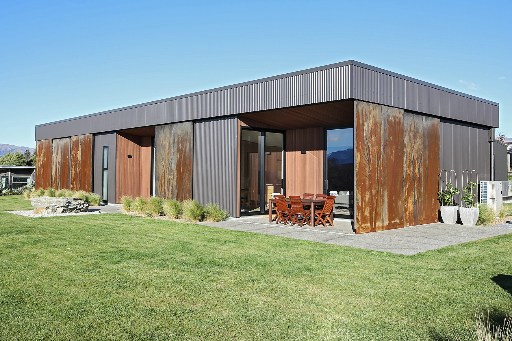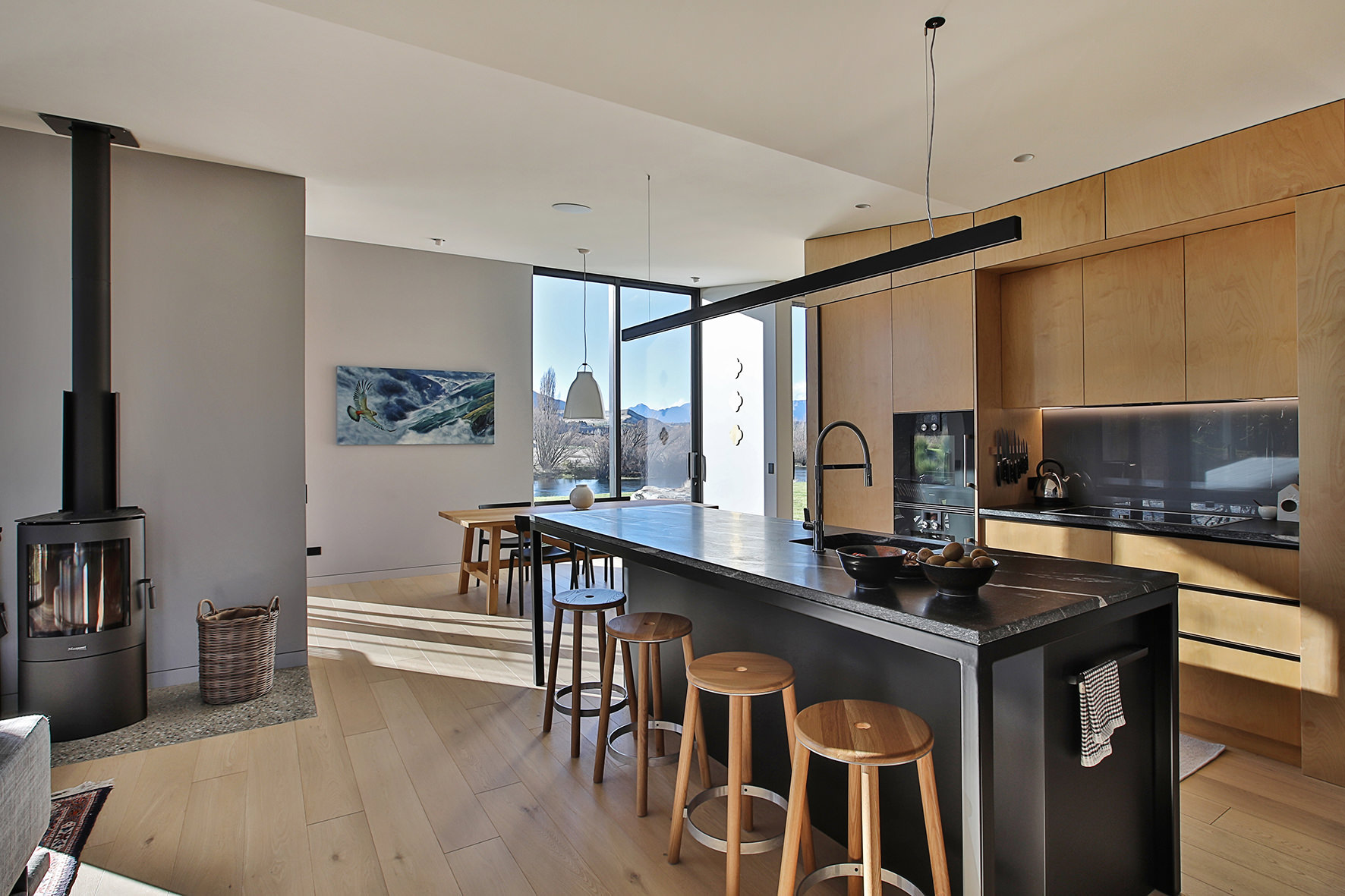This home, near Wanaka, is cleverly designed with well-considered spaces for contemporary living. It contains two bedrooms, two bathrooms, a separate laundry and a good-sized living area. An art studio/office makes creative use of the compact 180sqm footprint.
