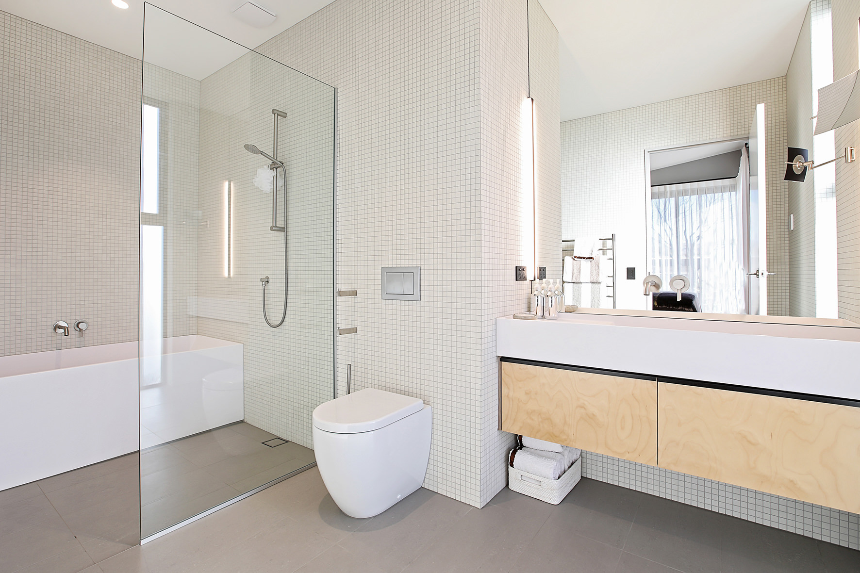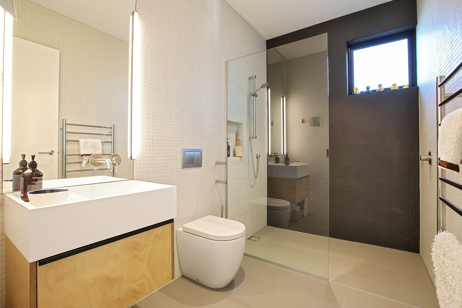 Both bathrooms are fully tiled and equipped with high-quality fixtures. Custom cabinetry makes the most of space throughout this modern gem. The foldaway bed is a standout feature in the flexi-use spare room.