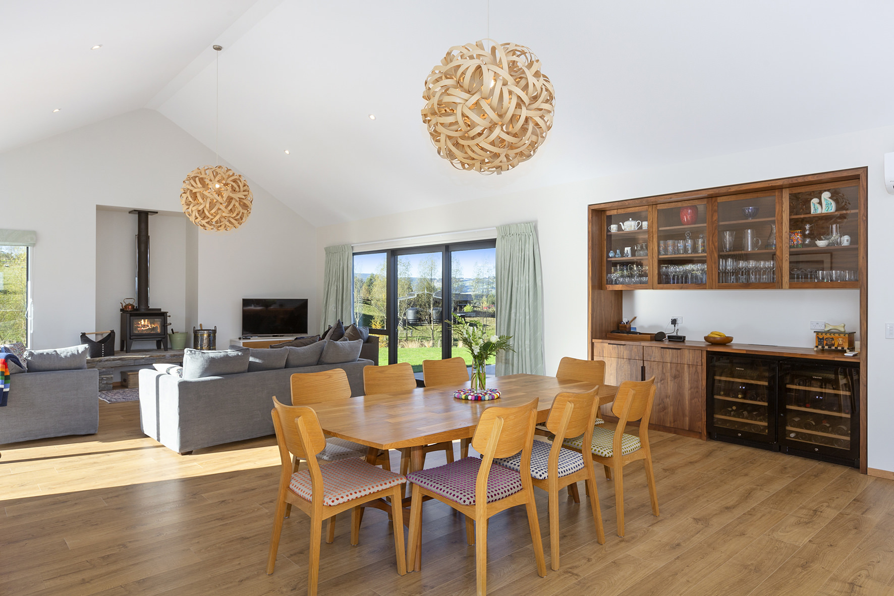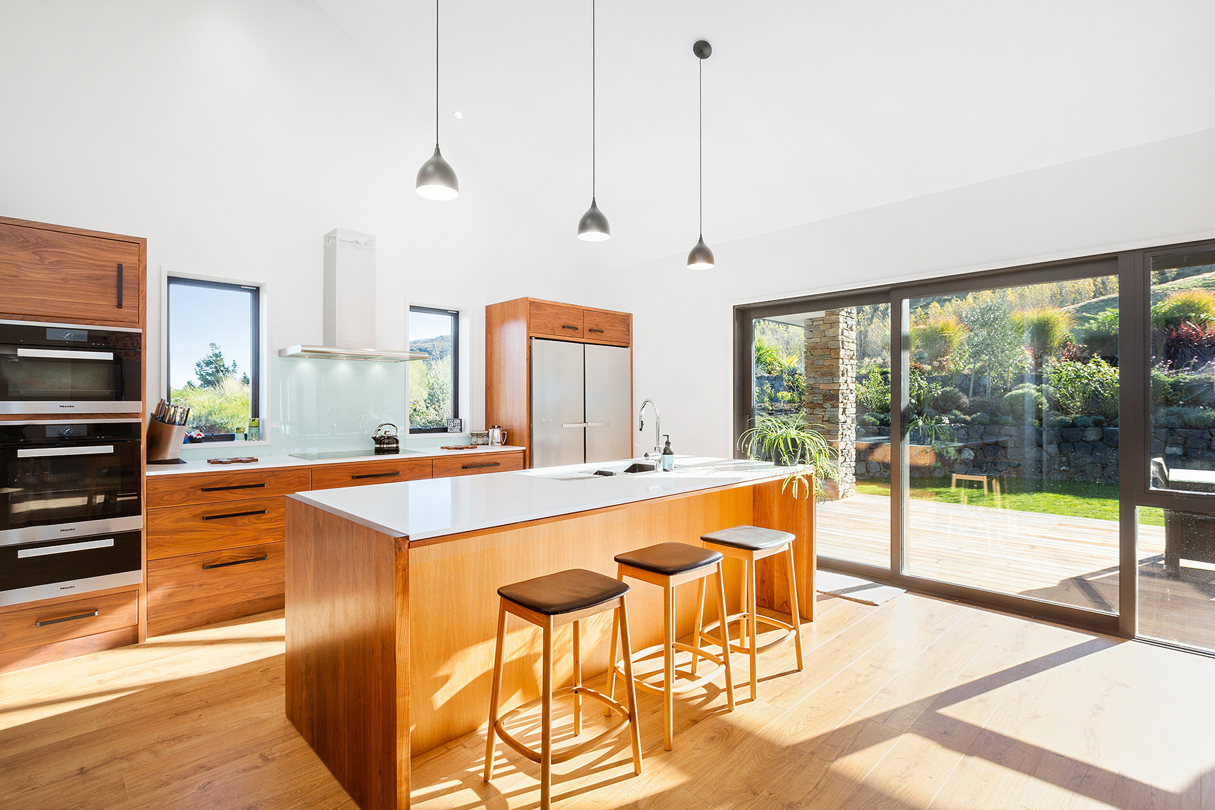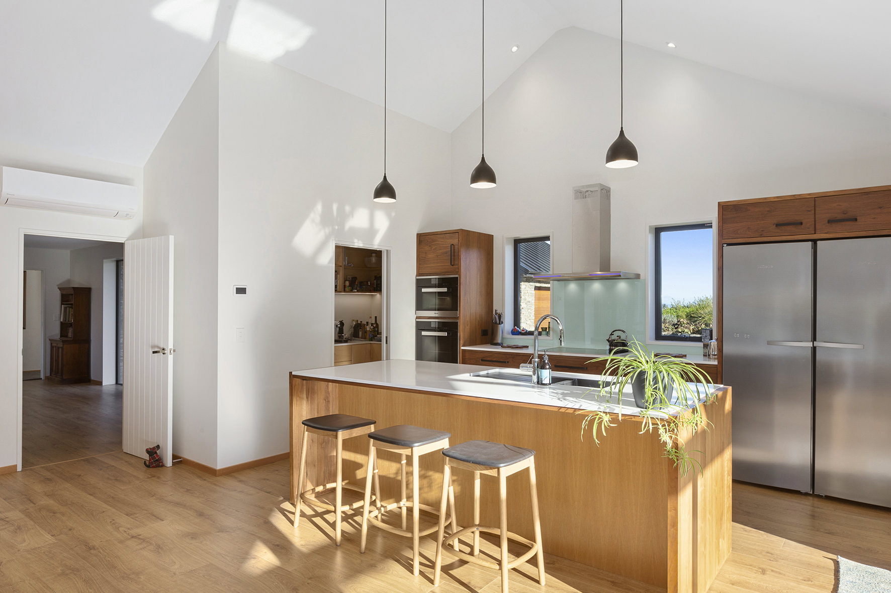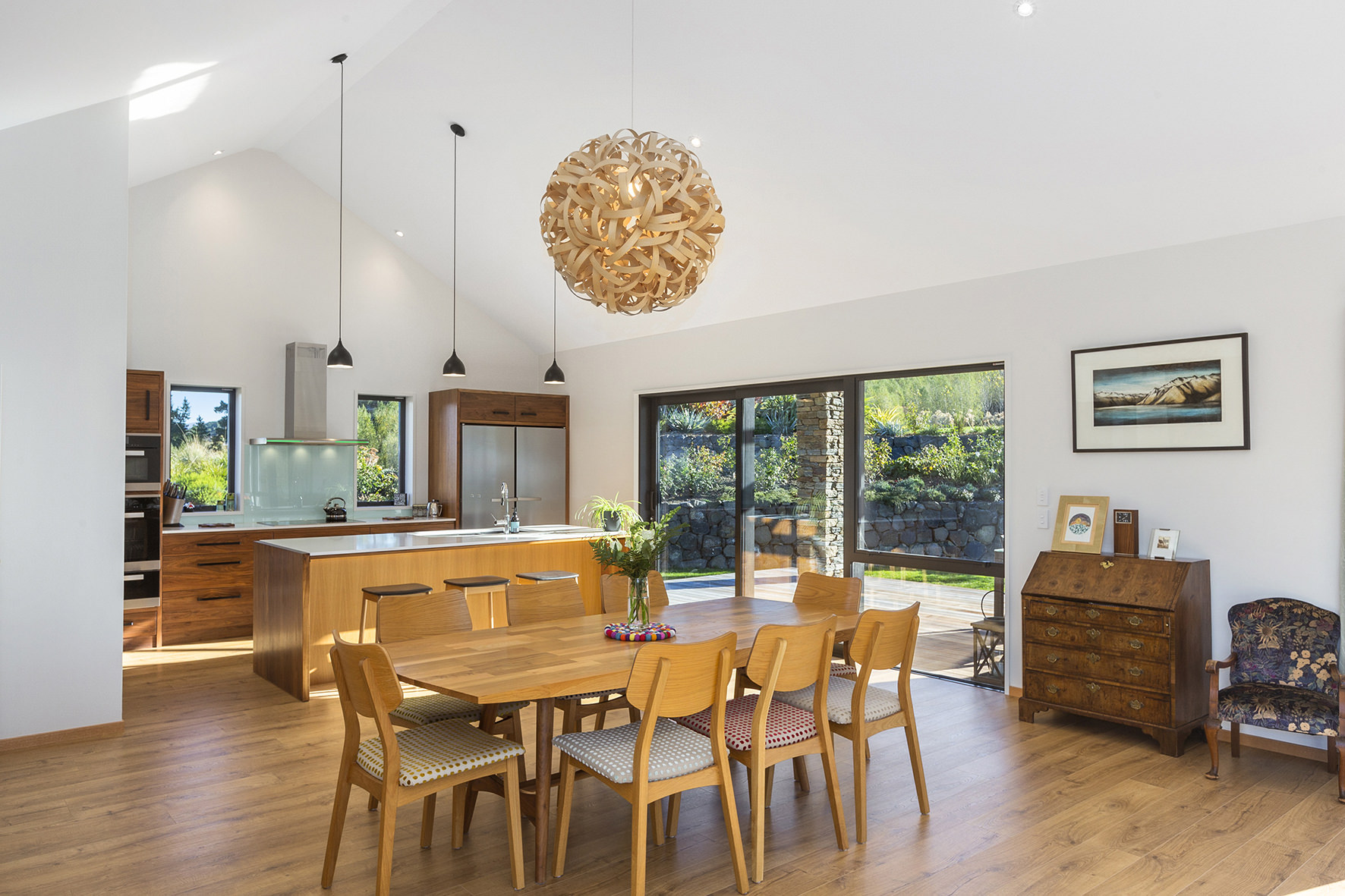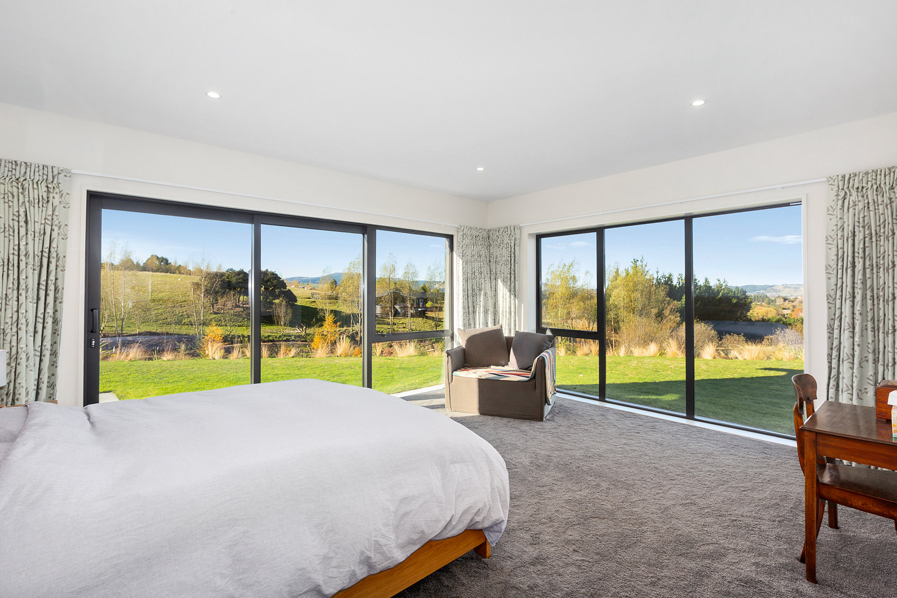 The cleverly offset design allows views of Saddle Hill from every room. Large windows and sliding doors embrace solar gain in all directions.