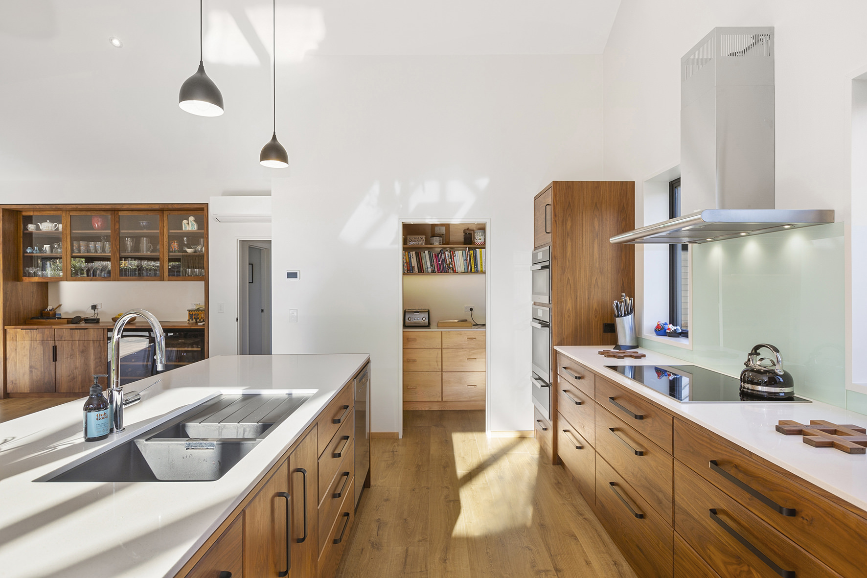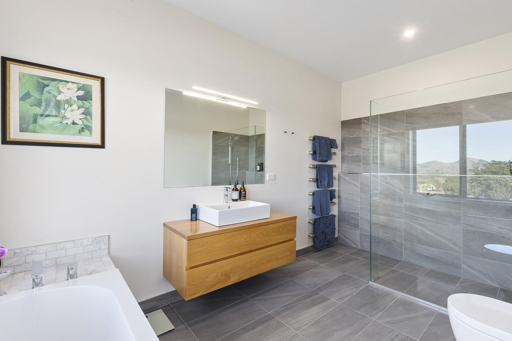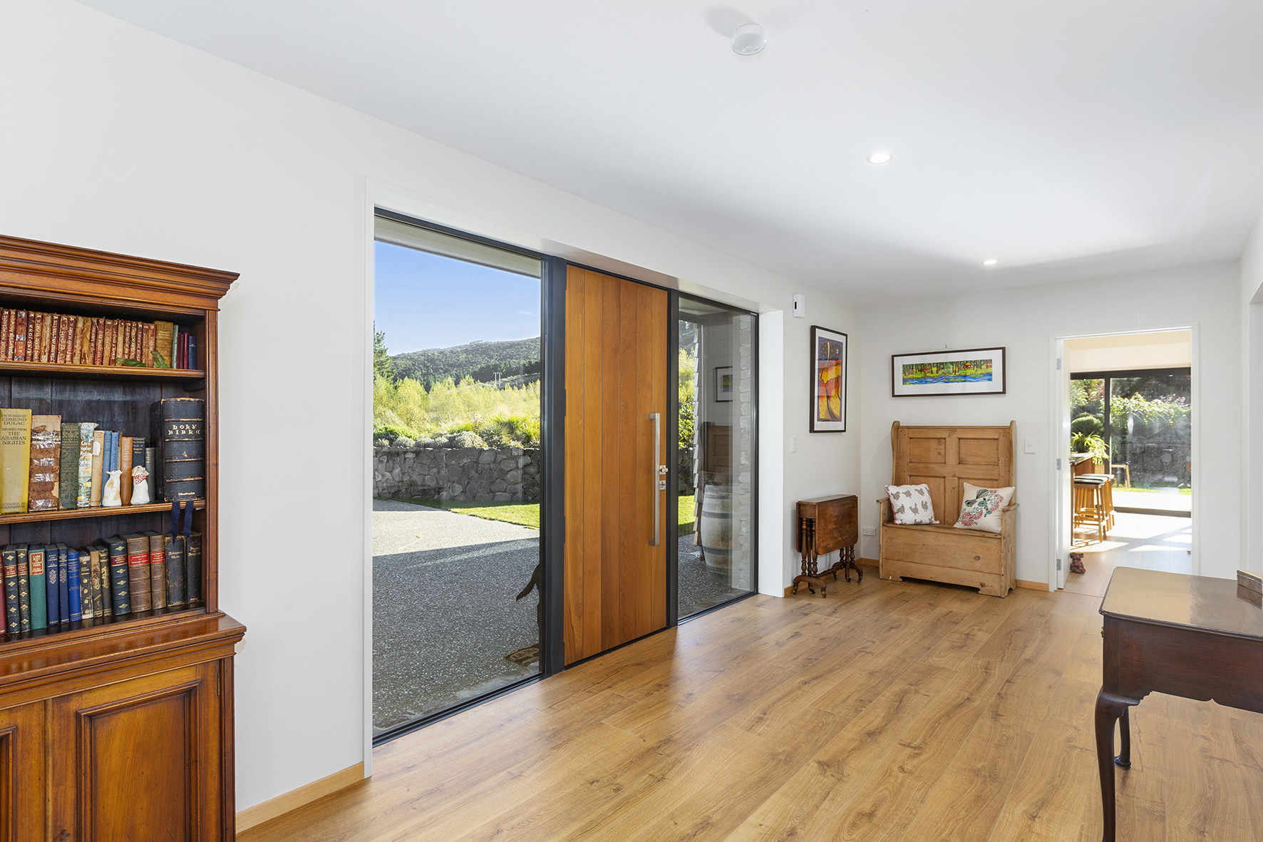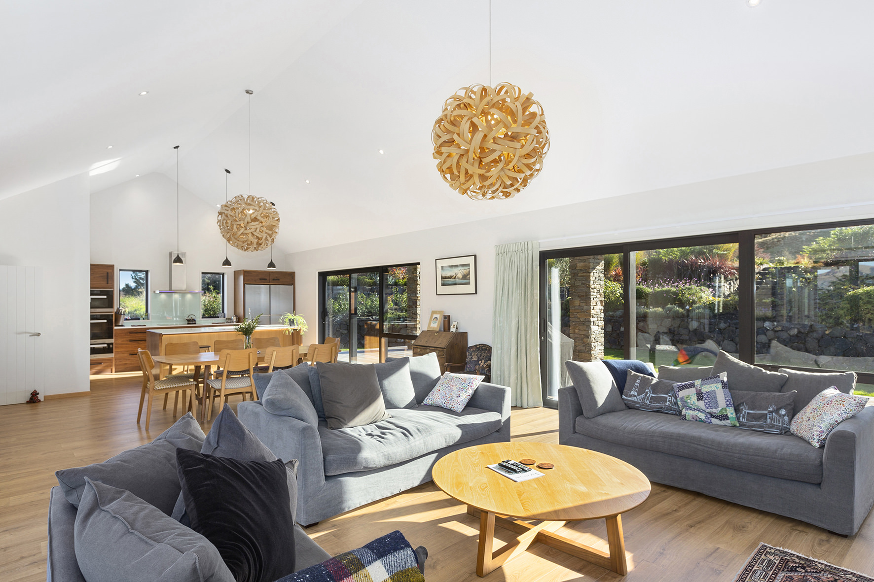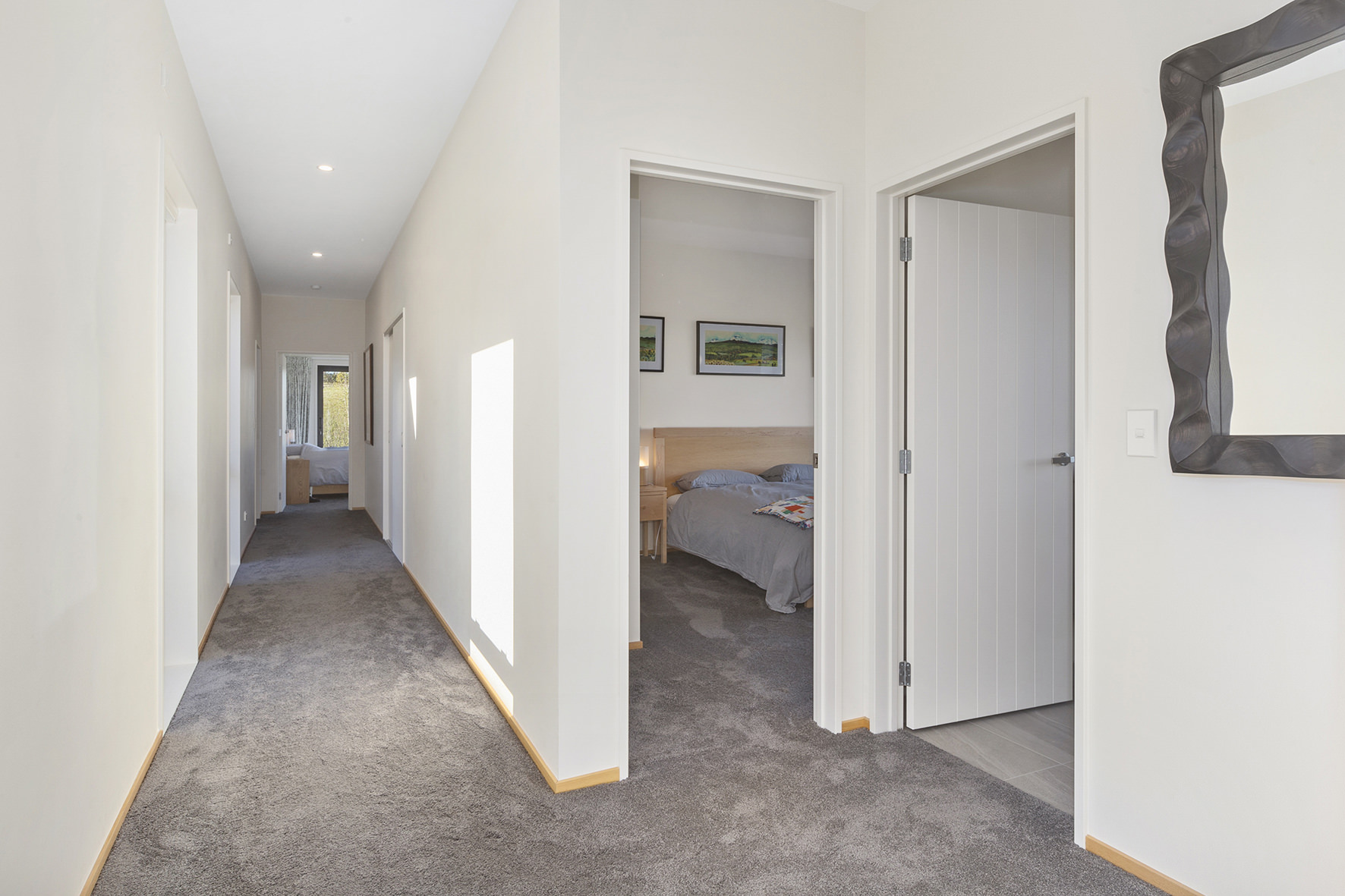 The cleverly offset design allows views of Saddle Hill from every room. Large windows and sliding doors embrace solar gain in all directions.
