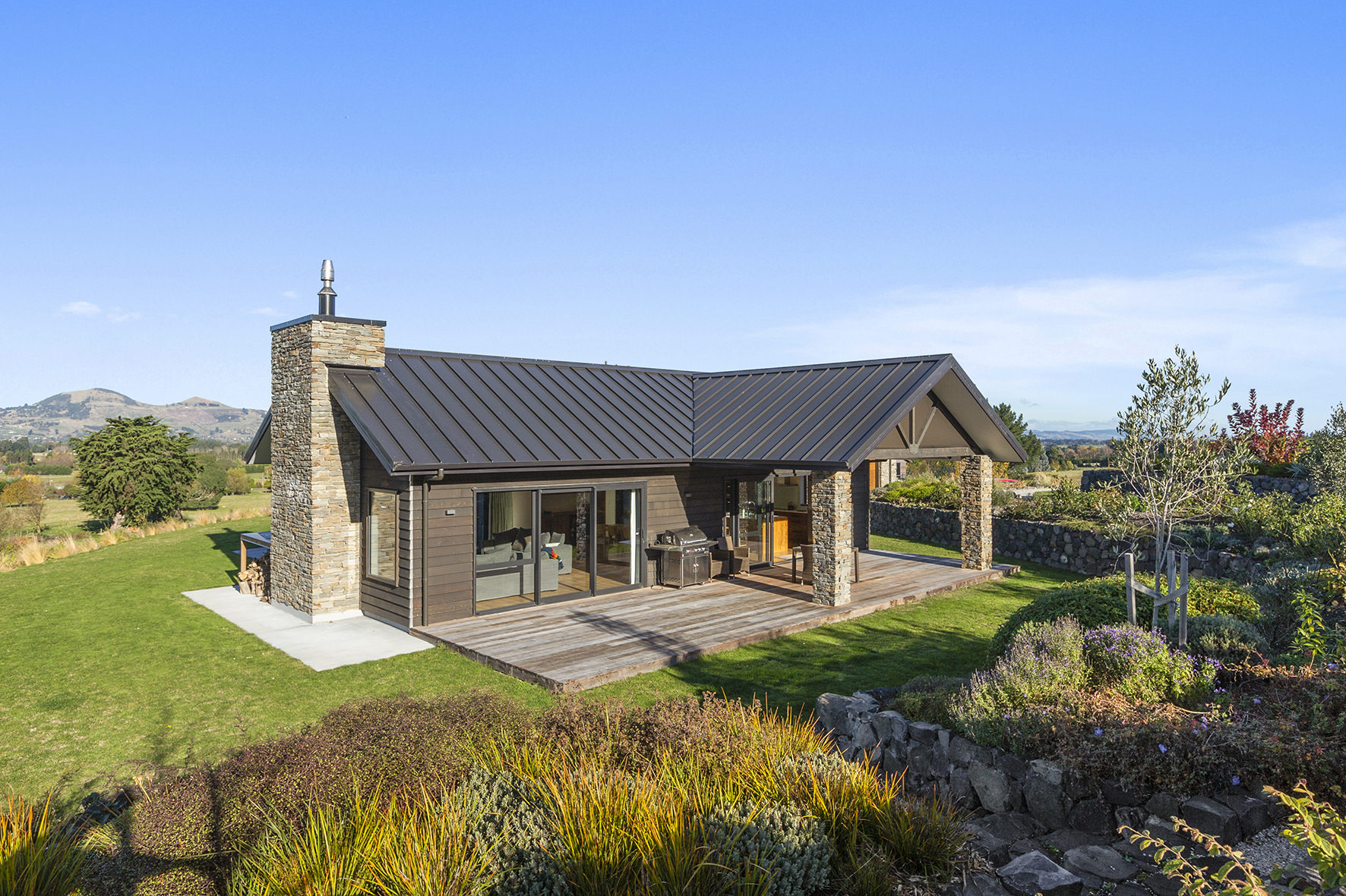 The hills near the Dunedin satellite town of Mosgiel are alive with the sound of contented homeowners. Nestled into the North Tairei slopes, this picture-perfect three-bedroom pavilion-style home is in tune with its stunning setting.