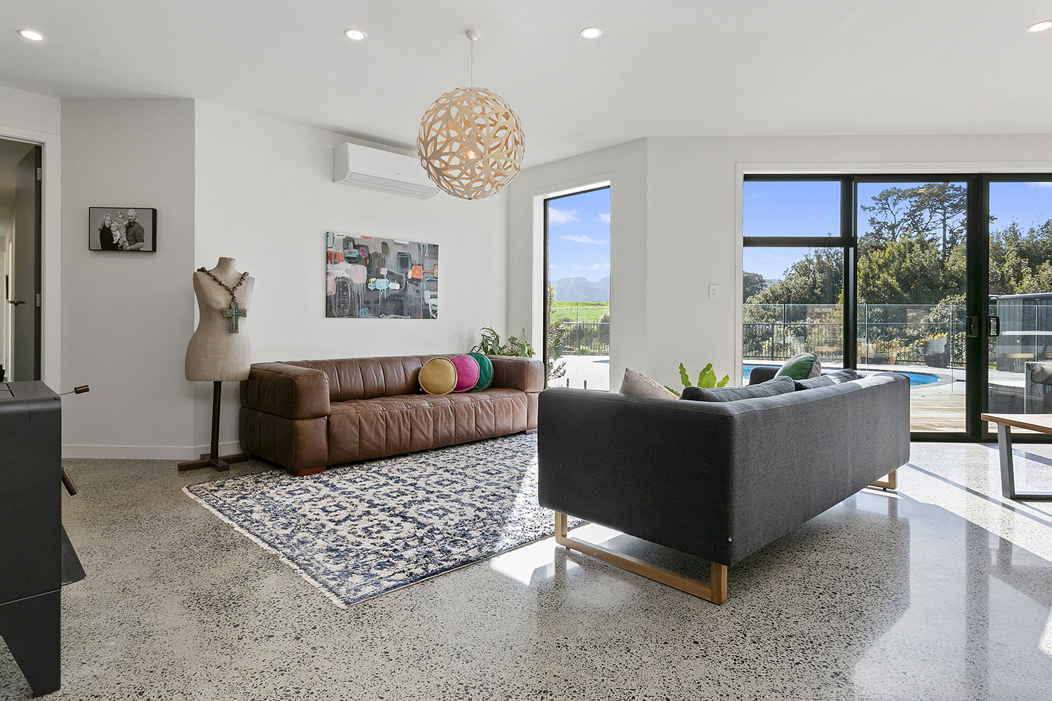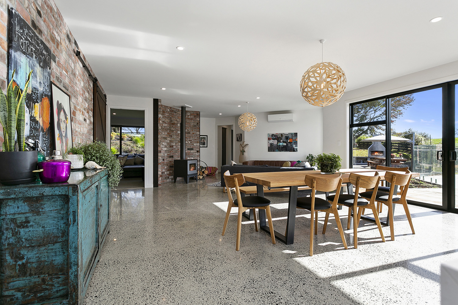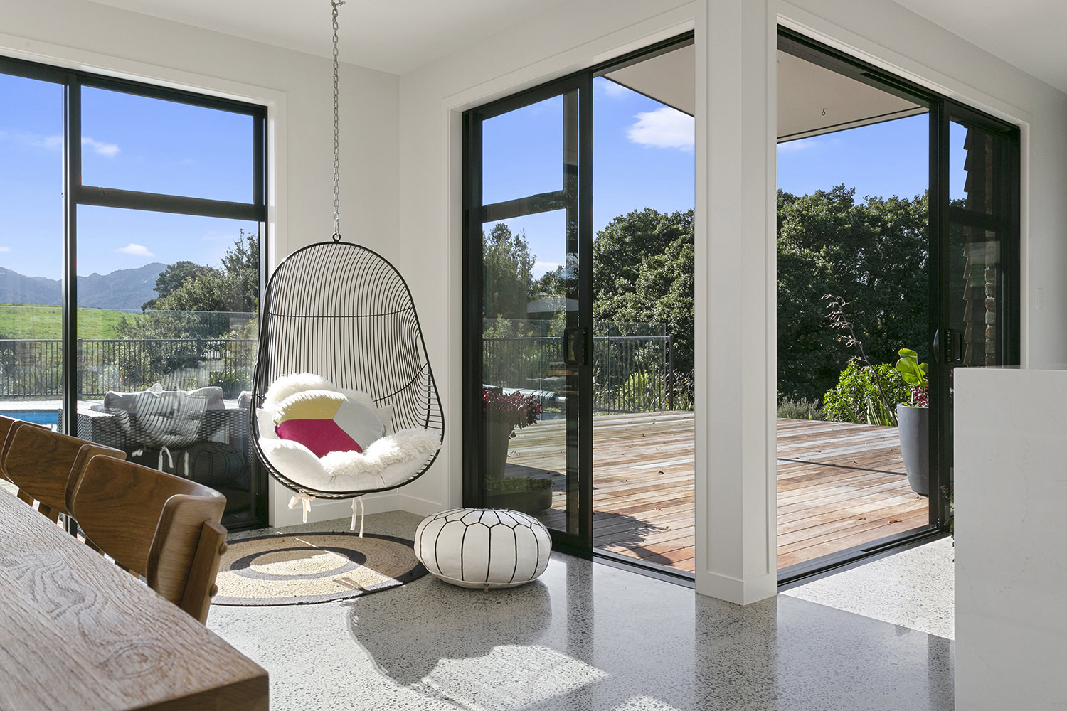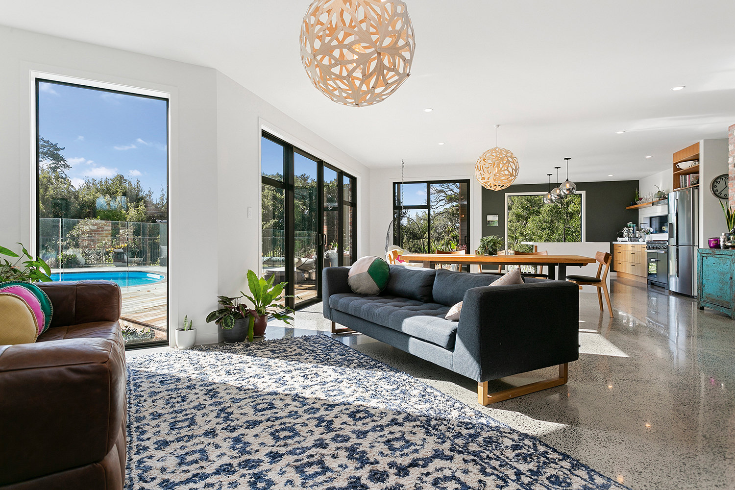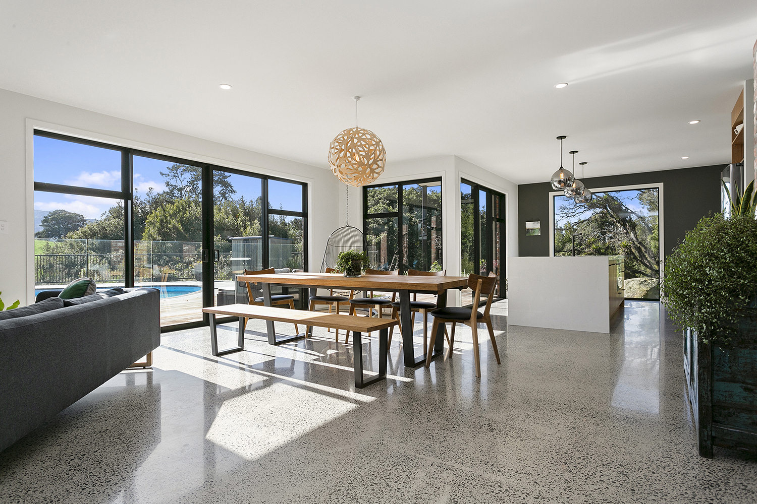 Sleek concrete floors meet with generous outdoor entertaining spaces.