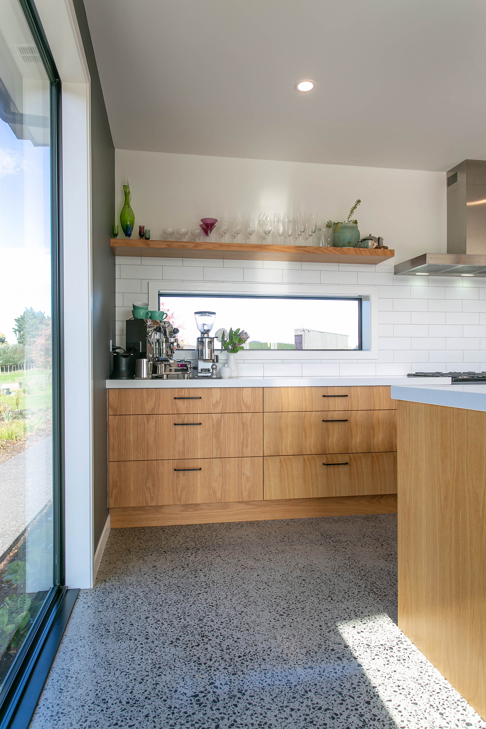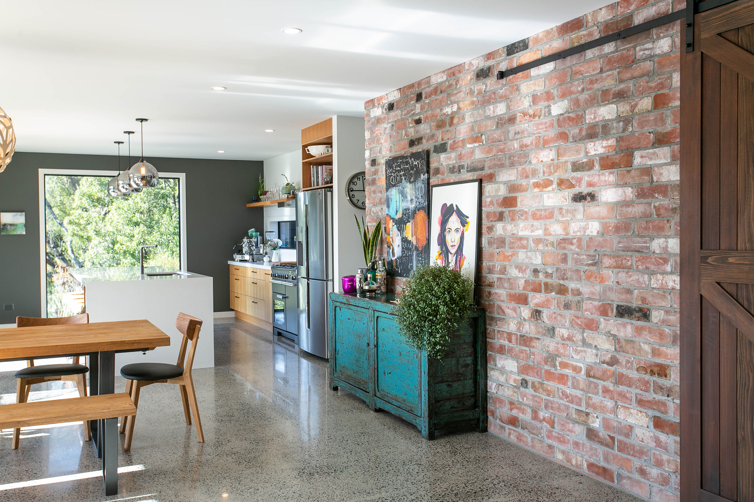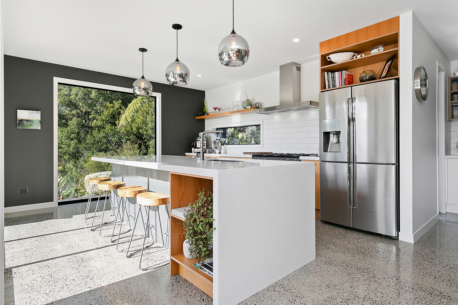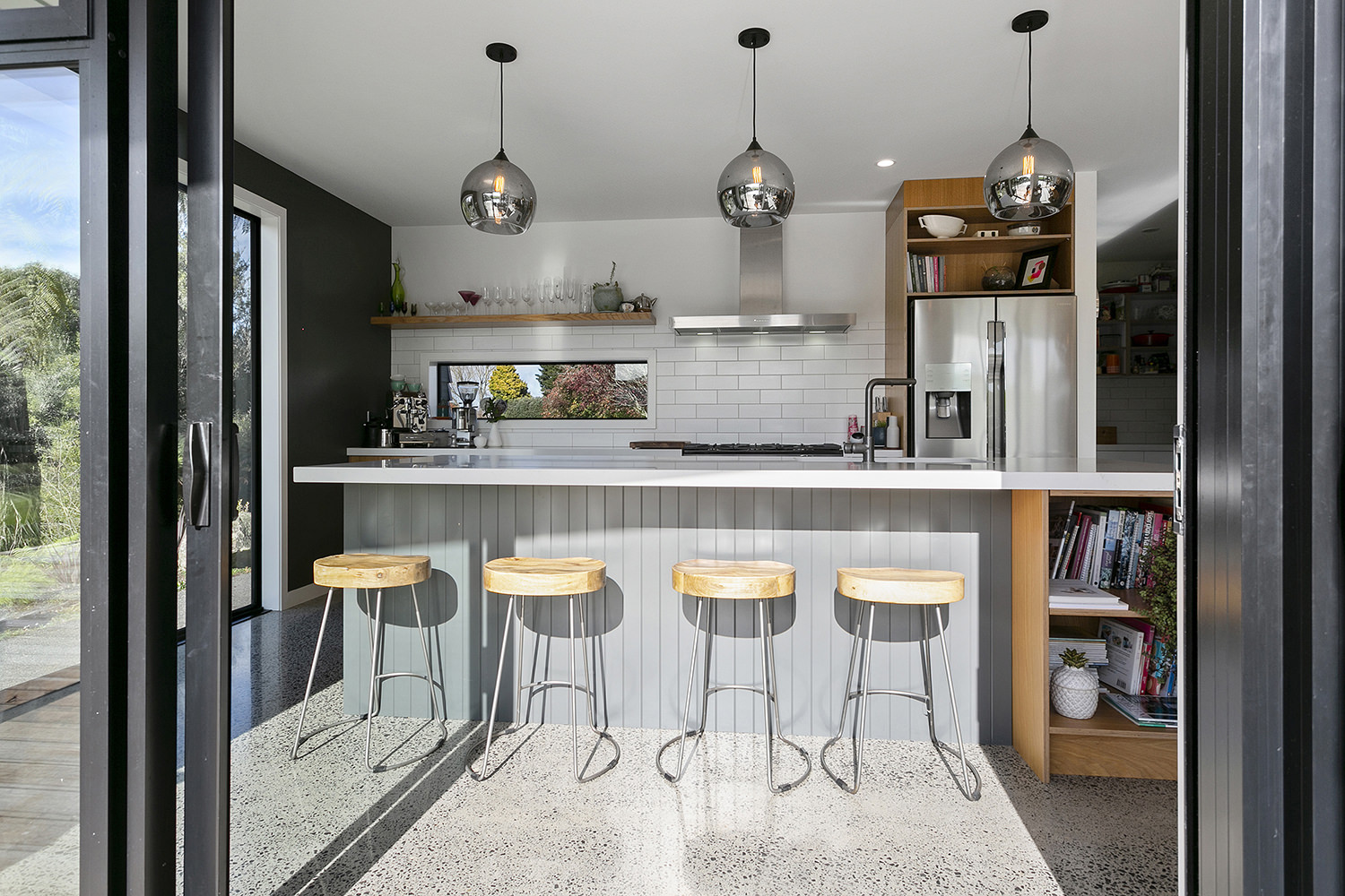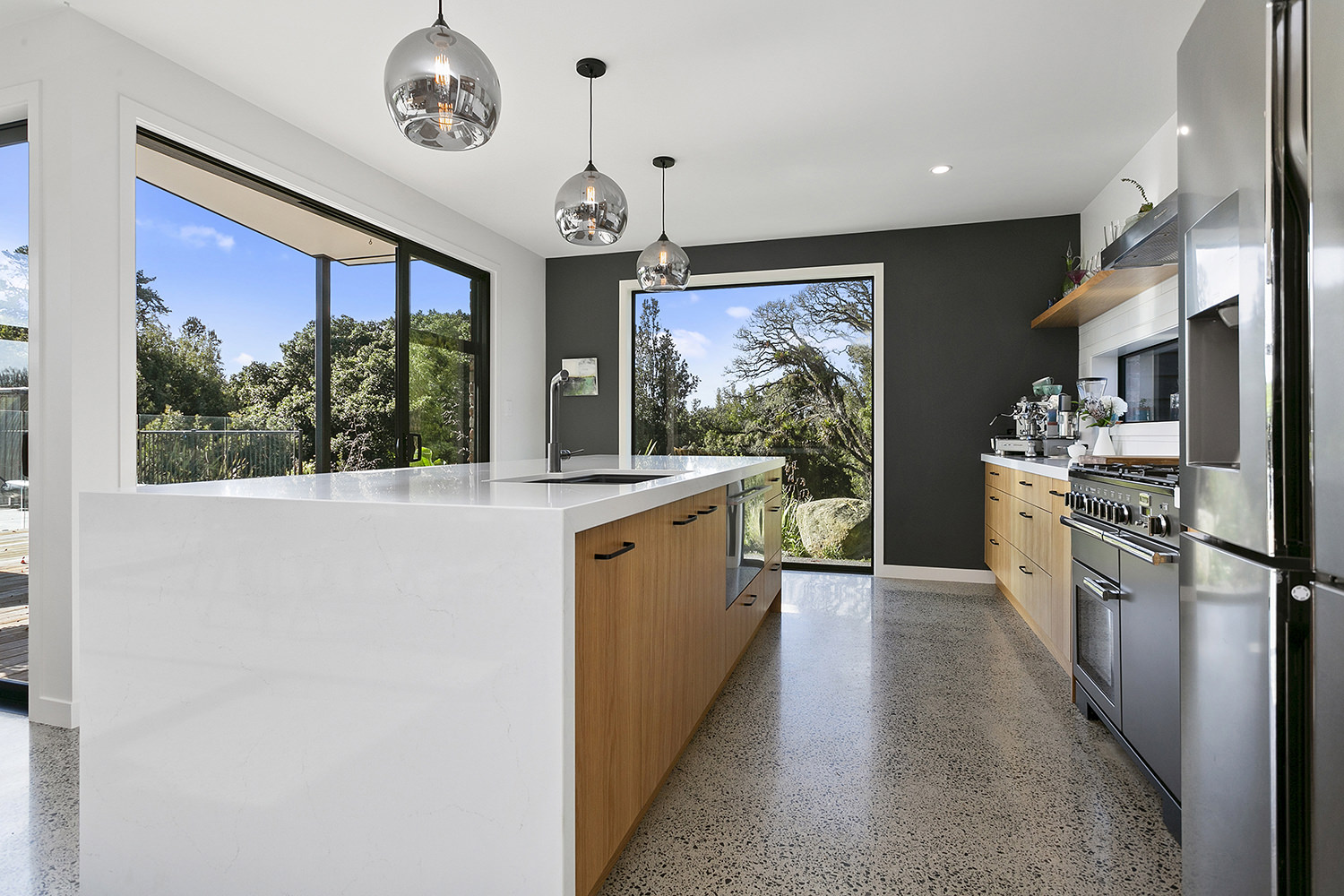 Sleek concrete floors meet with generous outdoor entertaining spaces.