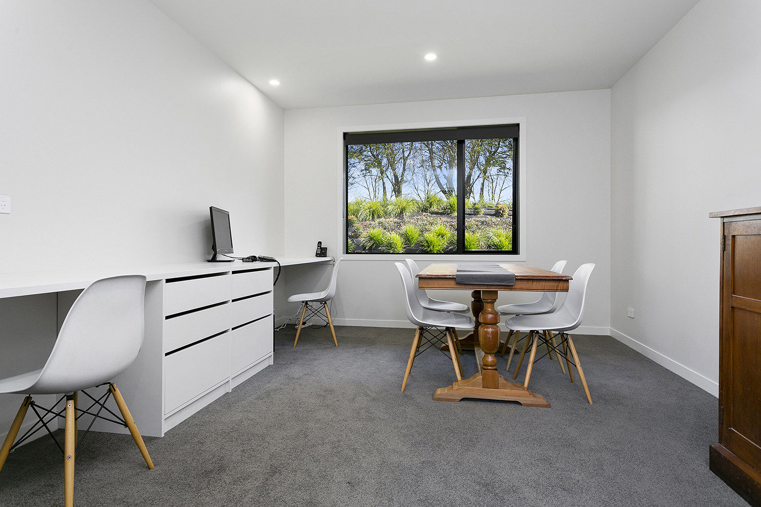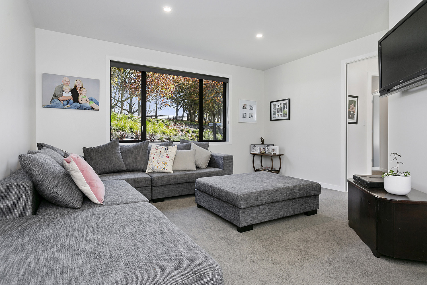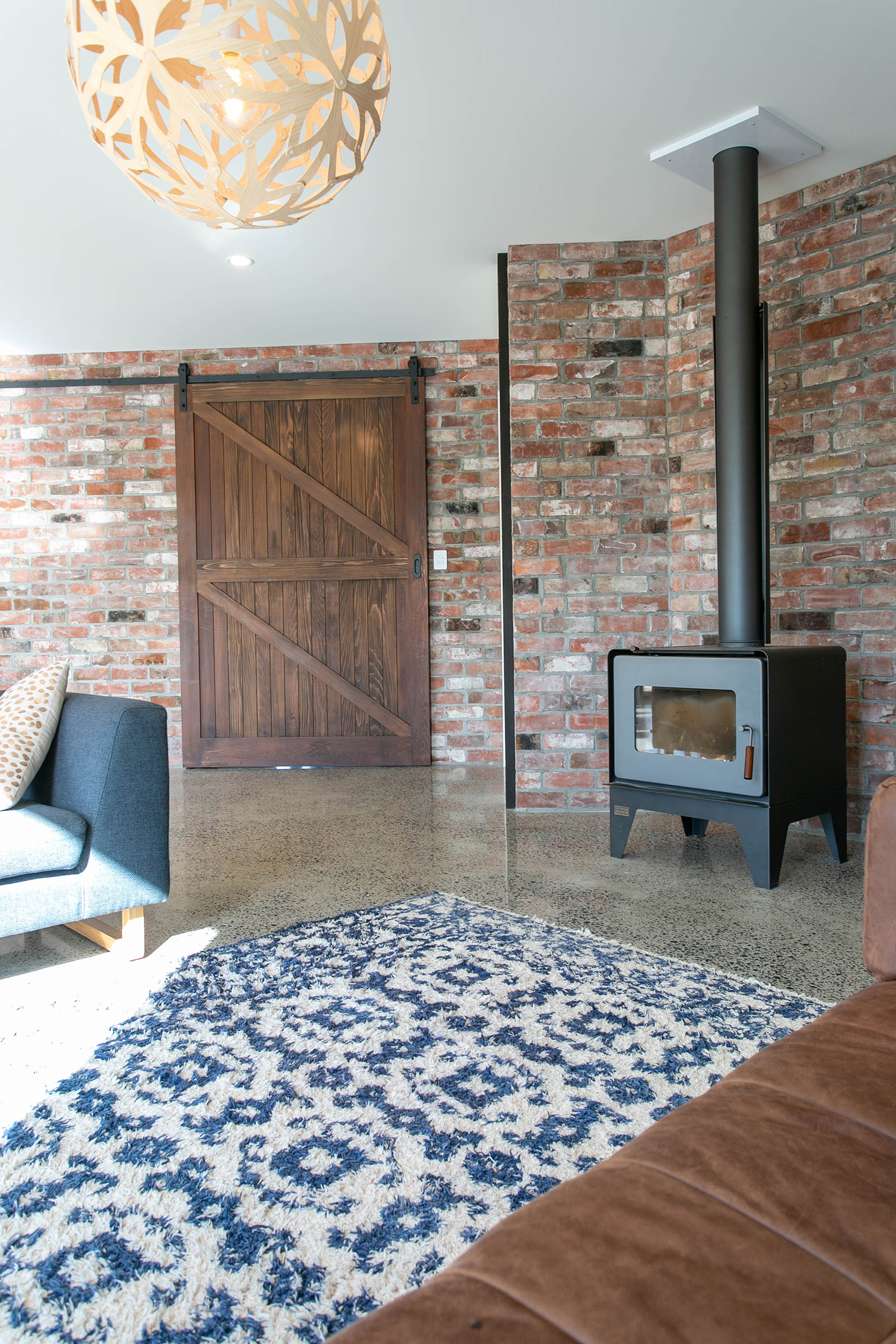 An attractive palette of slate grey, crisp white and golden timber ties the interior spaces together.