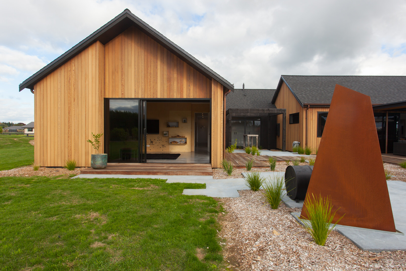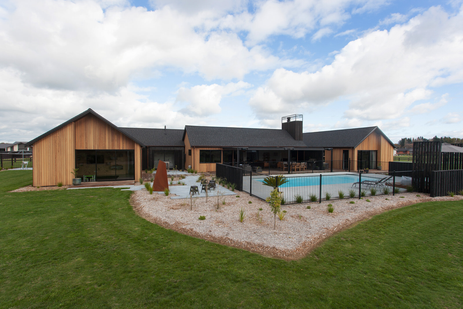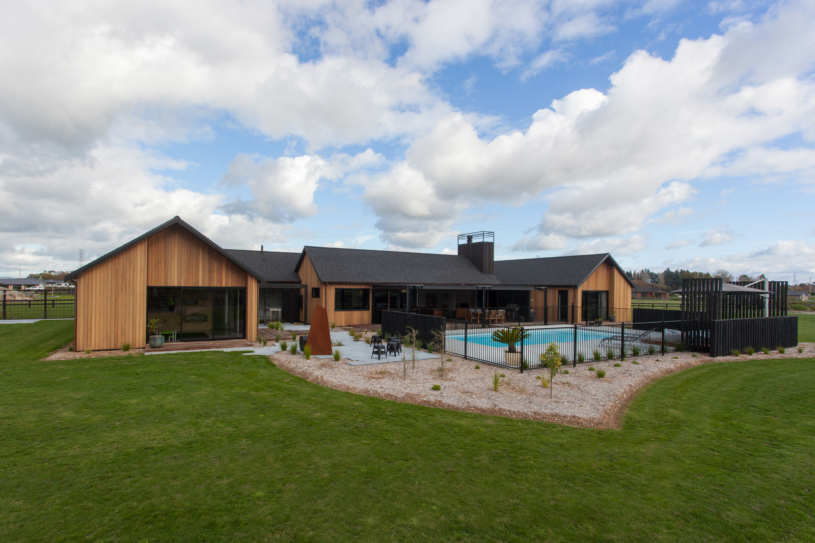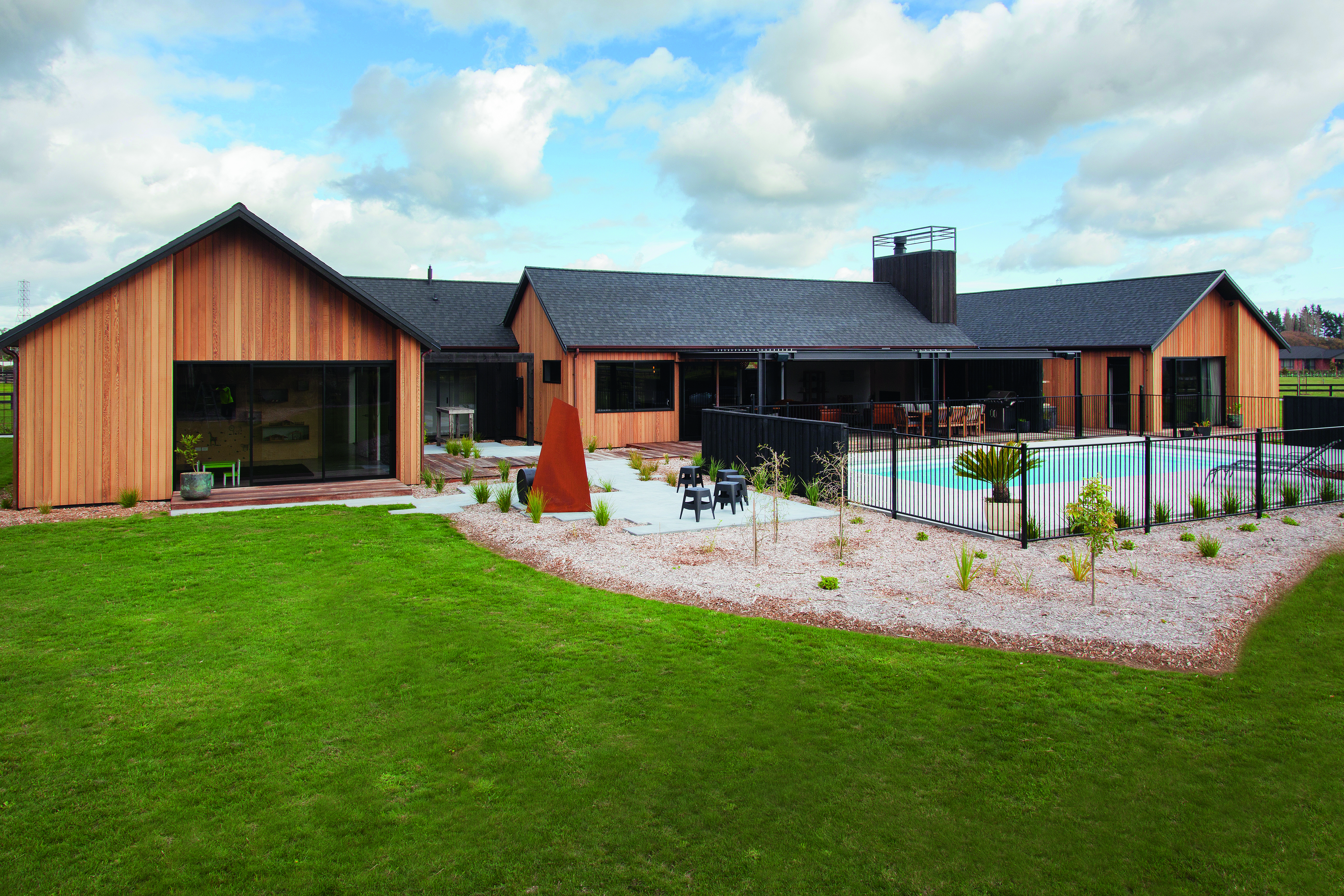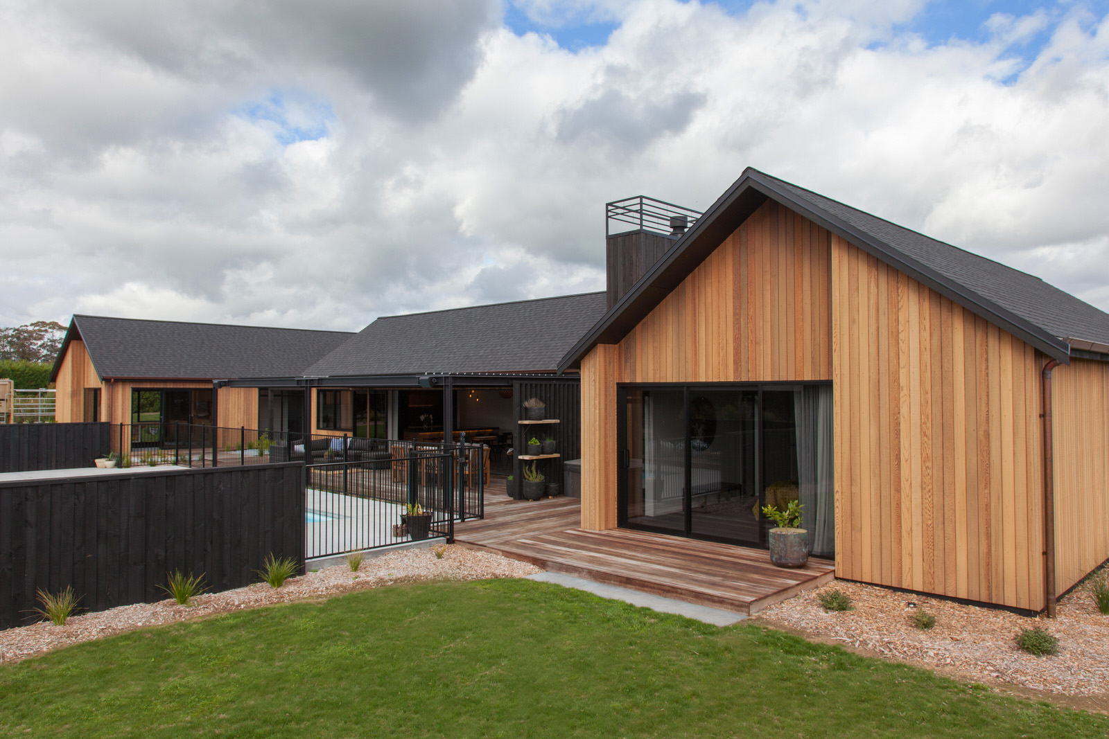 Designed for a growing modern family, this five-bedroom home on the rural edge of Hamilton has heart with a capital H. The H-shaped layout features one wing for kids and guests and another for the master bedroom and office/nursery. Central open-plan living bridges the two, providing a natural meeting point for everyday life.