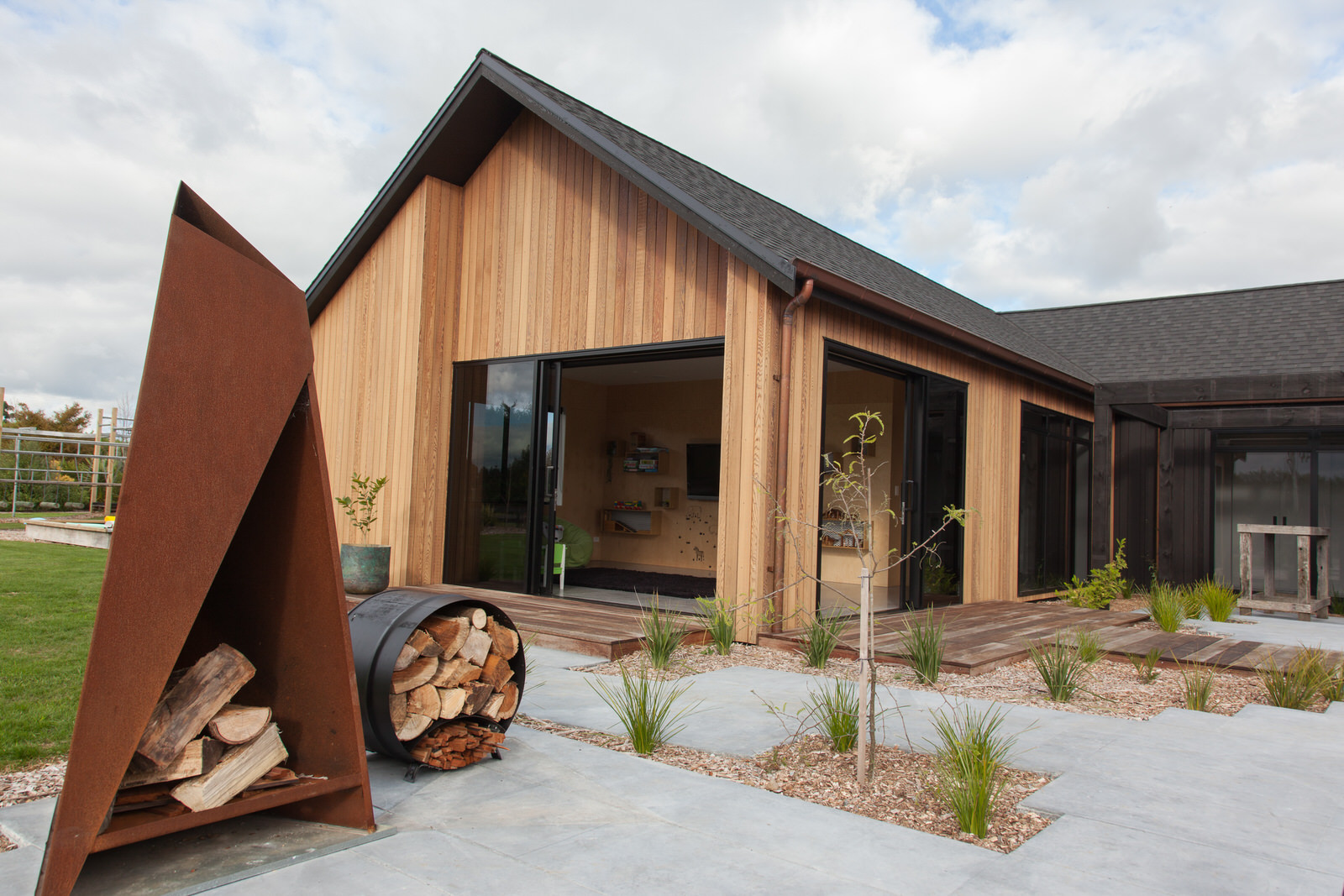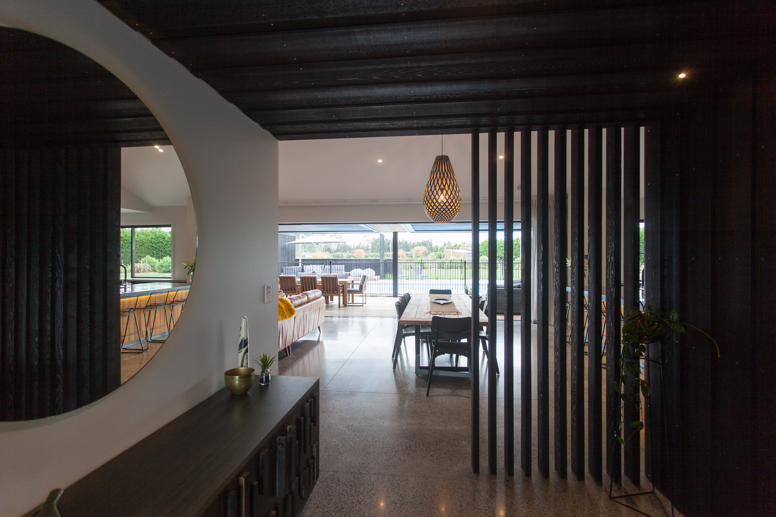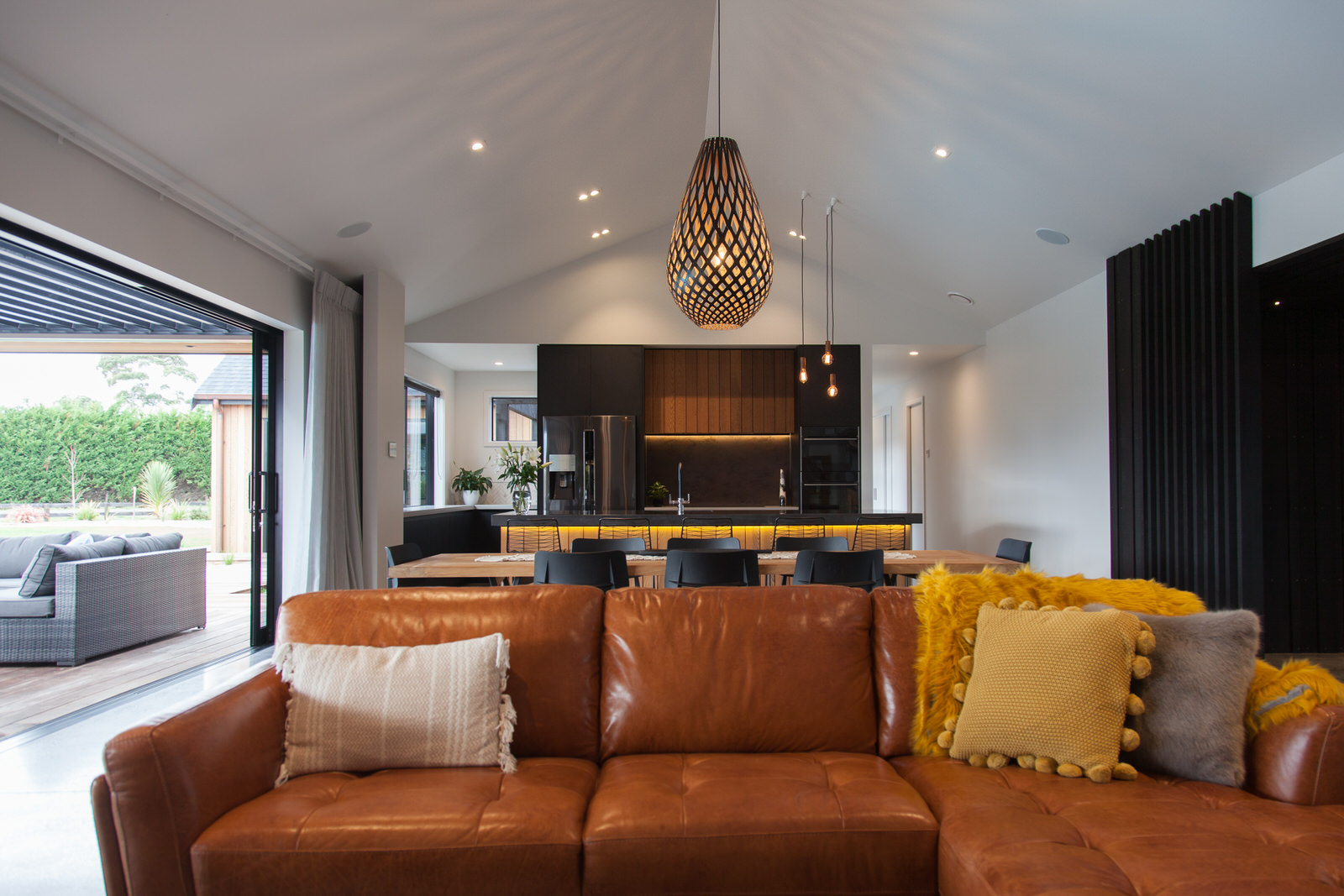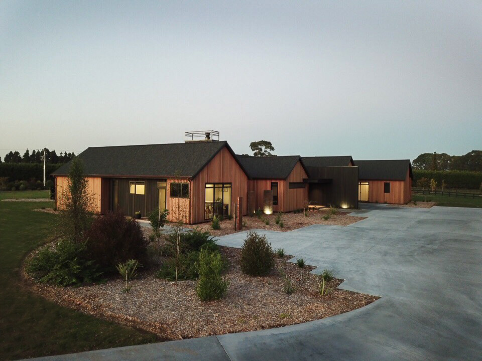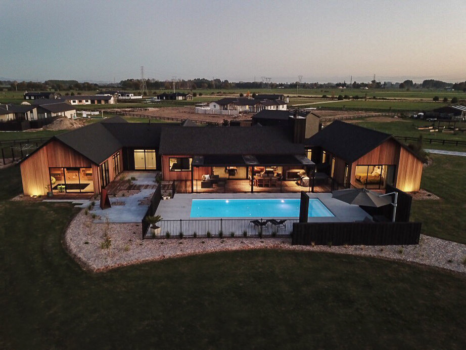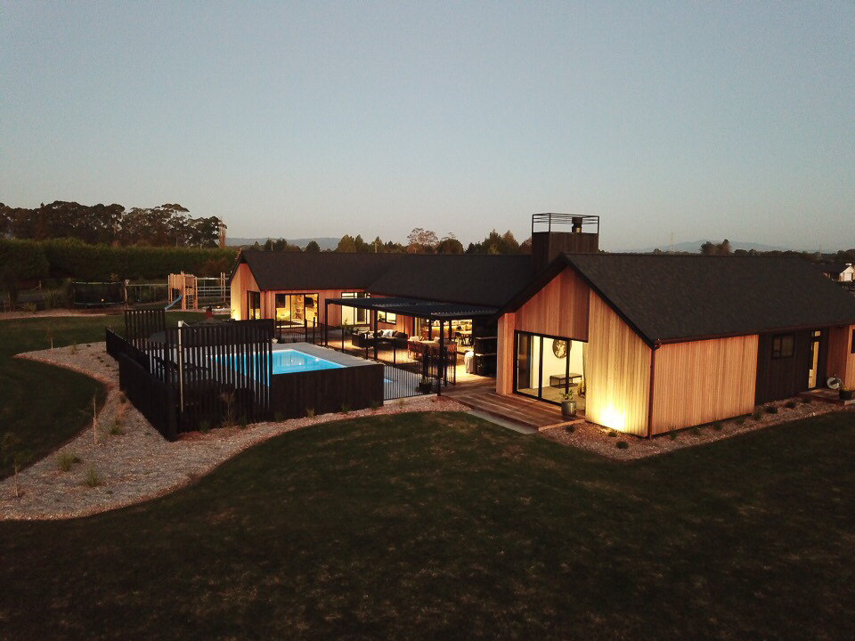 Designed for a growing modern family, this five-bedroom home on the rural edge of Hamilton has heart with a capital H. The H-shaped layout features one wing for kids and guests and another for the master bedroom and office/nursery. Central open-plan living bridges the two, providing a natural meeting point for everyday life.