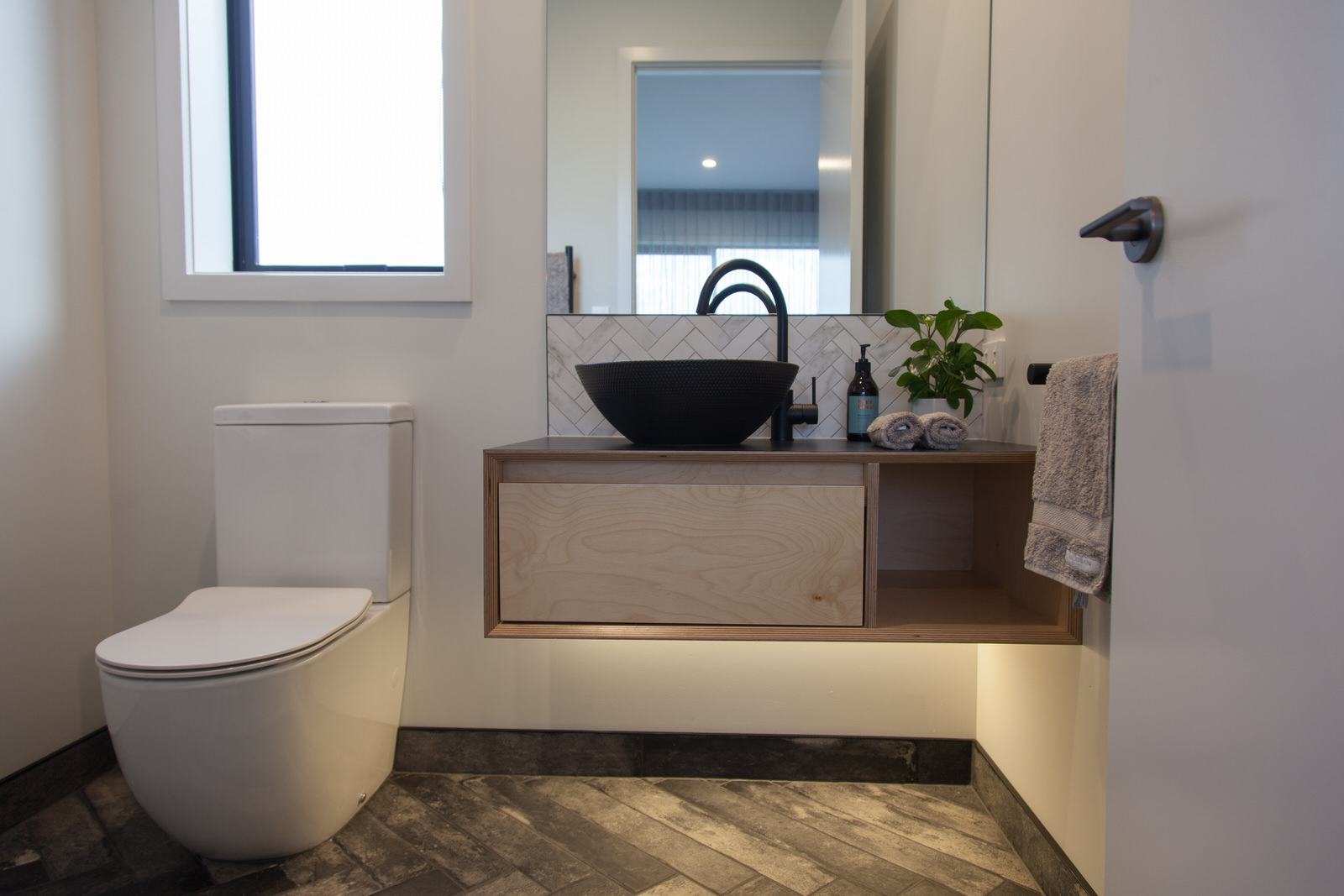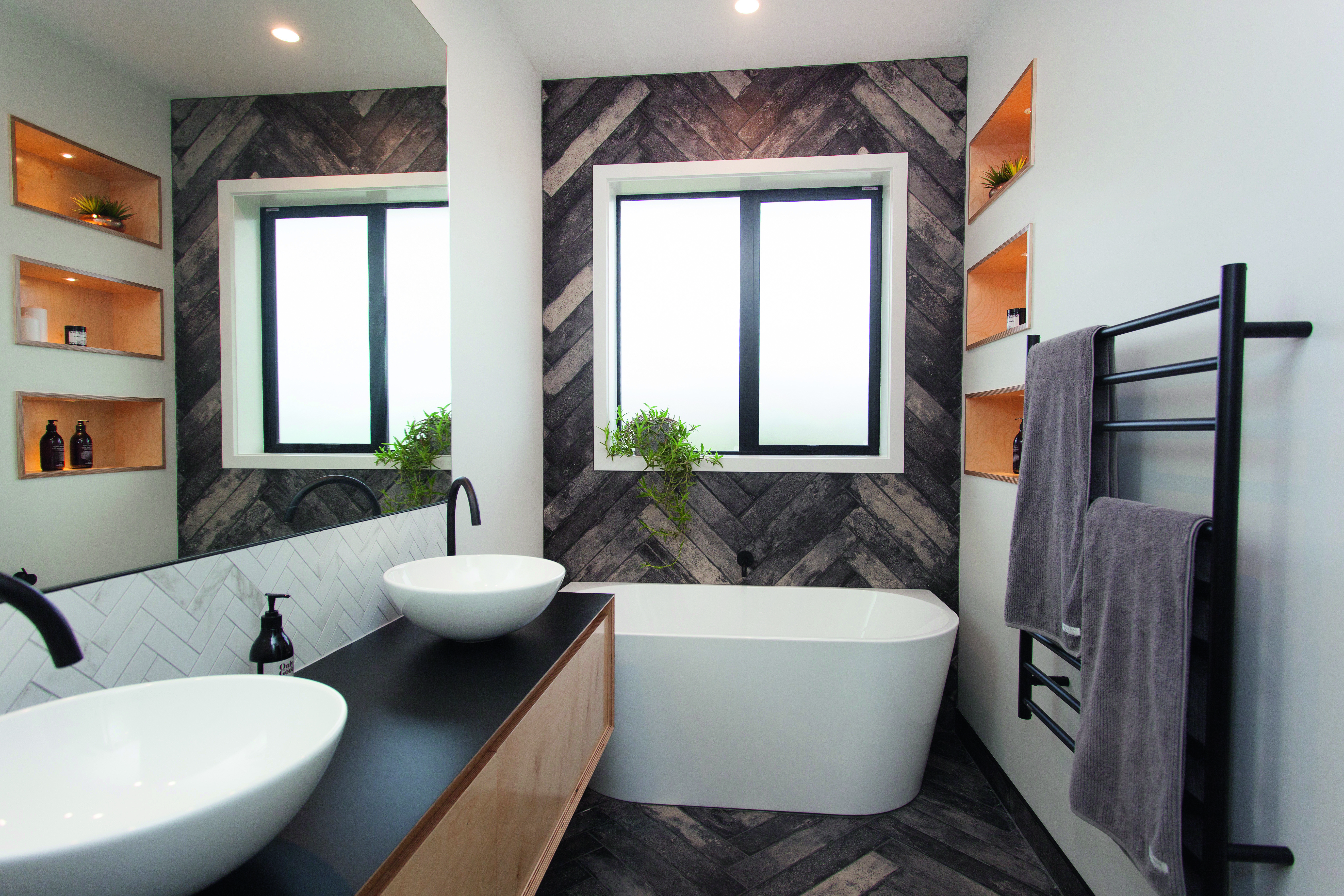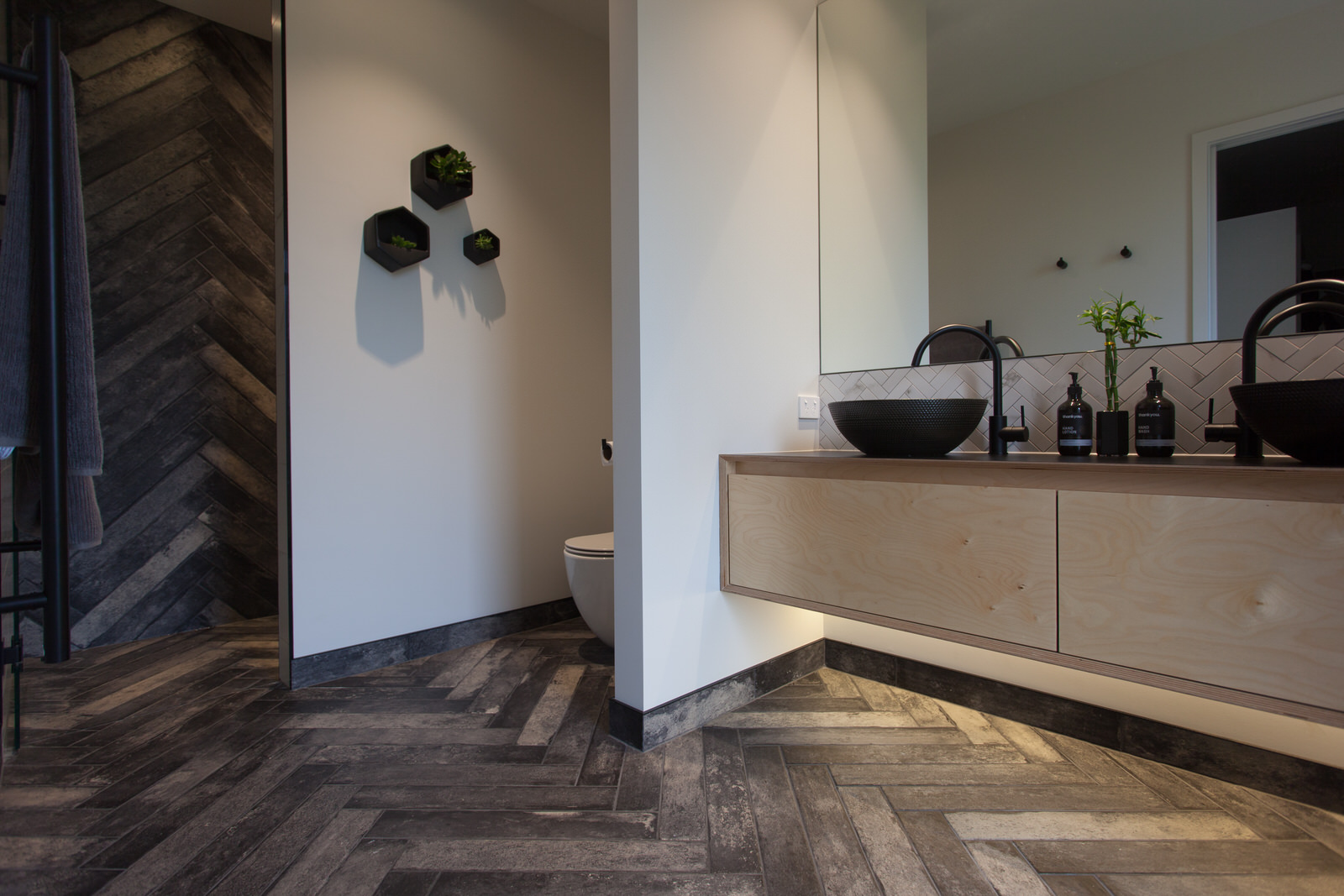 The three beautifully appointed bathrooms provide a refined rustic feel and everyday functionality that’s in tune with the family’s lifestyle.