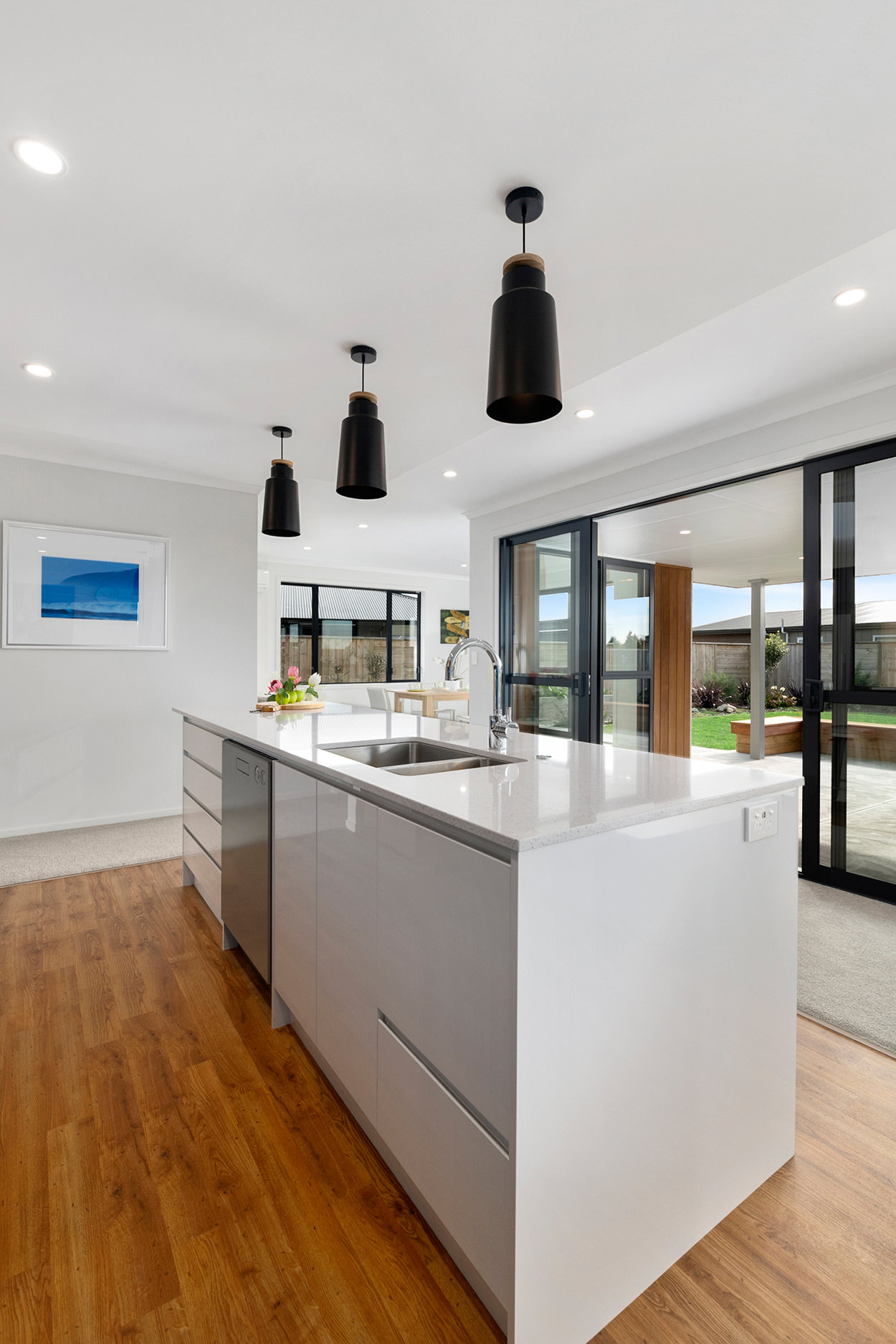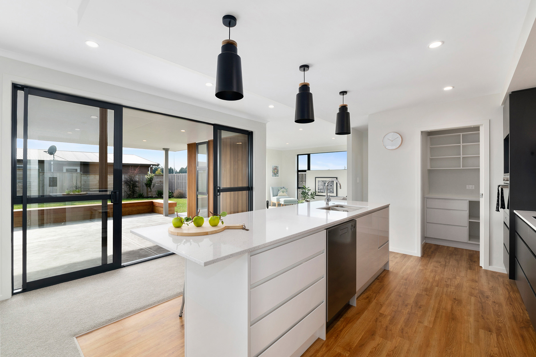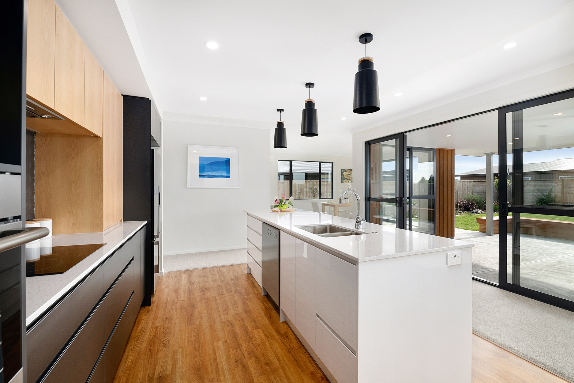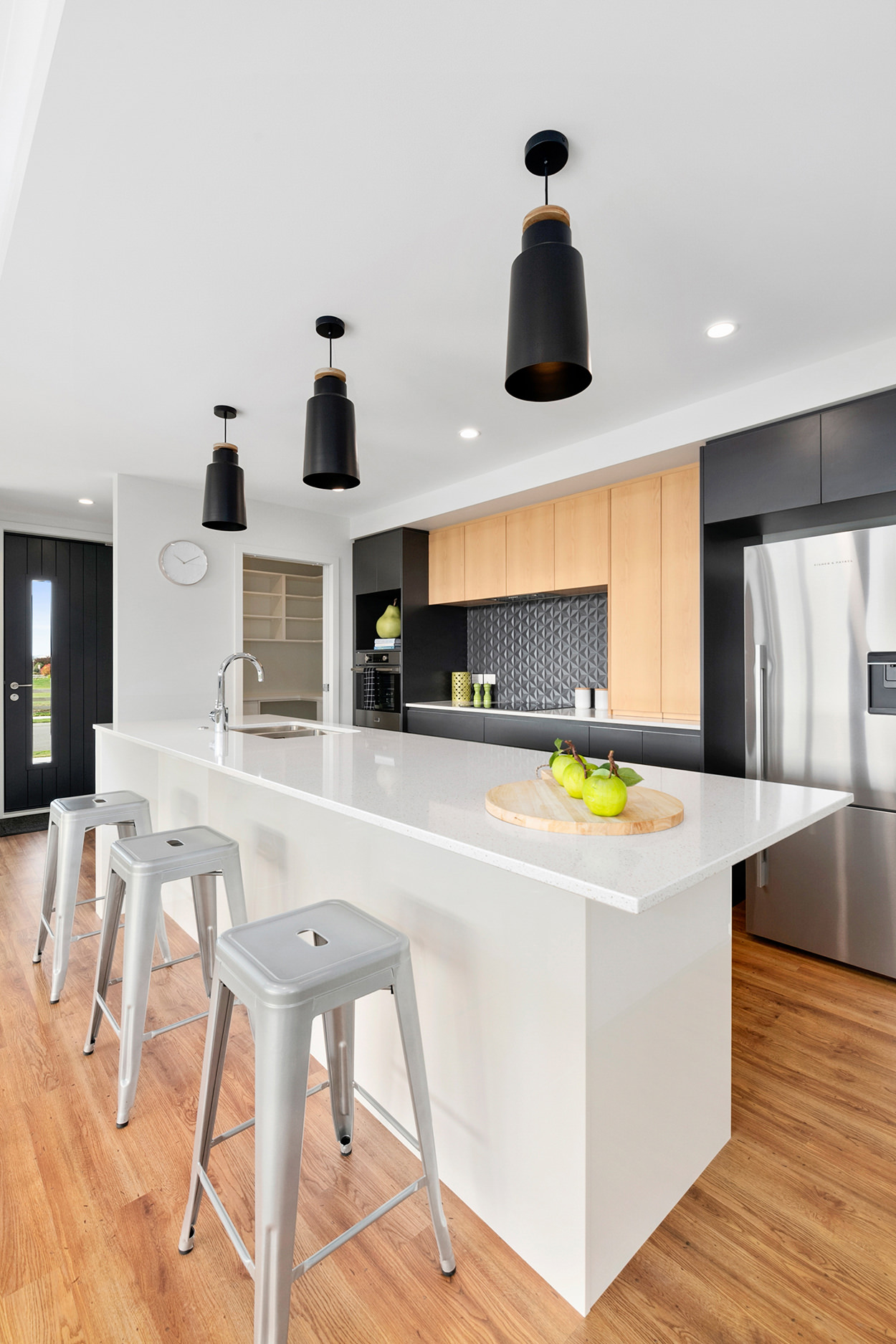 The chic kitchen is perfect for entertaining, with its modern appliances and a scullery making it the cook’s best friend. The central site of the island bench means hosts can socialise while they whip up dinner or drinks.