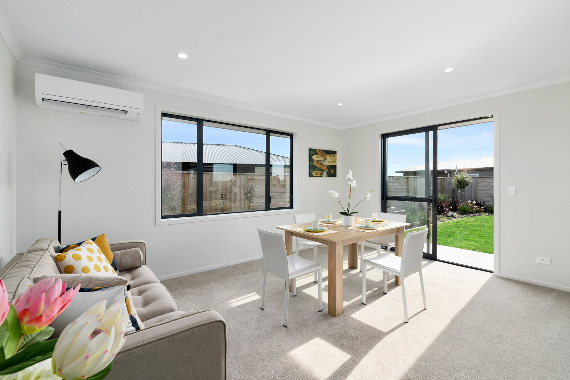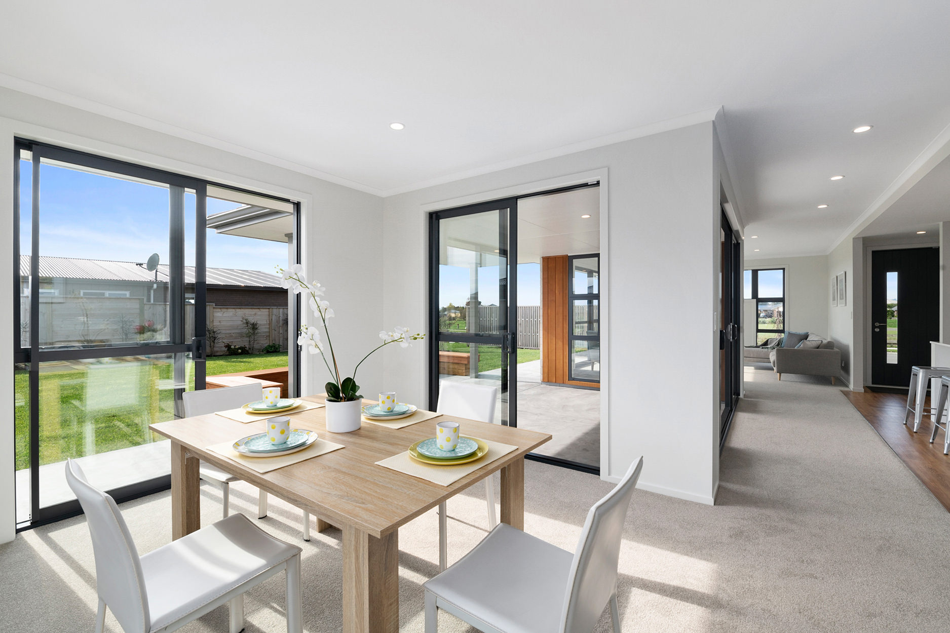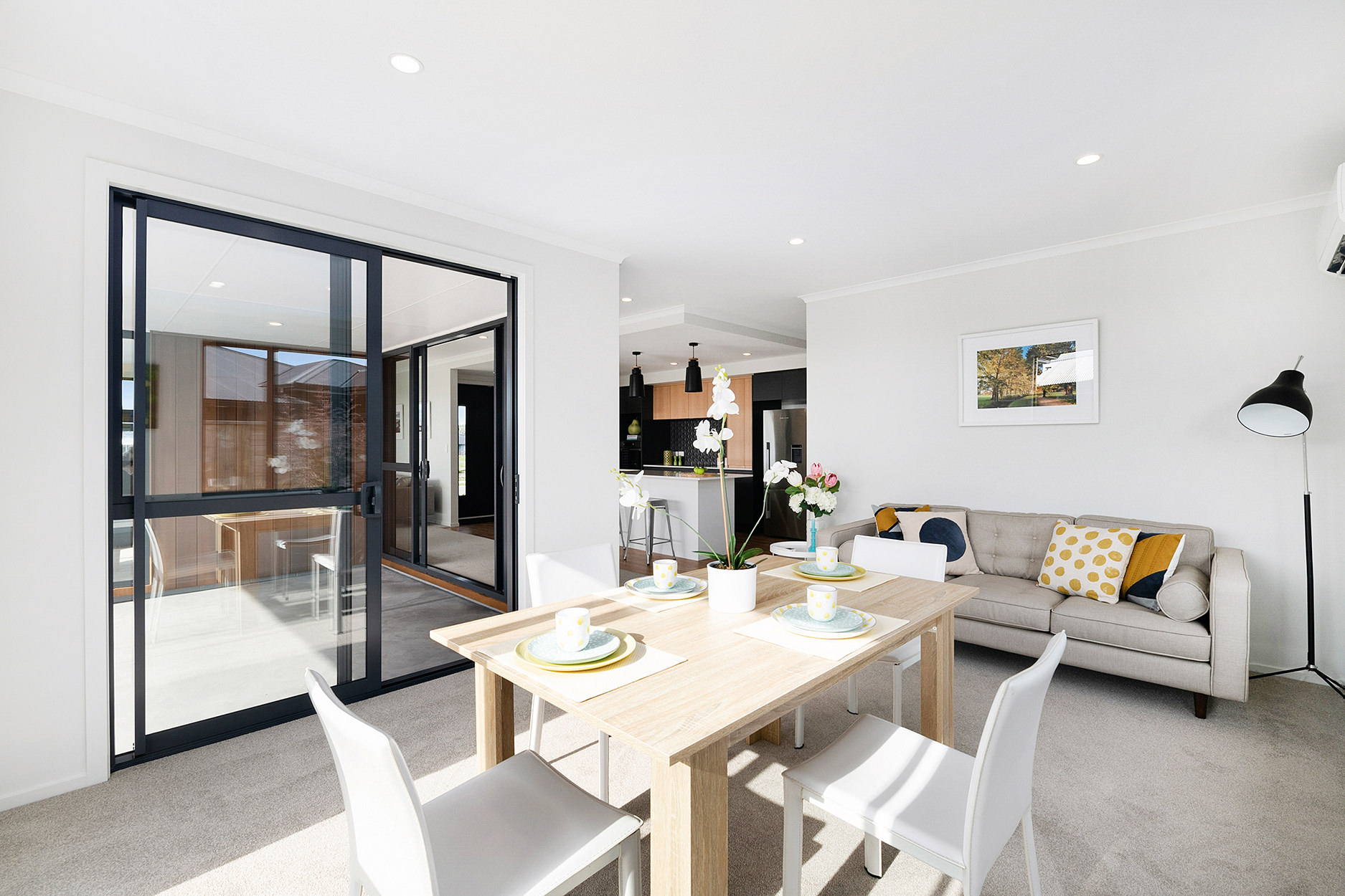 At the centre of the open-plan living space is a sheltered courtyard, perfect for entertaining. Easily accessed through sliding doors from both the kitchen and dining areas, this covered retreat is an ideal spot to relax and unwind.
