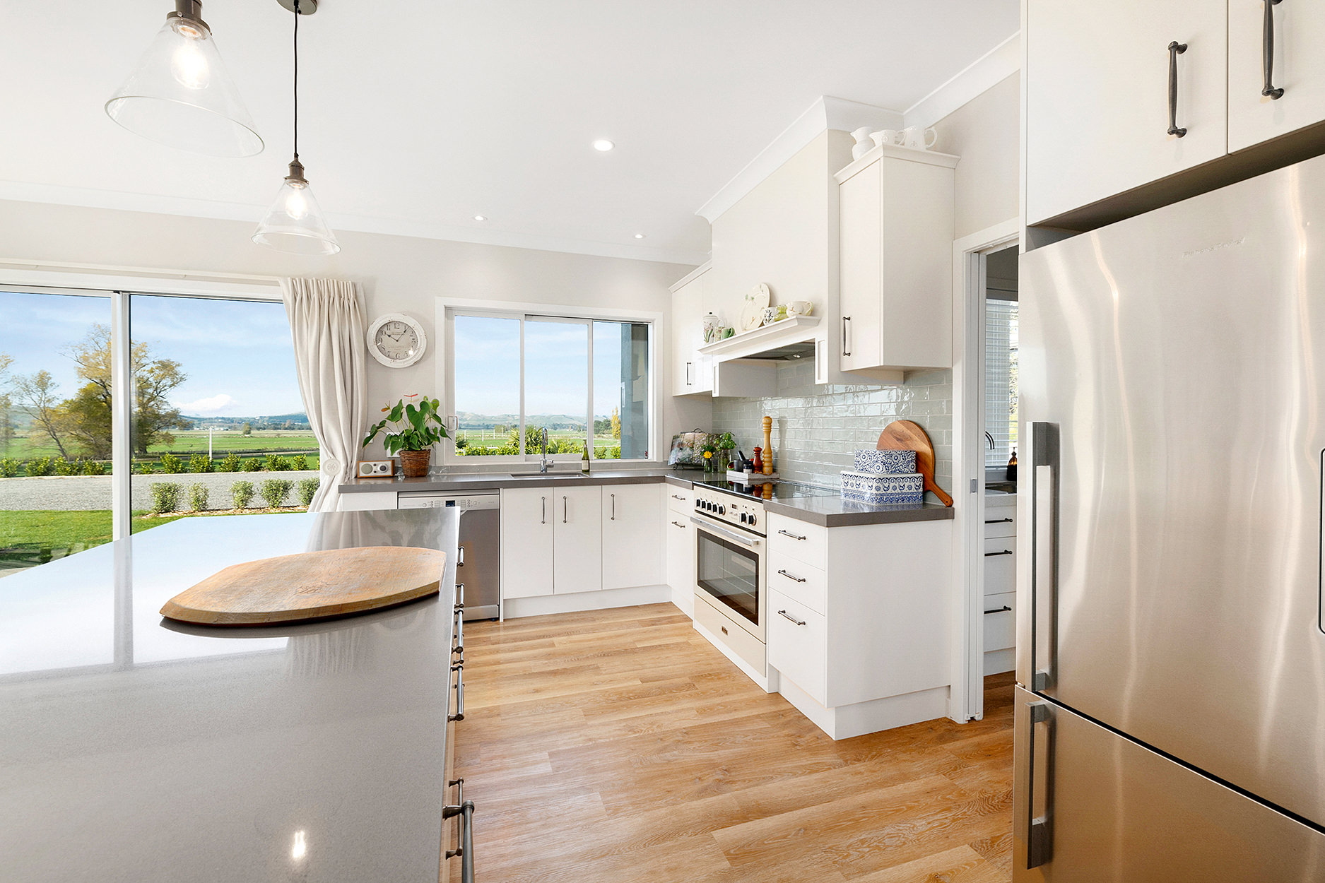 Enrobed in rusticated weatherboard, with white box corners and wooden gable vents, this Wairarapa home exudes a traditional look that sits well in the landscape.