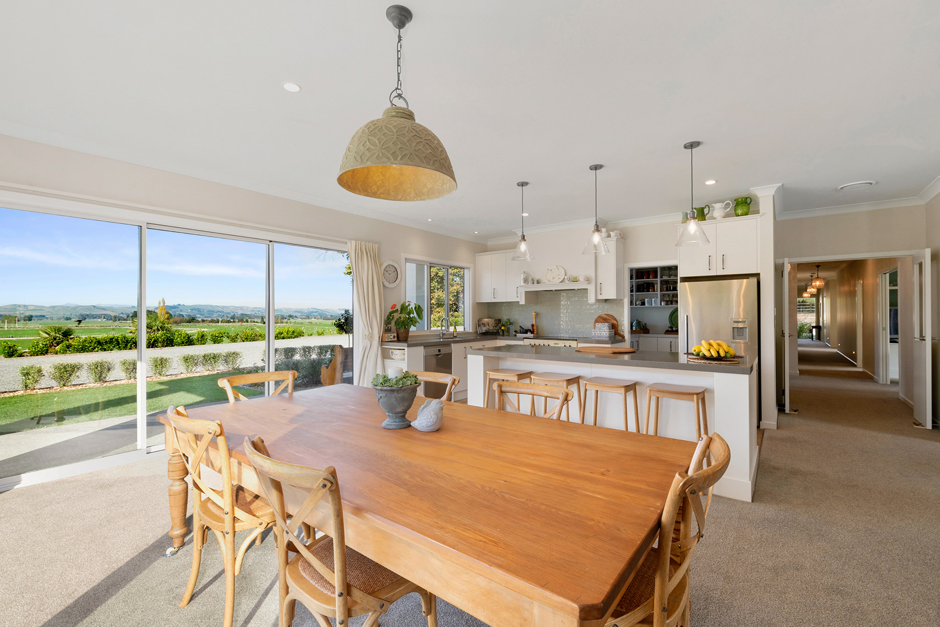 Indoor-outdoor flow is at the heart of the 325sqm design. Sliding doors open almost every room to the surrounding countryside.