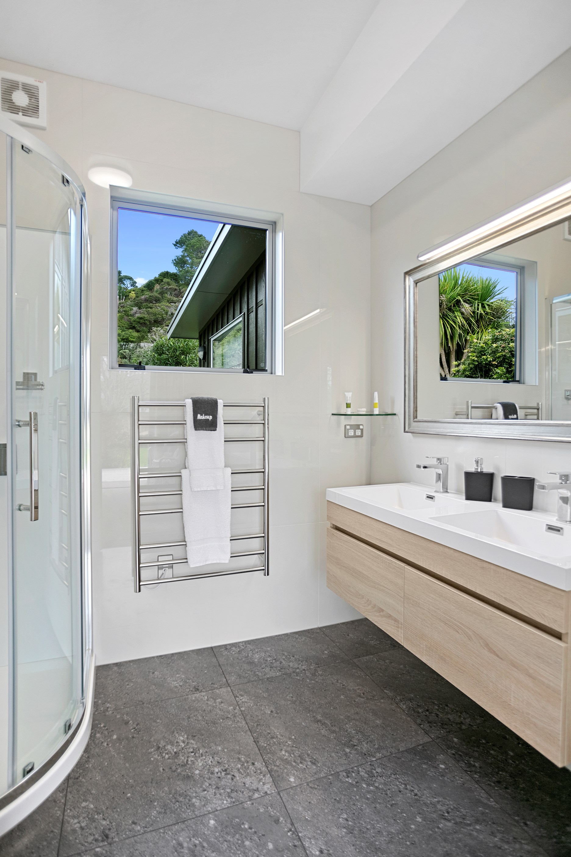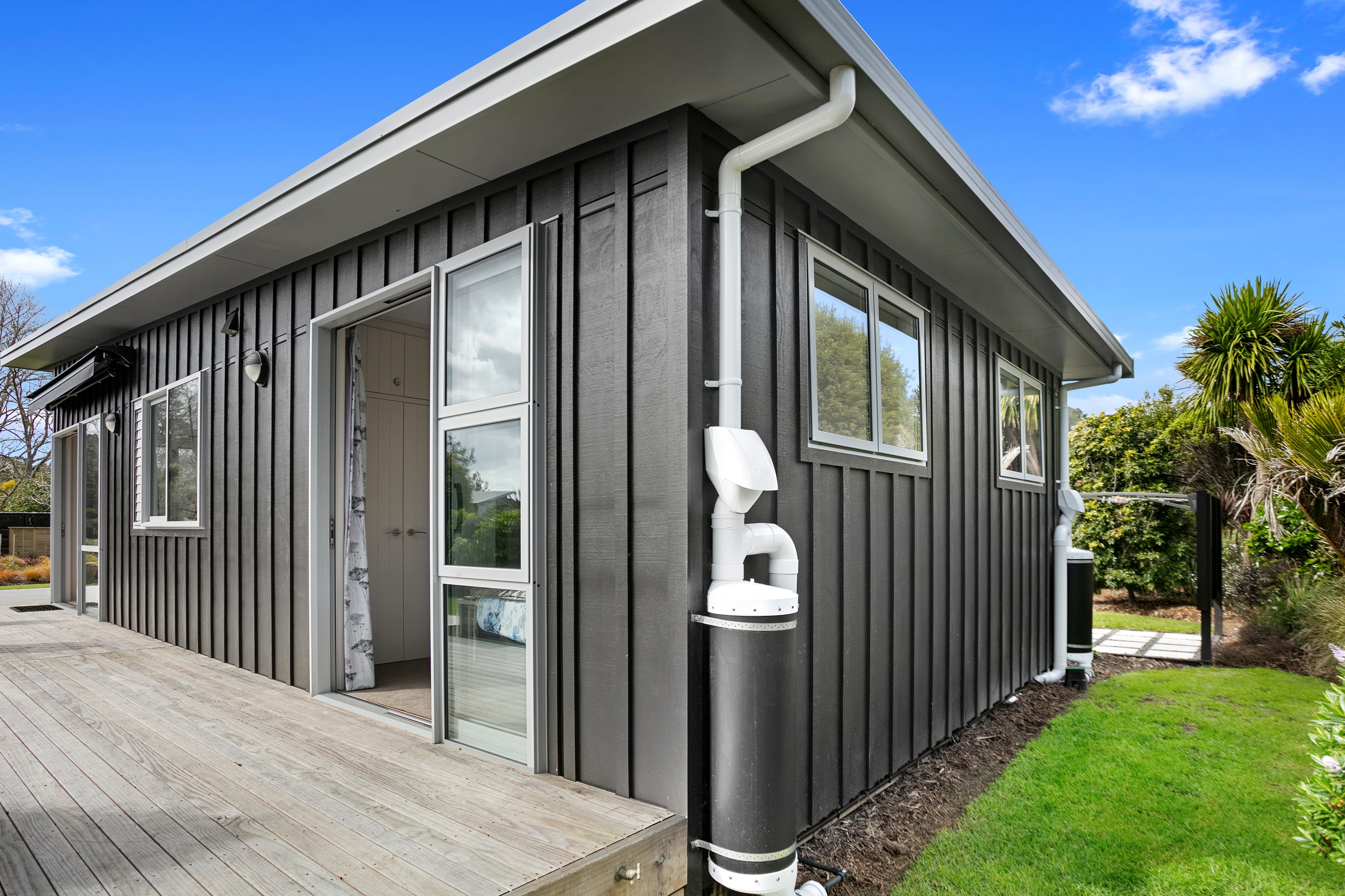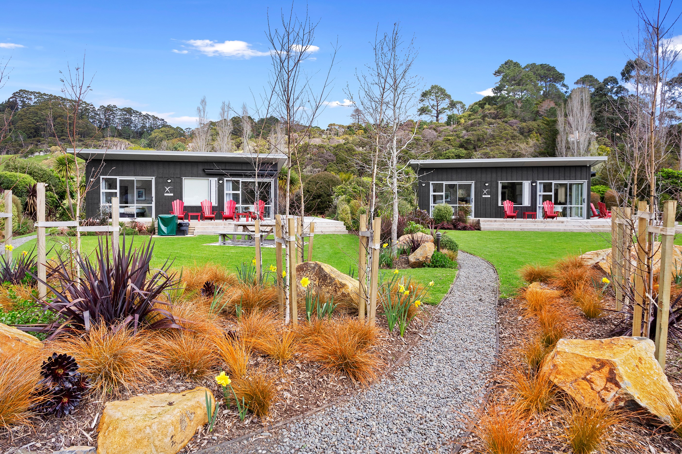One of just 15 charming houses and cottages in the four-star Flaxmill private holiday park on the Coromandel Peninsula, this three-bedroom, two-bathroom home fits effortlessly into a petite 90sqm.
