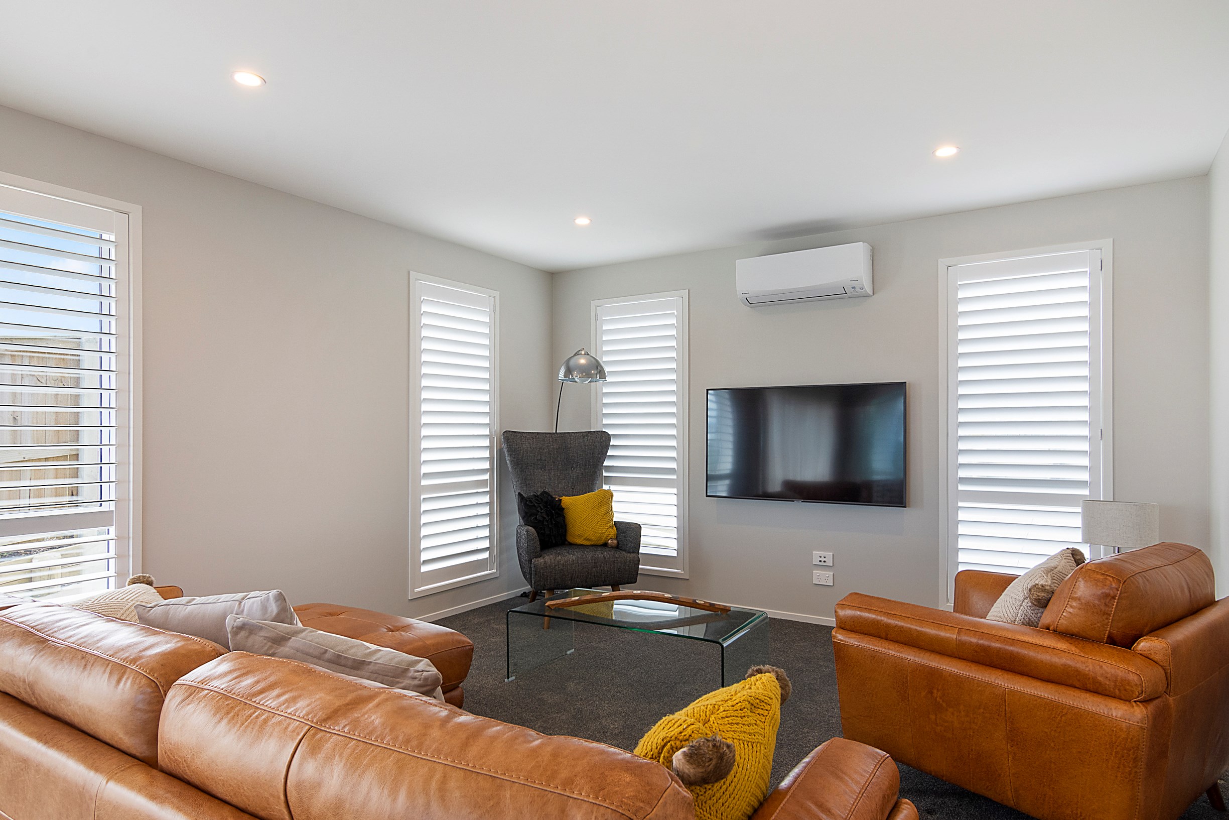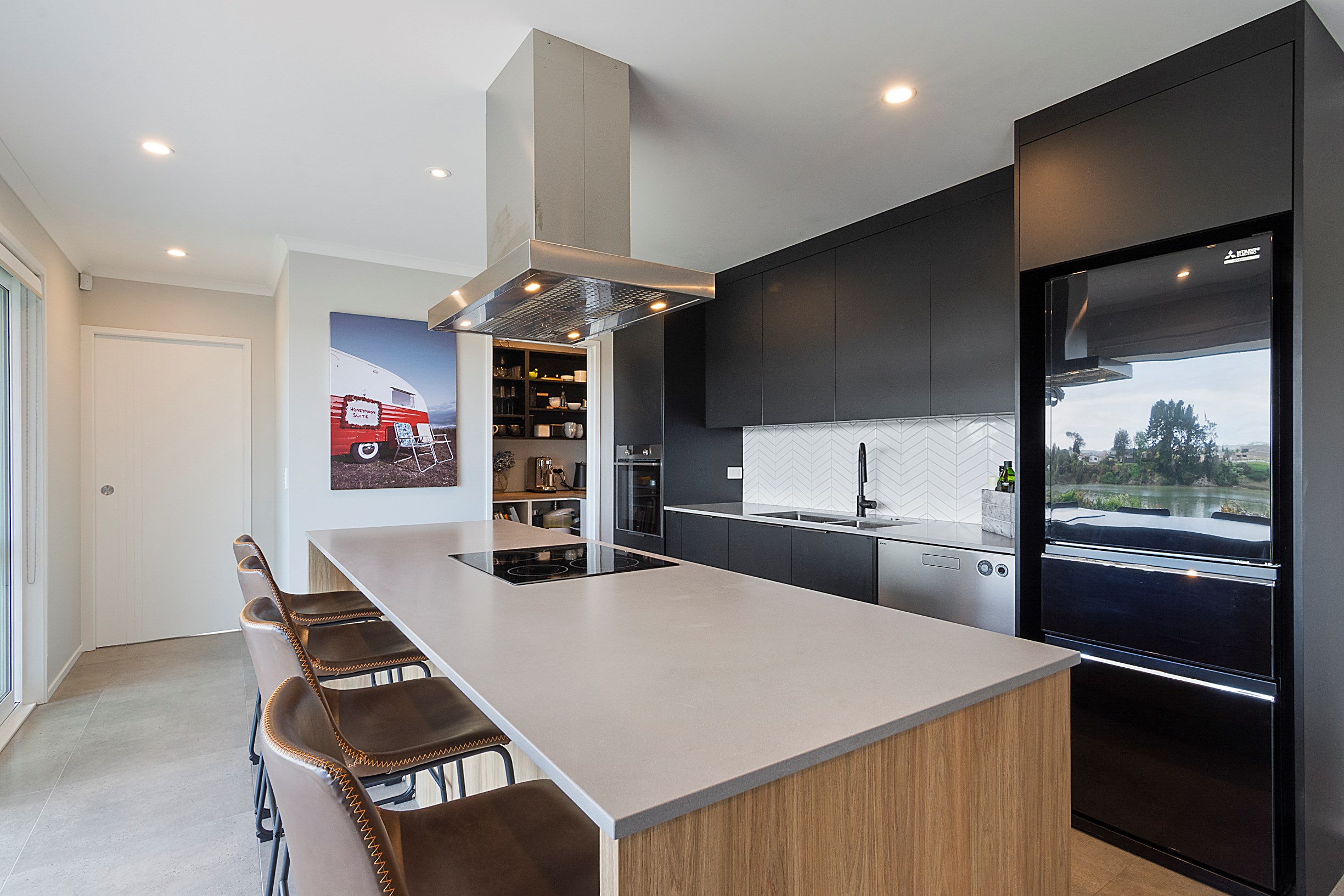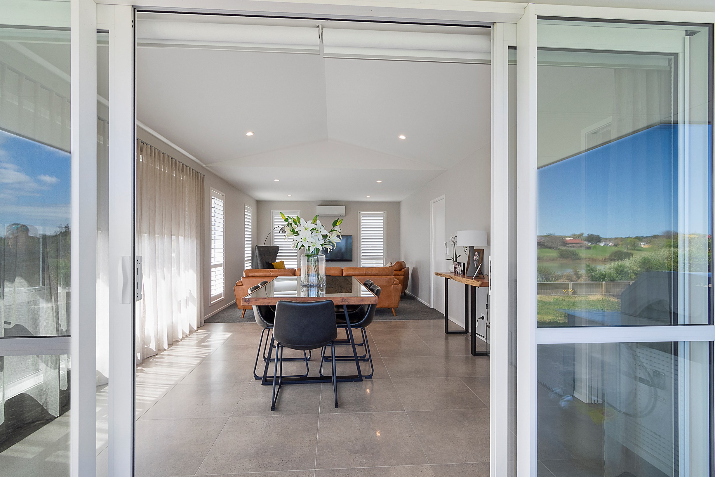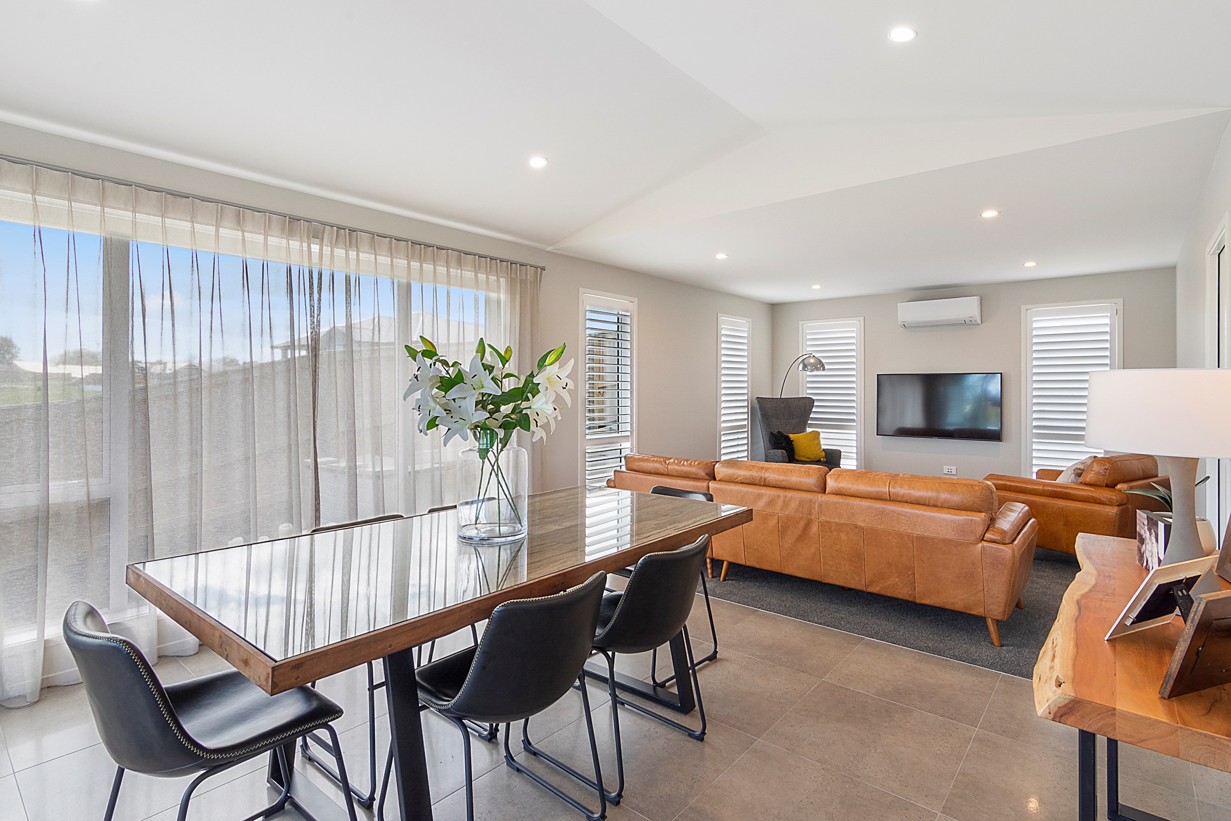 You’ll find three spacious bedrooms, including the main suite that has a designer ensuite and a walk-through wardrobe. There’s also a separate laundry and spacious garage with attic stairs for easy access to roof storage. The smart exterior is clad in James Hardie Oblique and Linea weatherboards and on the roof are Gerard pressed steel tiles – low-maintenance options that leave more time to enjoy the river views and the sunsets.