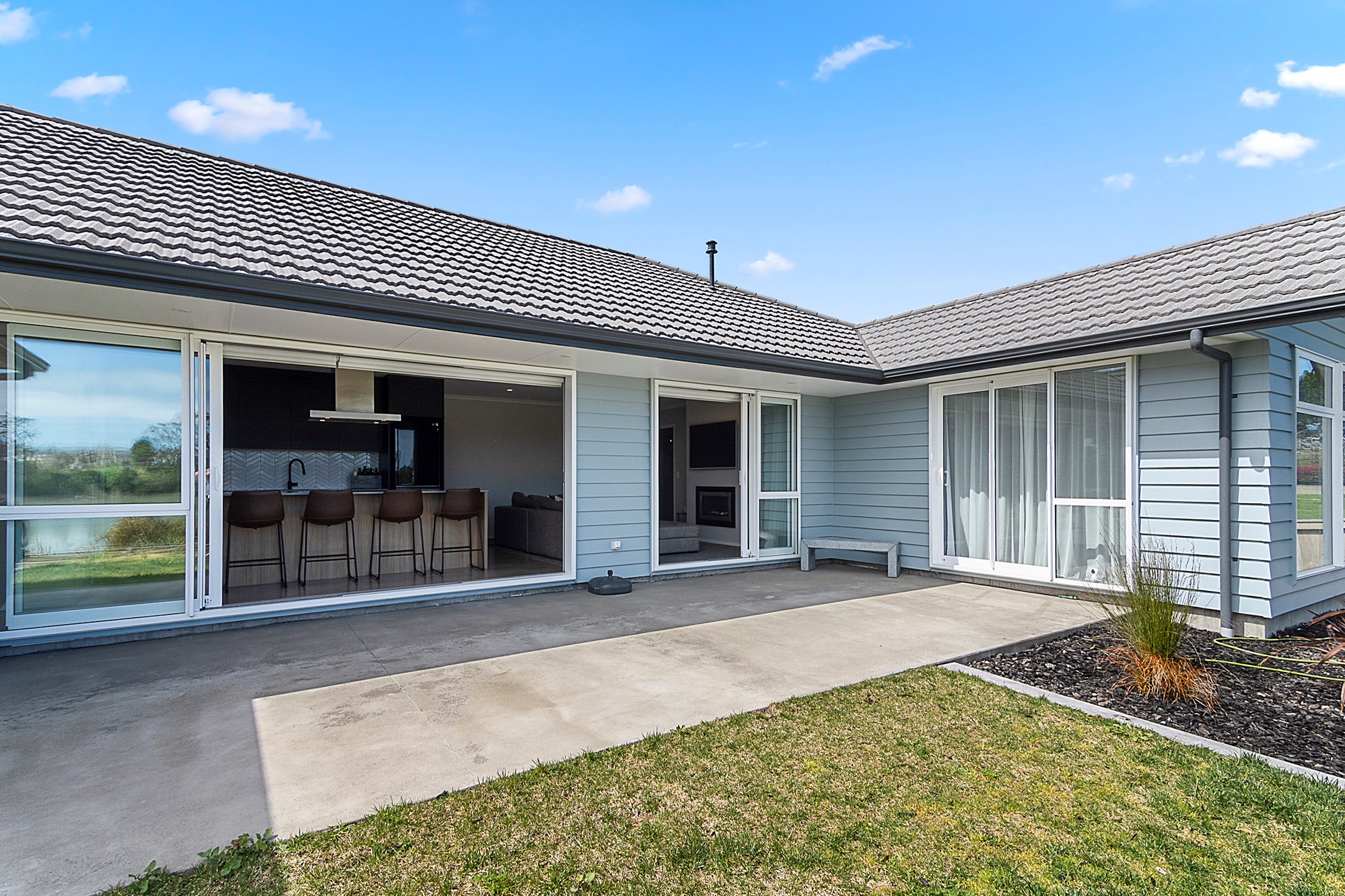 You’ll be able to cook up a storm in the stylish kitchen with river views and there is storage aplenty in the scullery. Entertaining is a possibility all year round thanks to a large covered patio. It connects to the dining area, which has scissor truss ceilings that lend a real air of grandness to the space. A Rinnai fireplace warms everyone on winter nights.