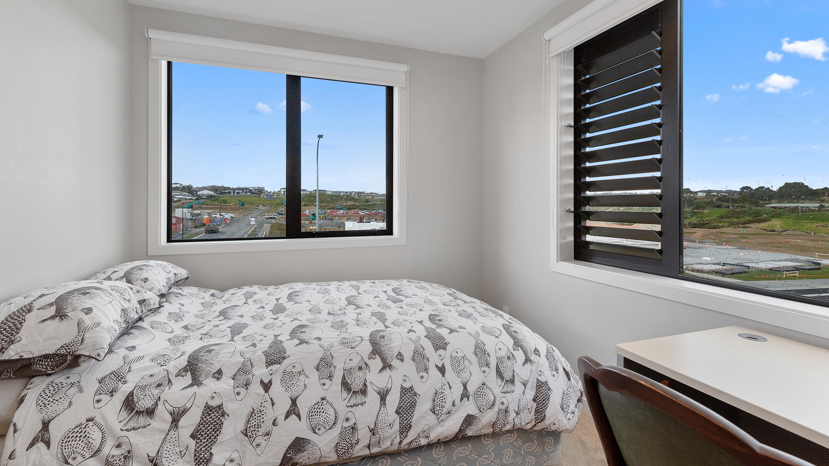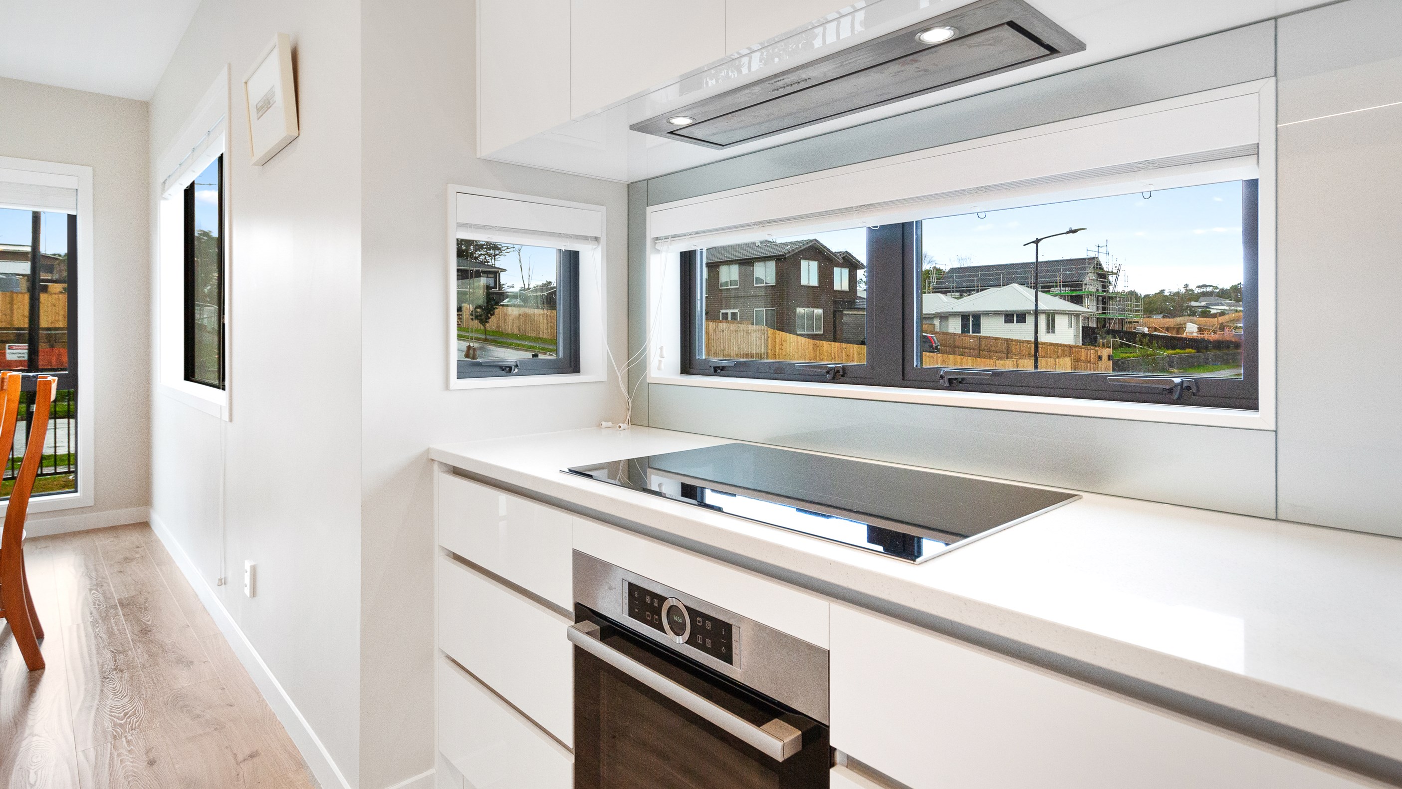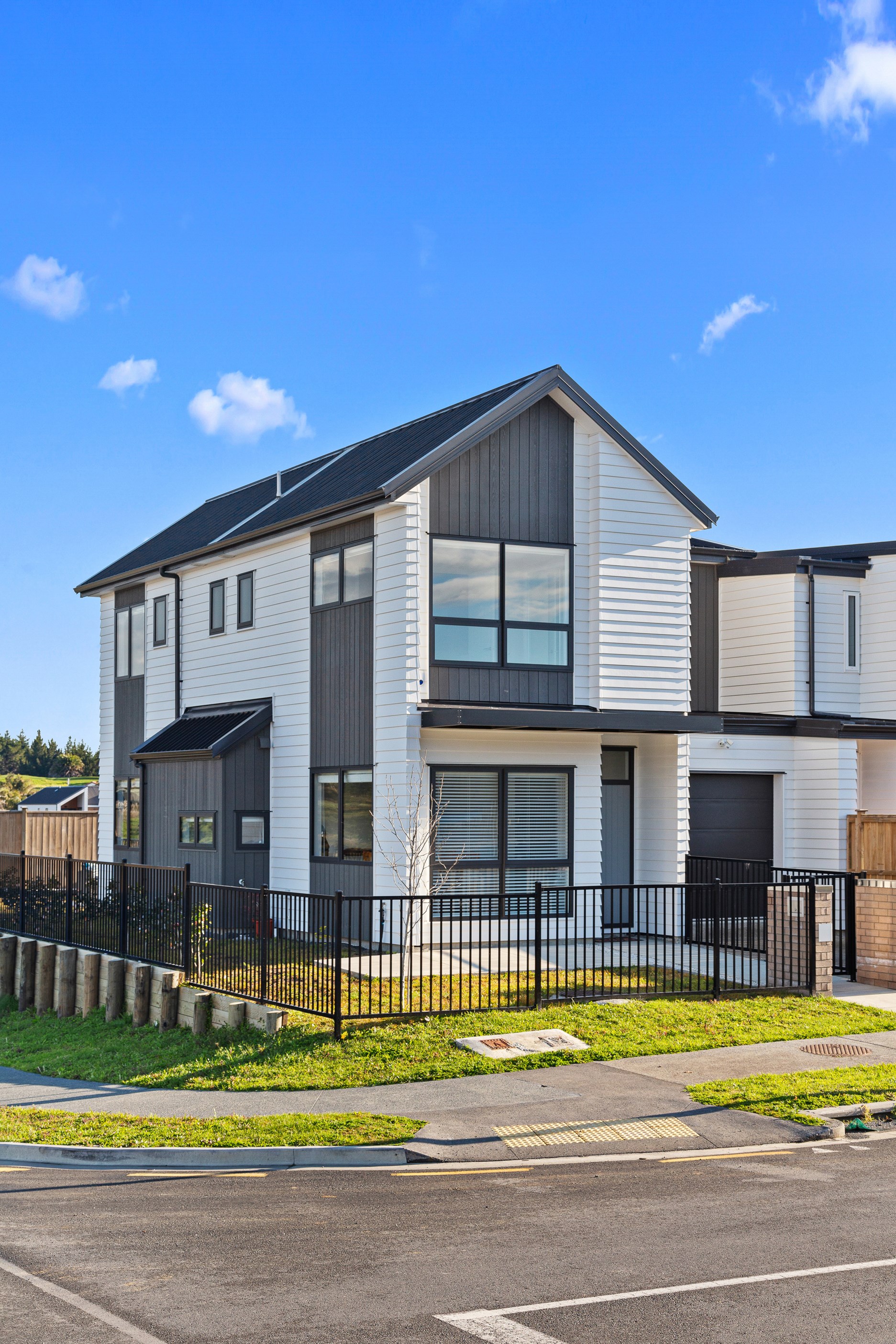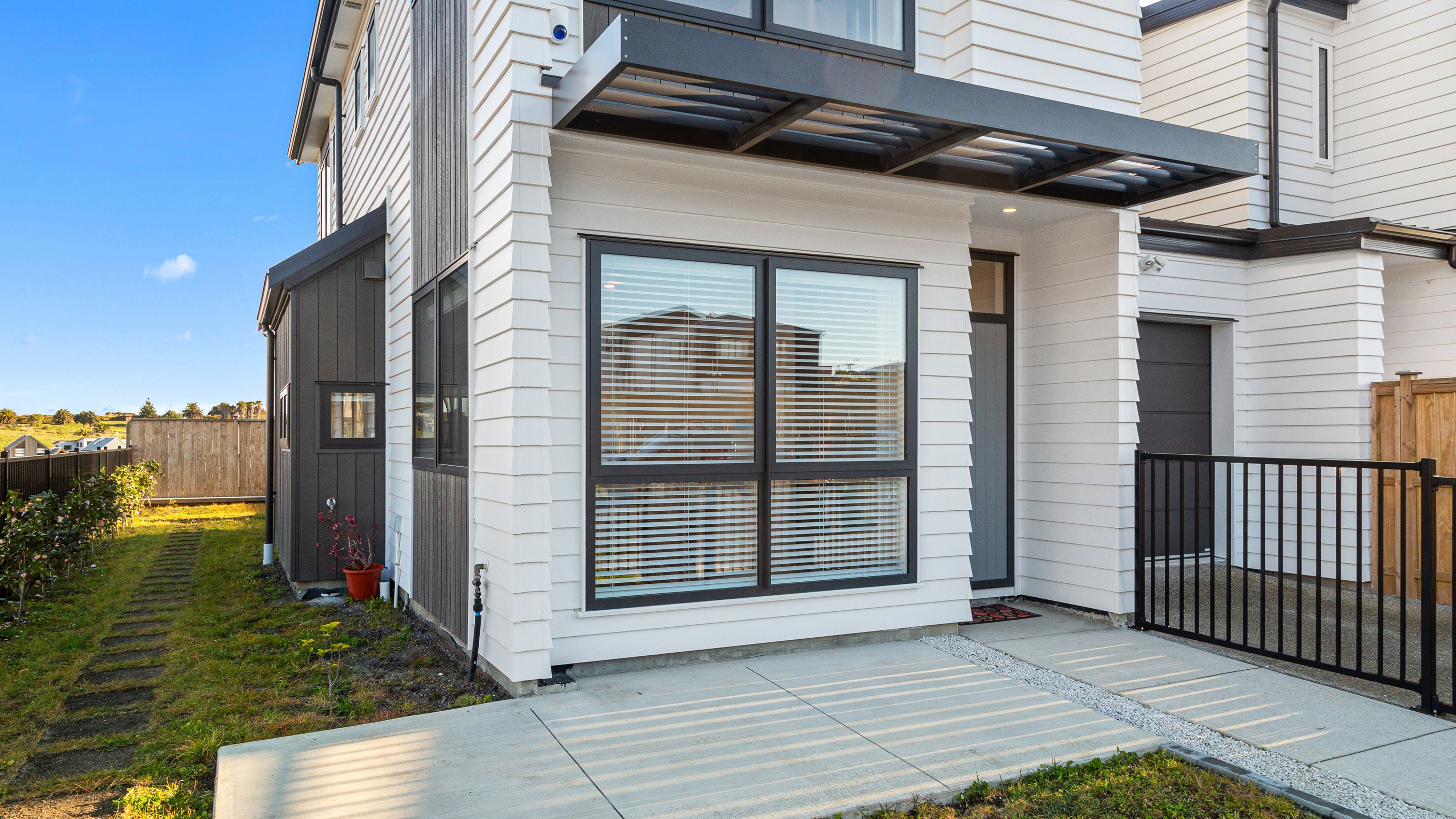 Three four-bedroom and five two-bedroom homes come covered in three distinct types of cladding – Abodo timber, James Hardie Linea weatherboards and vertical shiplap. The roofing is Colorsteel Maxx.