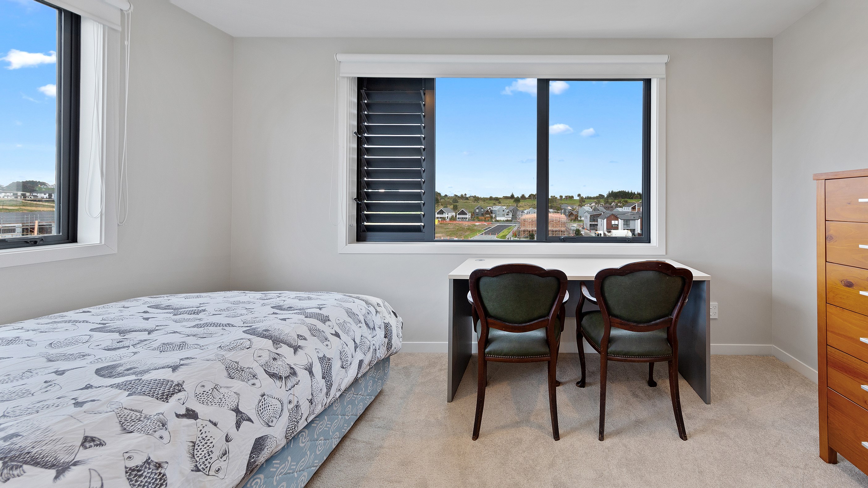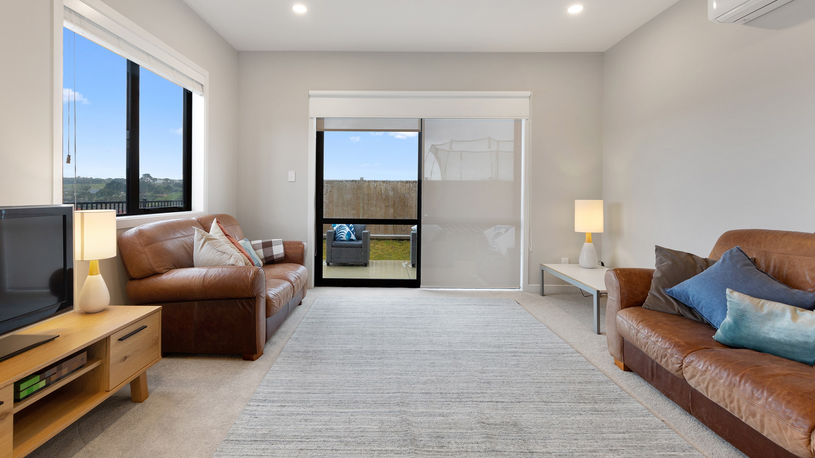 There is access to the level, landscaped compact grounds through aluminium double doors.