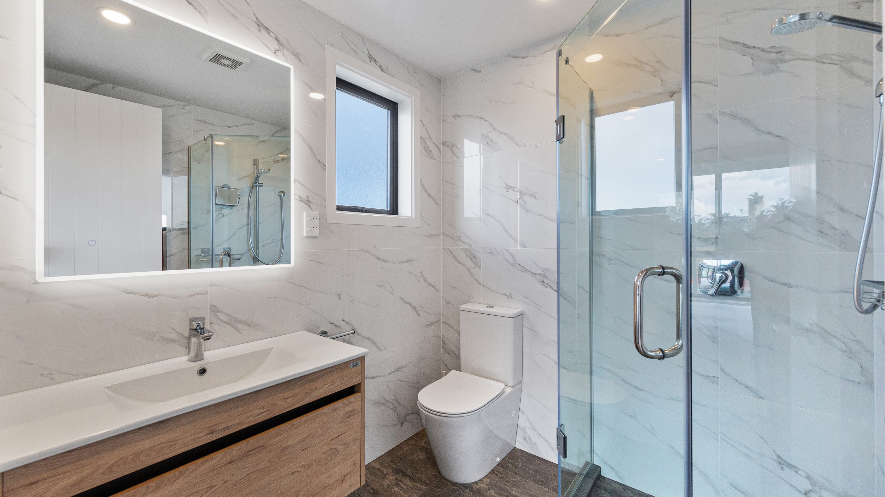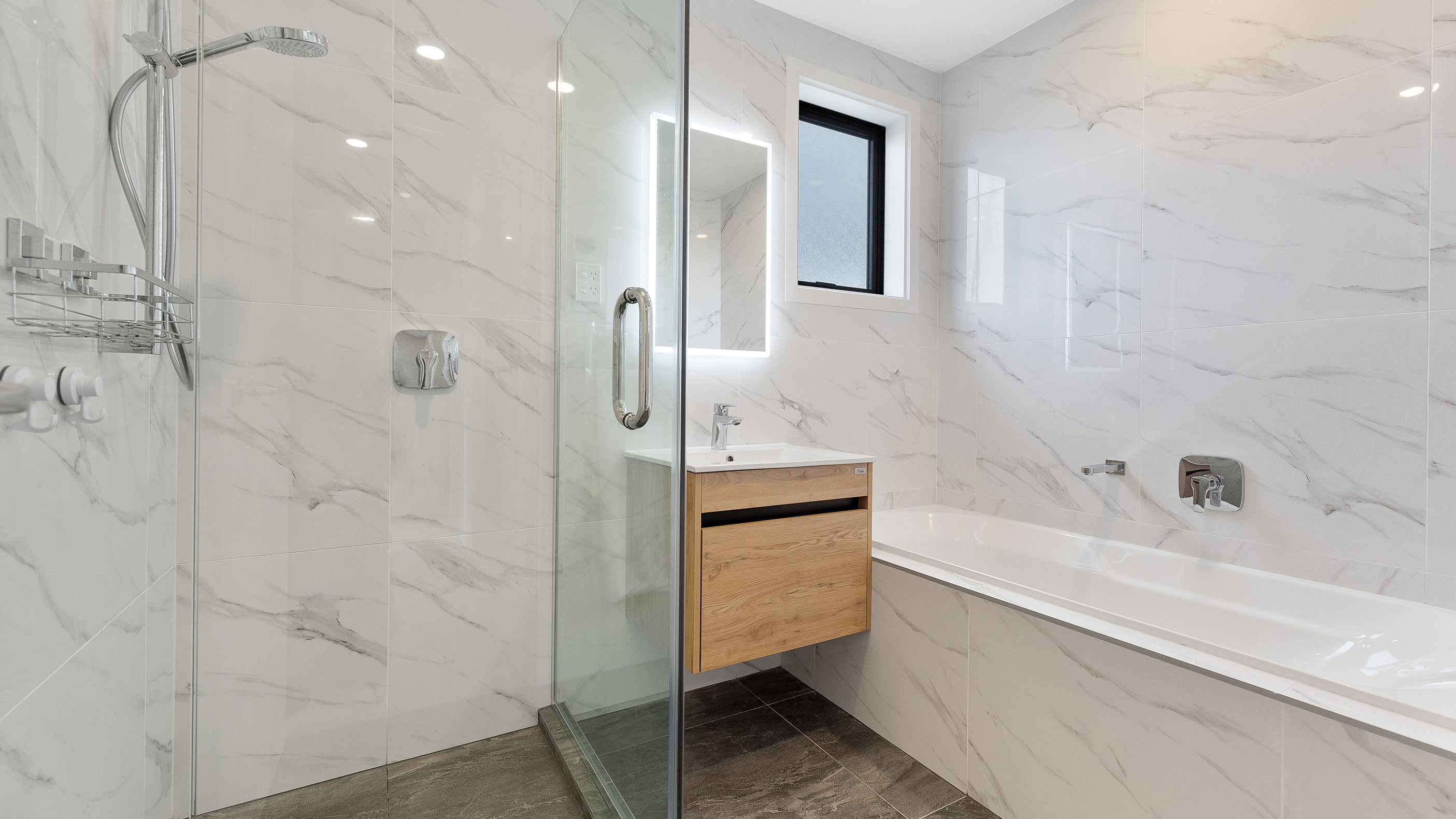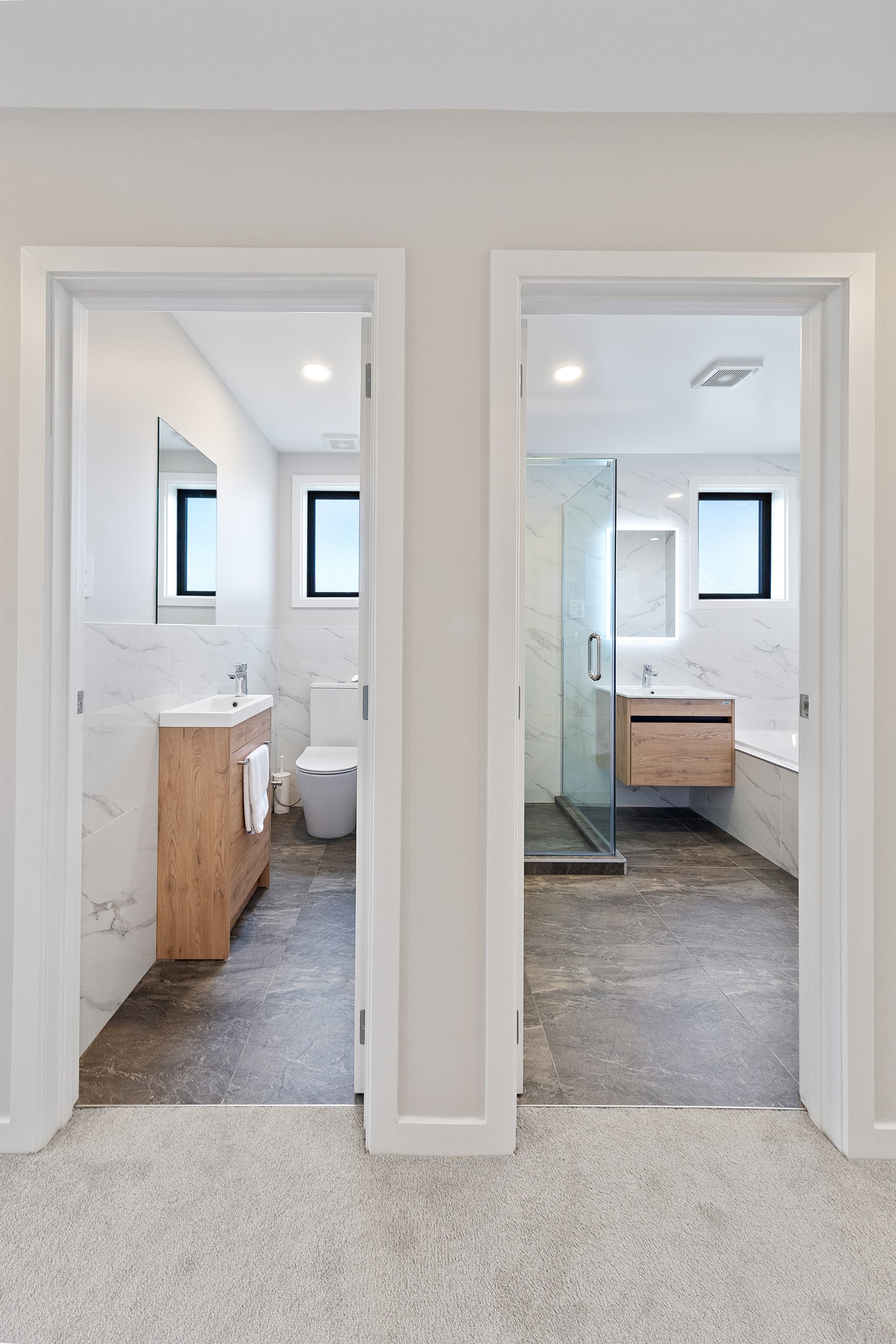or for entertaining a crowd. Skylights and ventilation systems draw in light and fresh air. Bathrooms are equally timeless in style, with neutral tones, floor-to-ceiling tiles, quality fittings and a separate bath and shower.