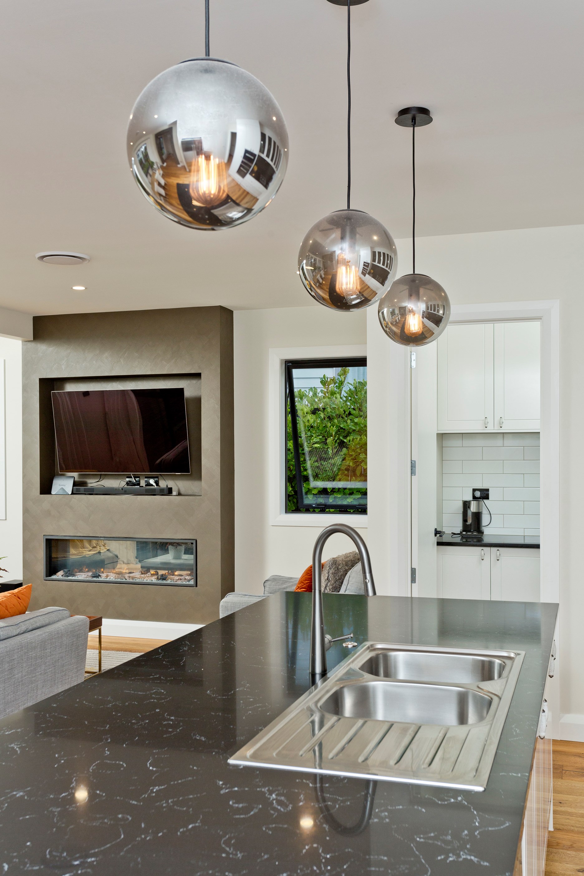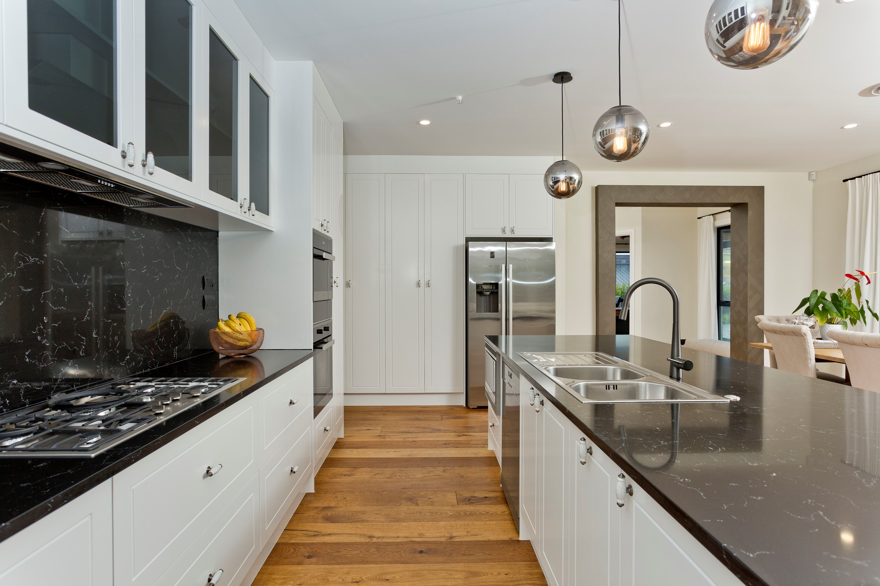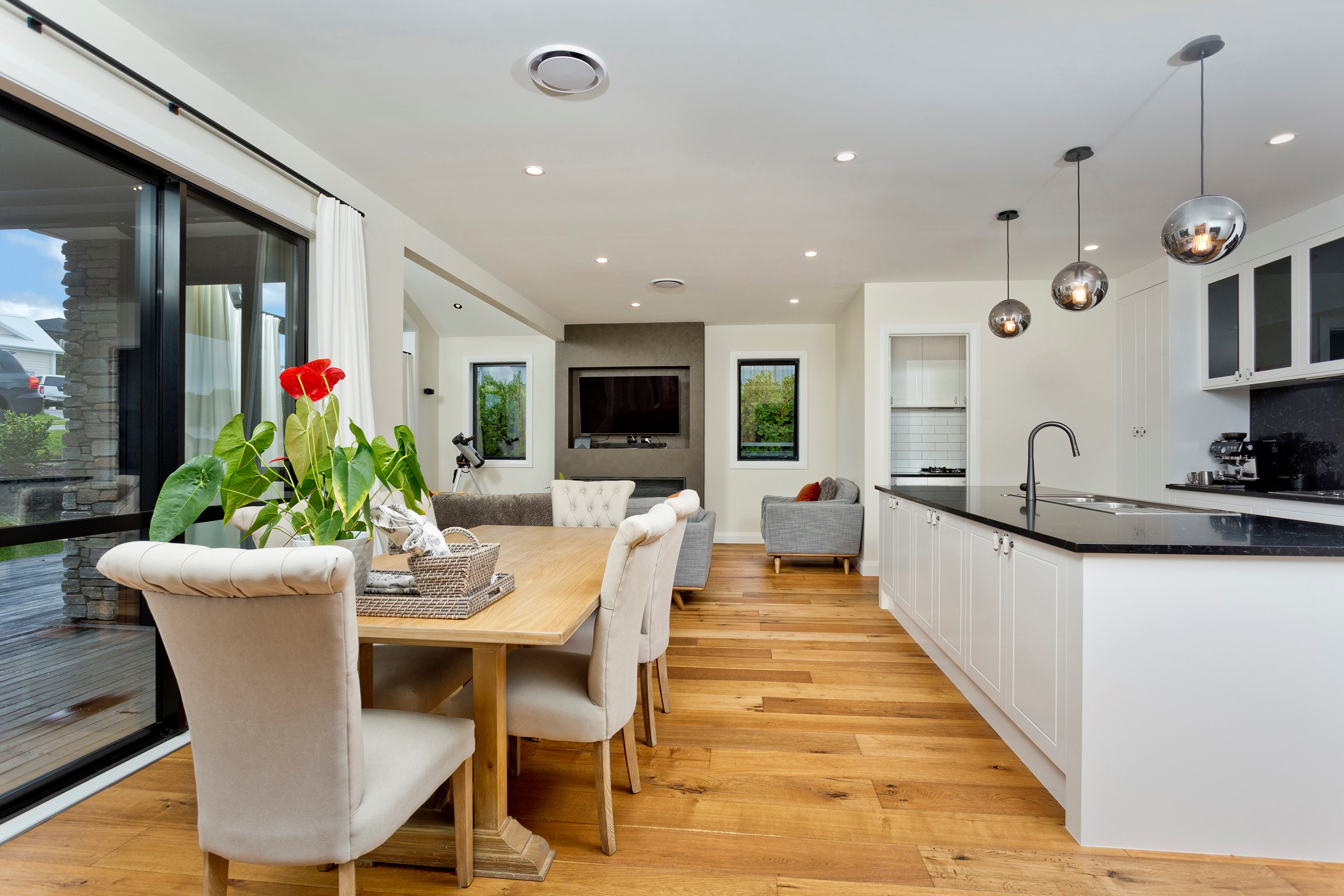 A high-spec farmhouse kitchen has premium Miele appliances for those who love to entertain, whether it’s hosting guests indoors or alfresco in one of several outdoor entertaining areas. With Auckland’s unpredictable weather in mind, these have thoughtfully been covered. Solar panels and low-maintanence landscaping also feature, as well as generous garaging and off-street parking for additional vehicles and even the boat.