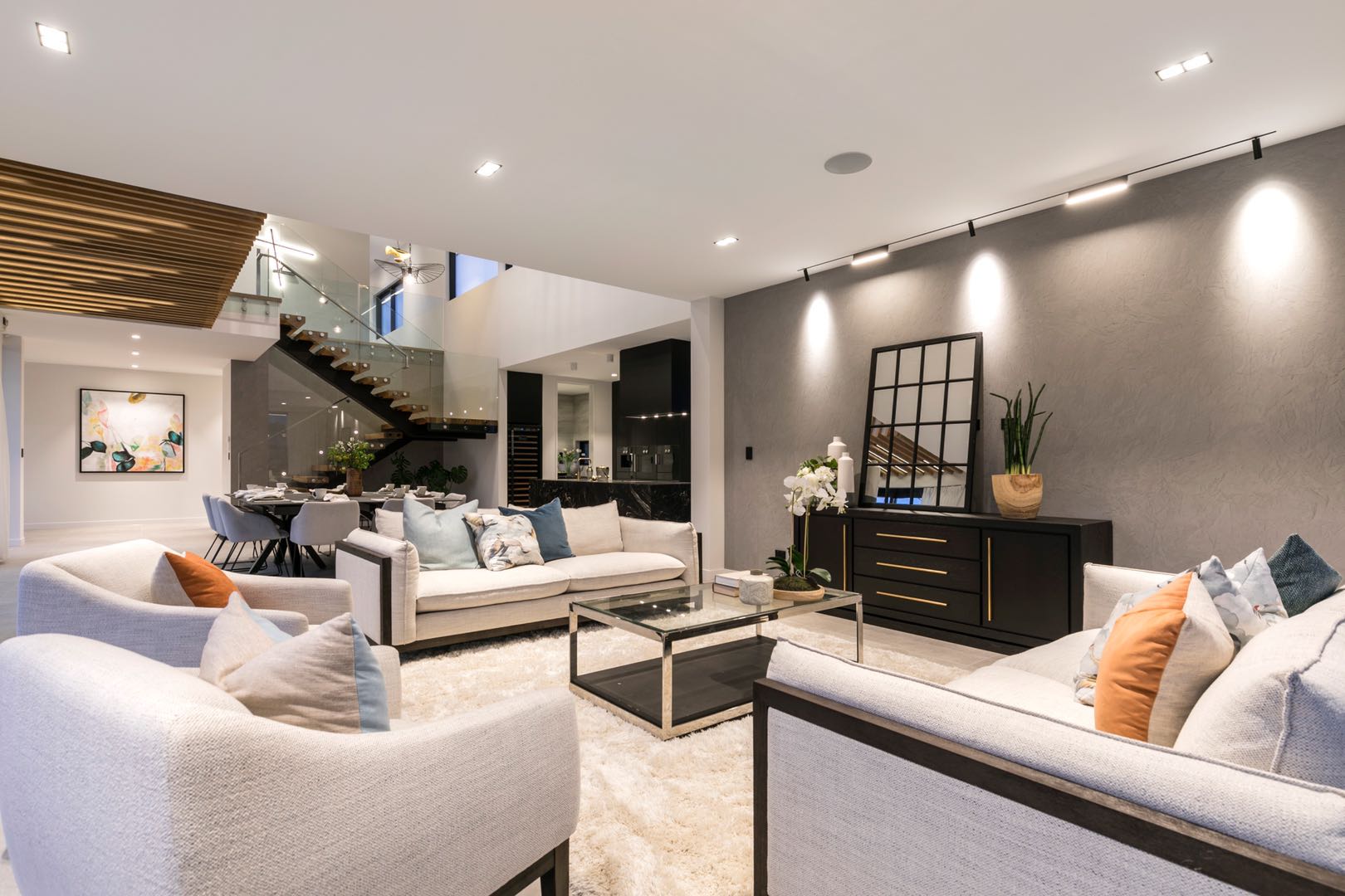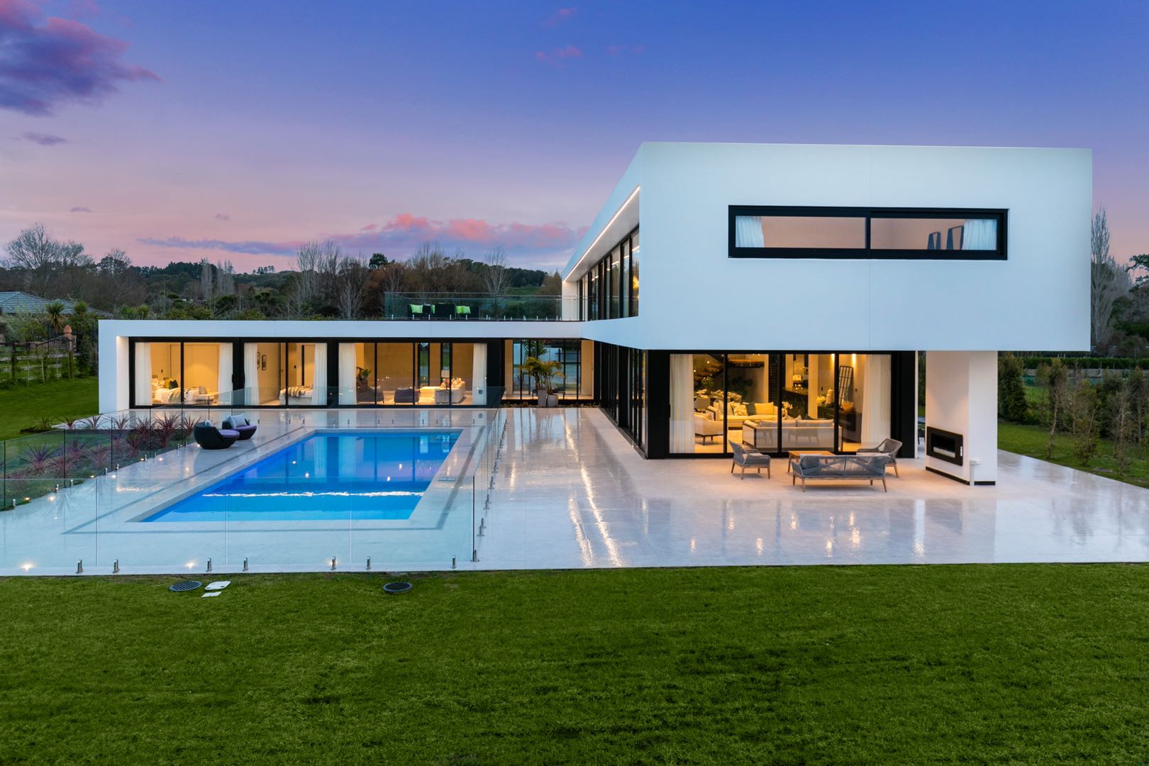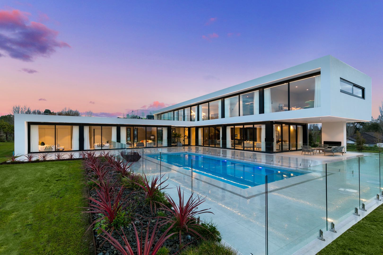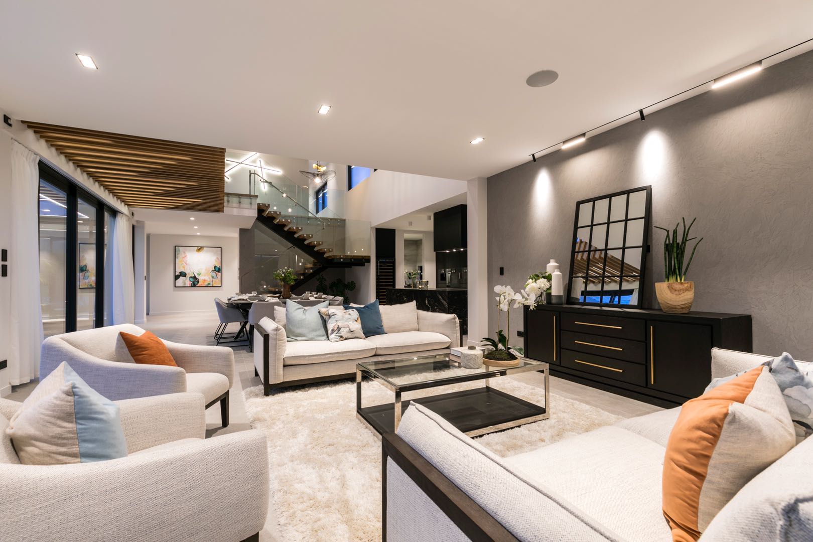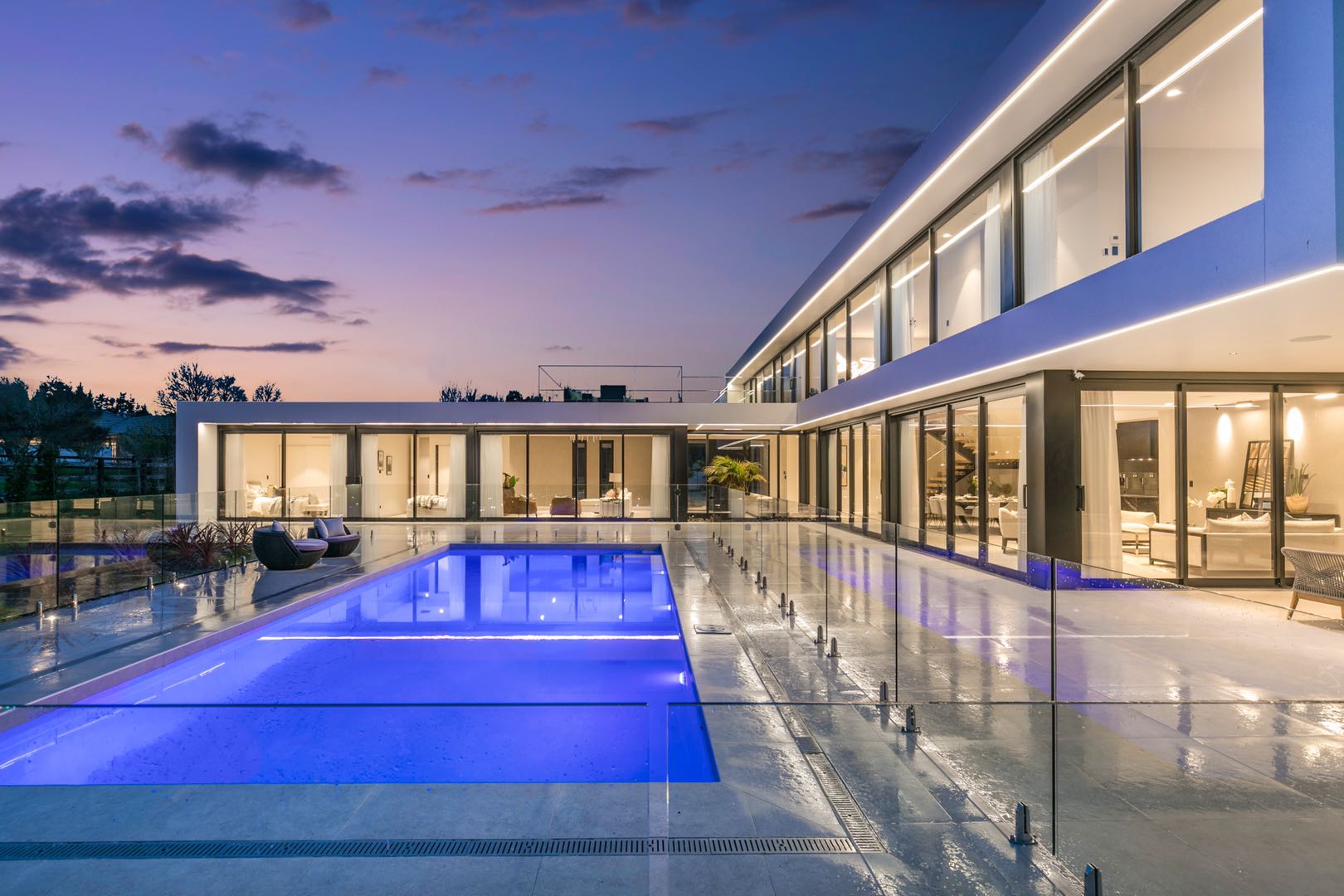 The house has incredible indoor-outdoor flow to the immaculate lawns and a pool beside comfortable seating zones. This show-stopper is modern living at its best.