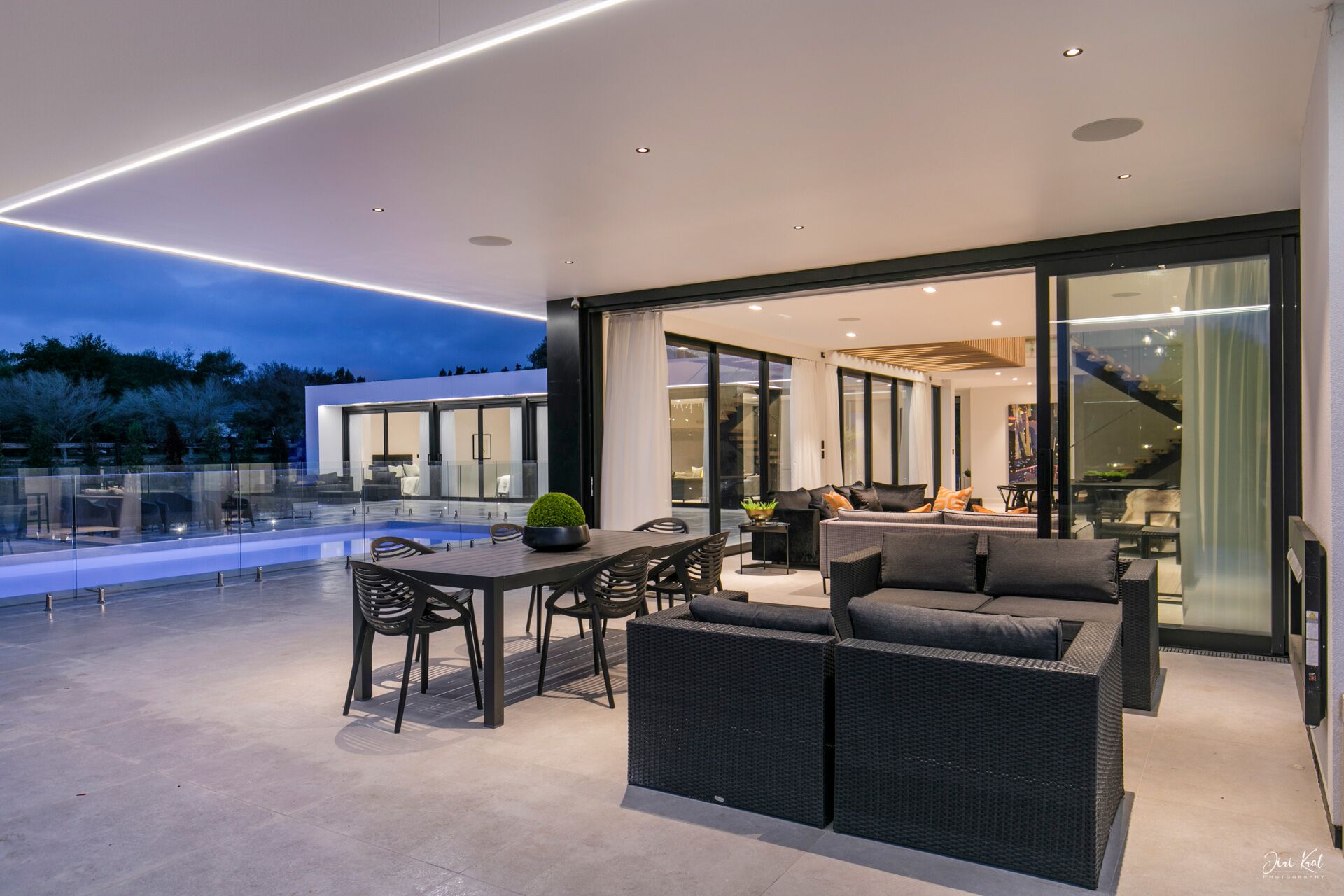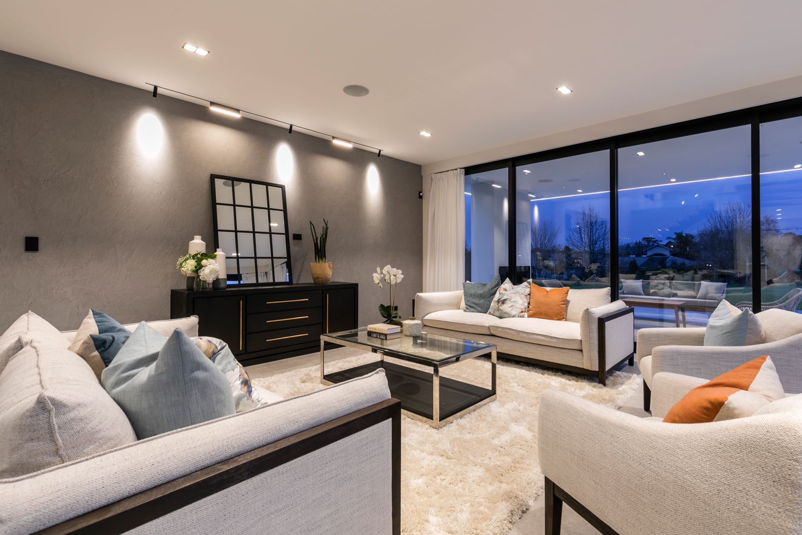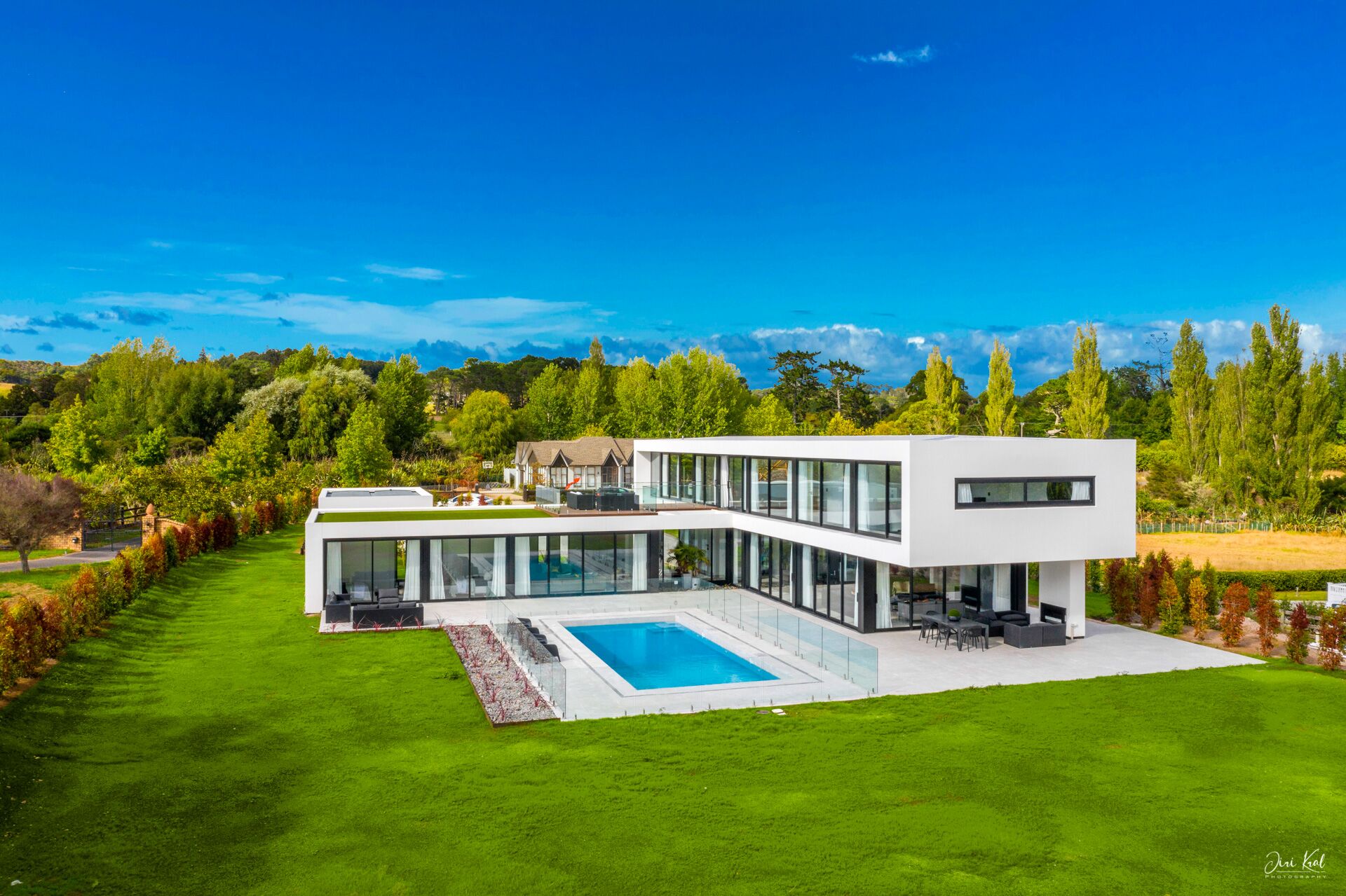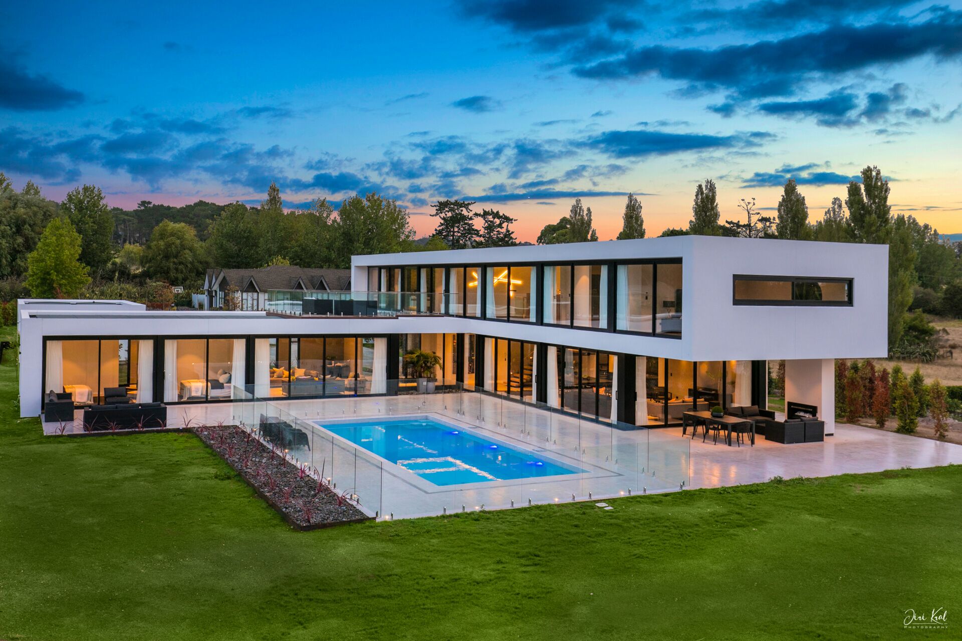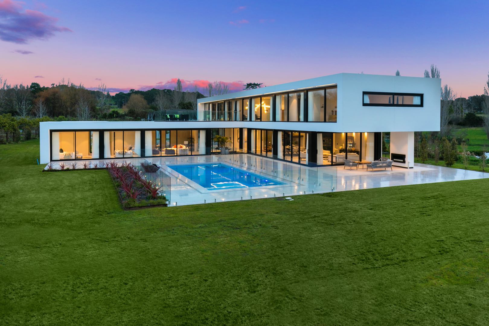 The house has incredible indoor-outdoor flow to the immaculate lawns and a pool beside comfortable seating zones. This show-stopper is modern living at its best.