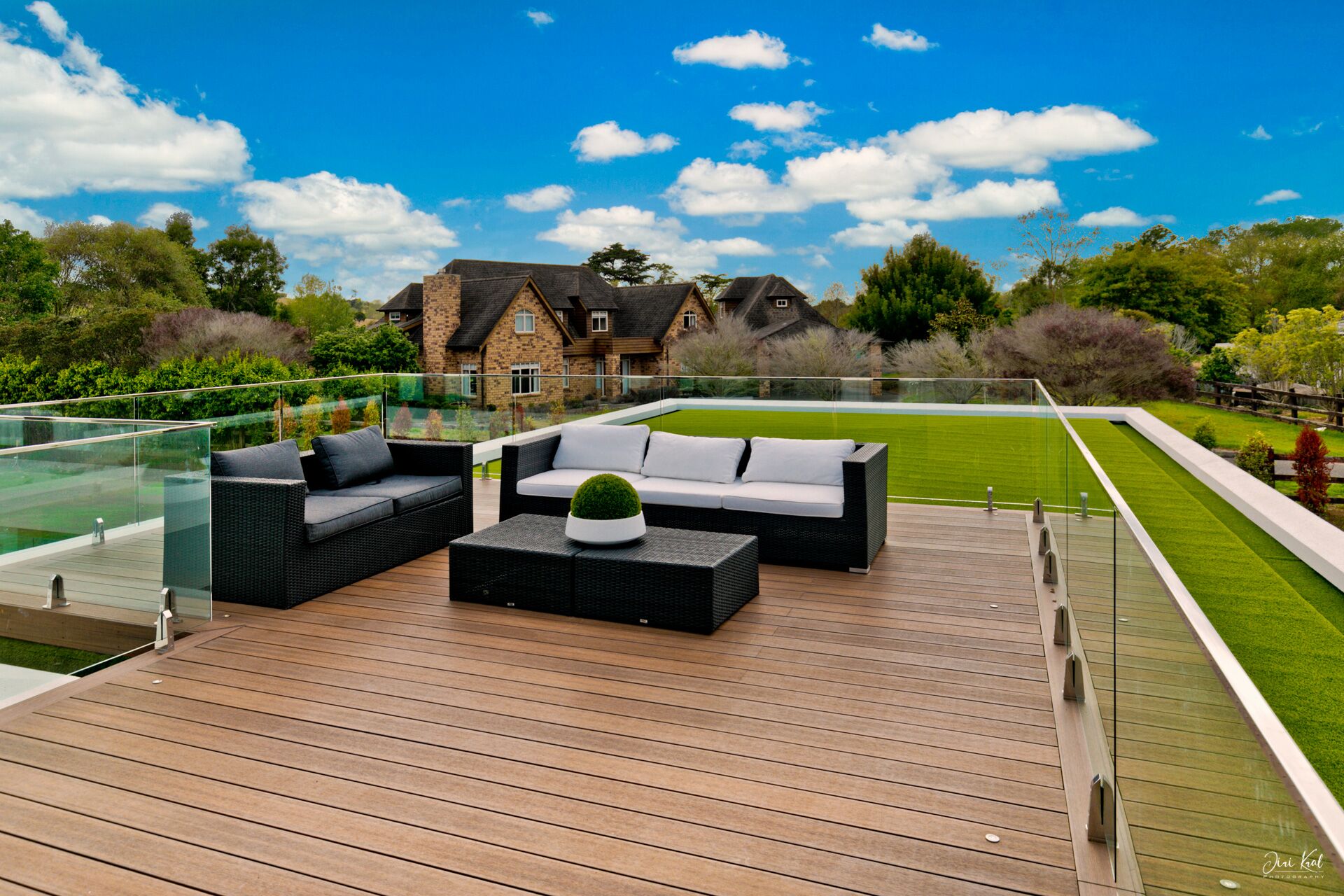 You’ll feel like you’re floating on air ascending the glass-lined stairwell with stylish timber steps. From here, the upstairs level seamlessly flows out onto a rooftop patio where those seeking solitude can soak up the sunshine and take in the views.