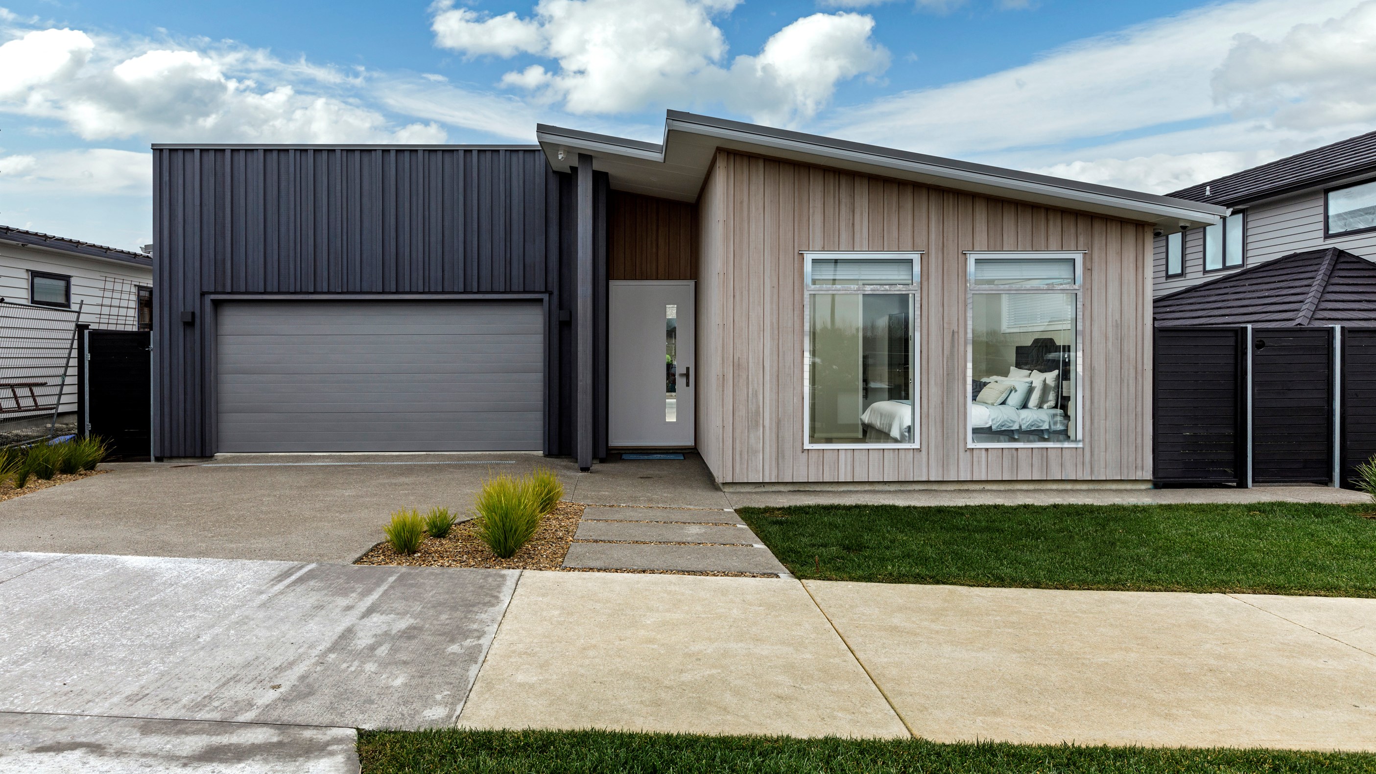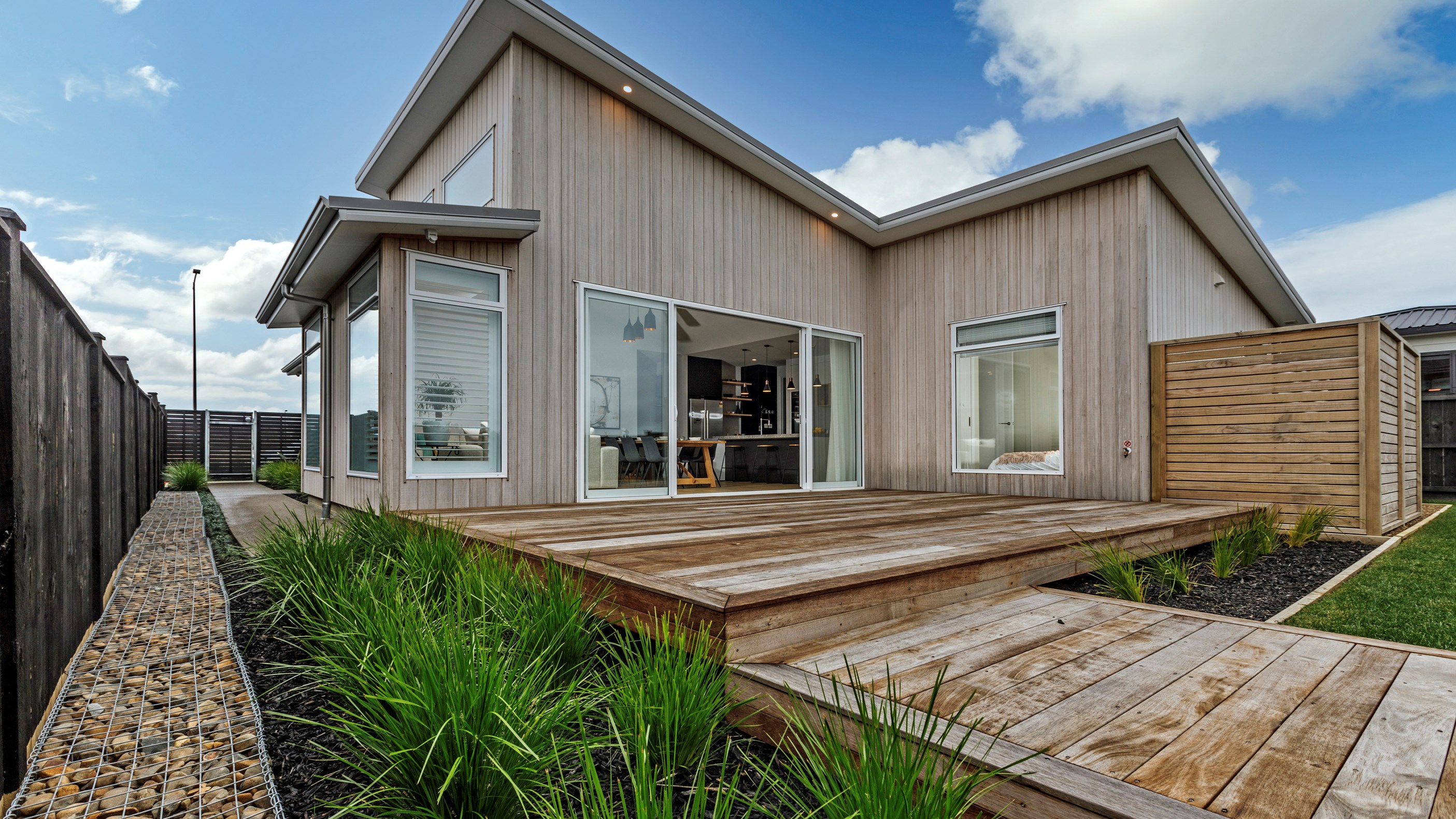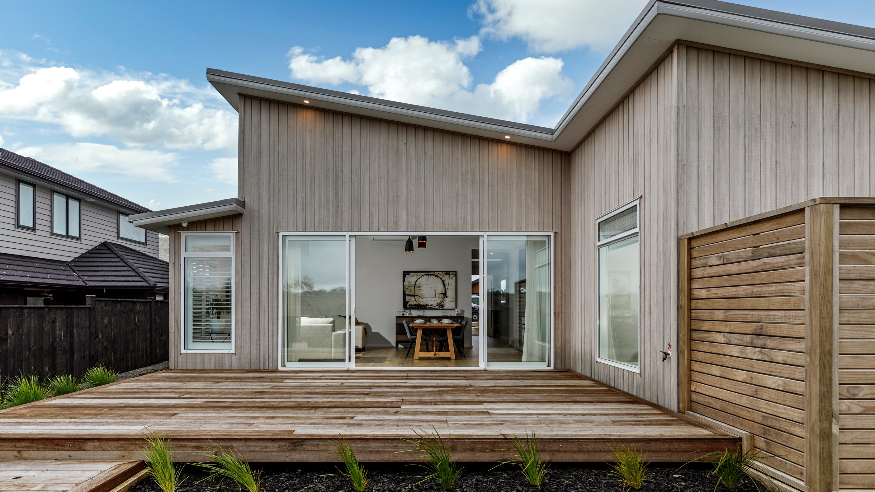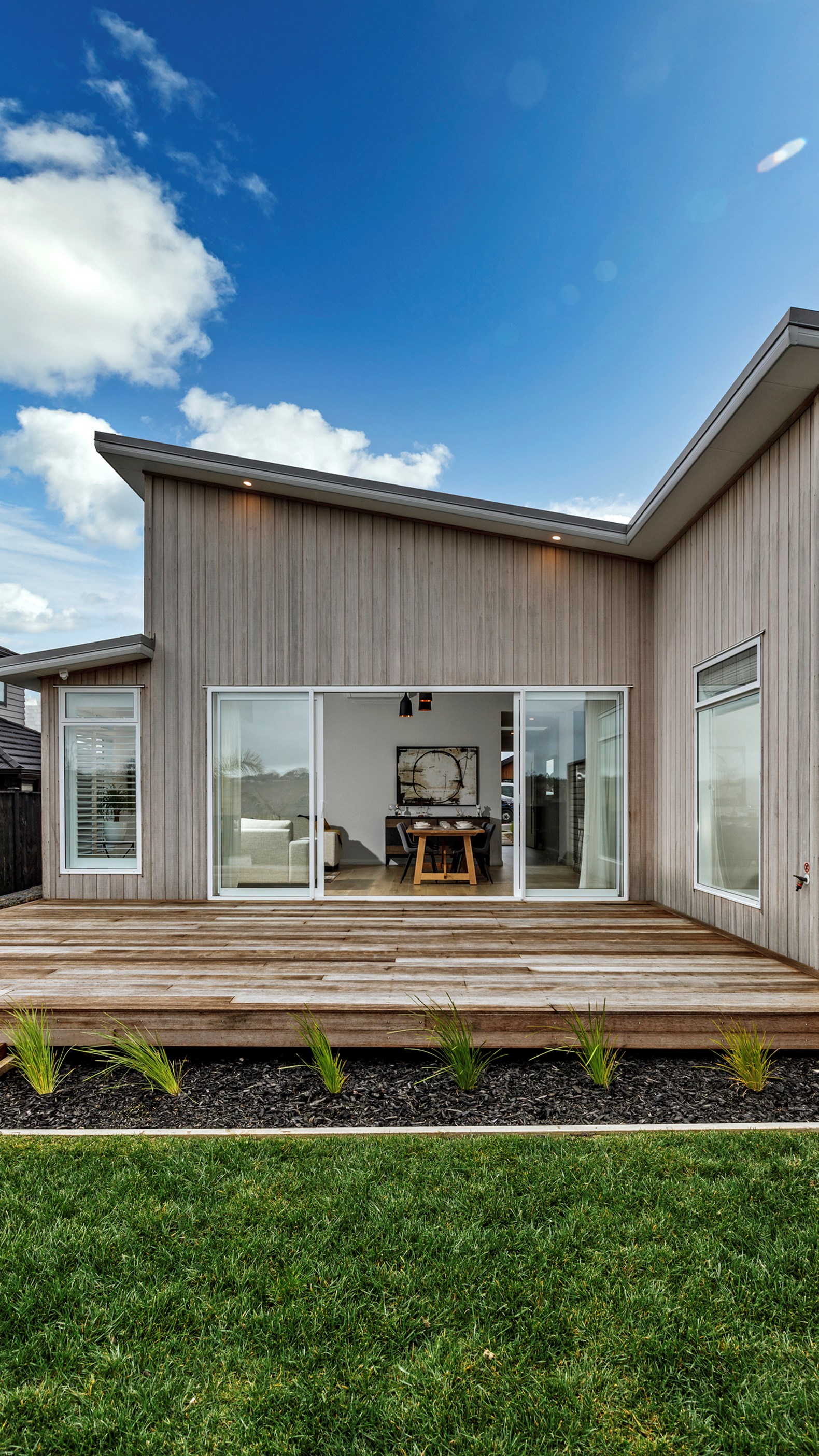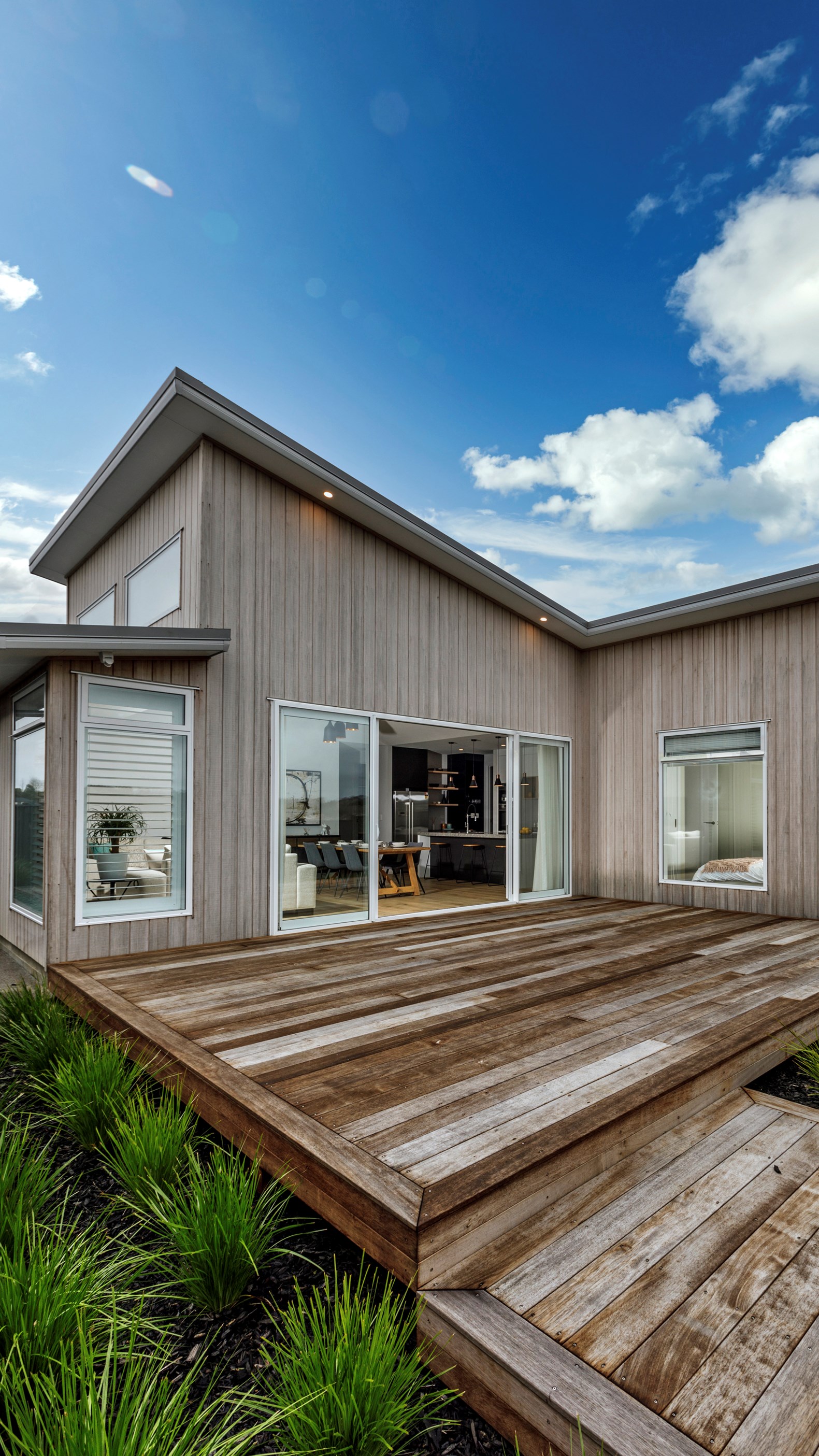 This Auckland home stands out from the crowd. Not only does it have striking street appeal with its weathered Abodo Vulcan cladding and monopitch roofline, it is also a step above the rest once you walk through the front door.
