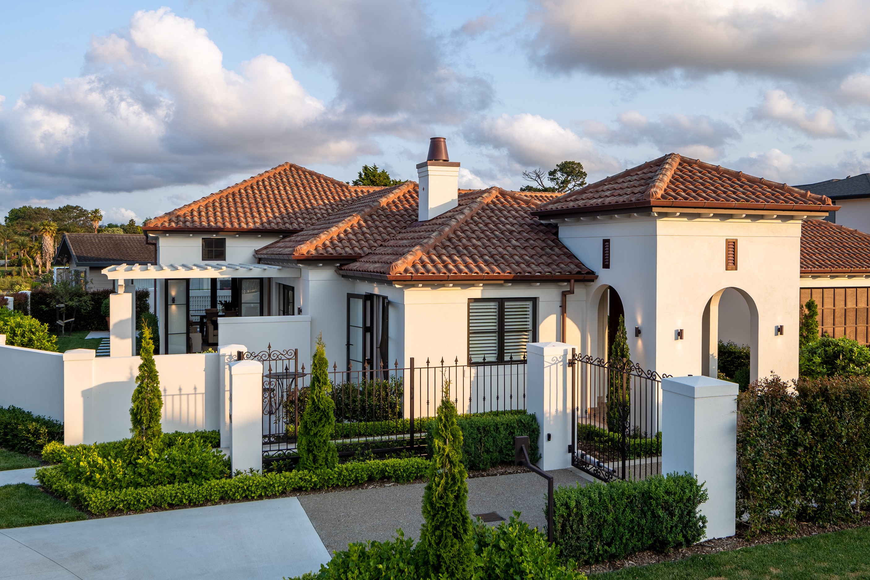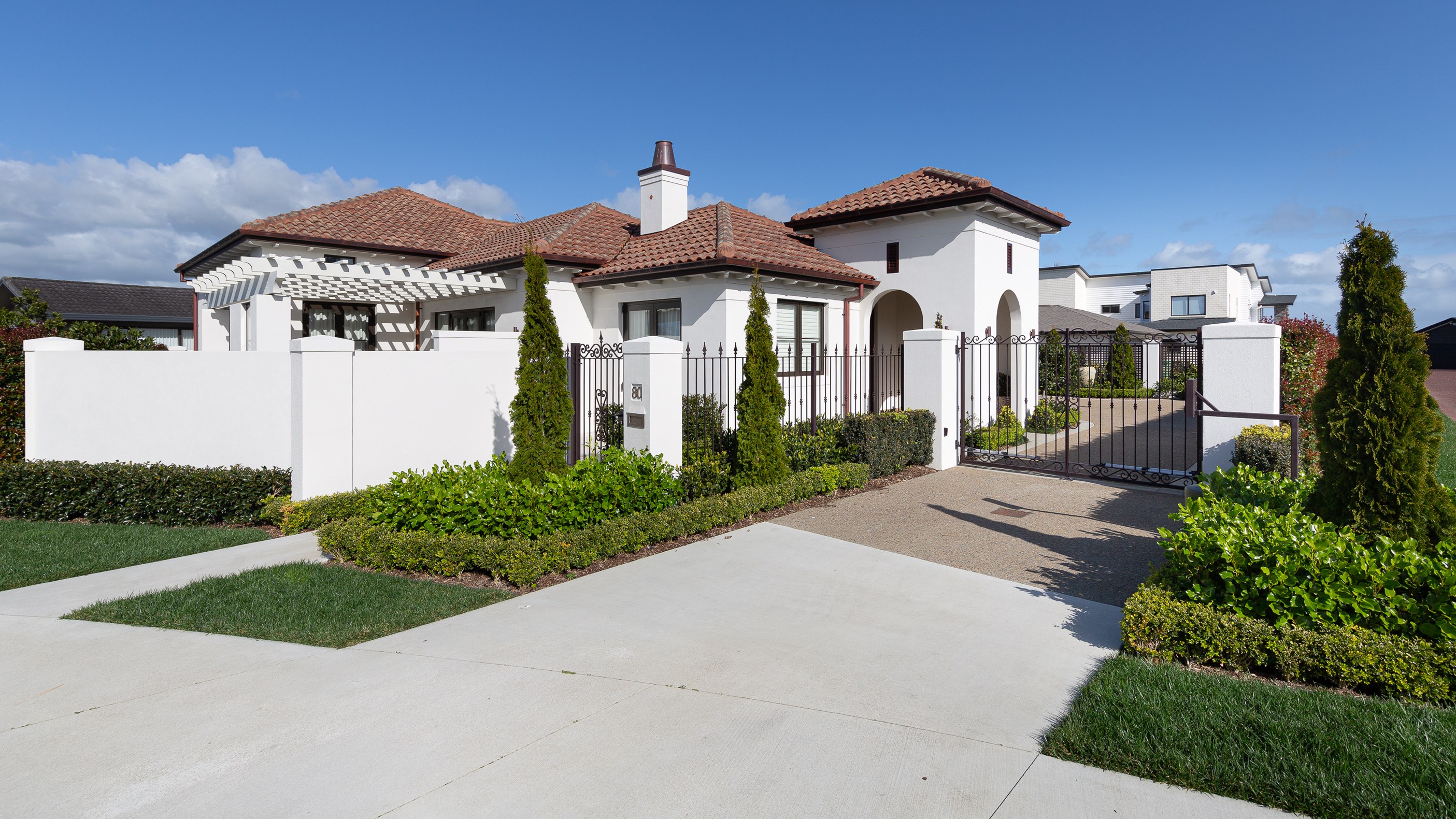 Positioned on a corner site that displays its charms, this Mediterranean-style show home in lavishly landscaped grounds commands immediate attention. With a sun-drenched north-facing aspect, the 275sqm house has been carefully designed to pay homage to traditional Italian villas. You’ll find a towered entry, genuine European clay roof, copper downpipes and solid masonry construction that go together beautifully to enhance the European architectural style of this home.