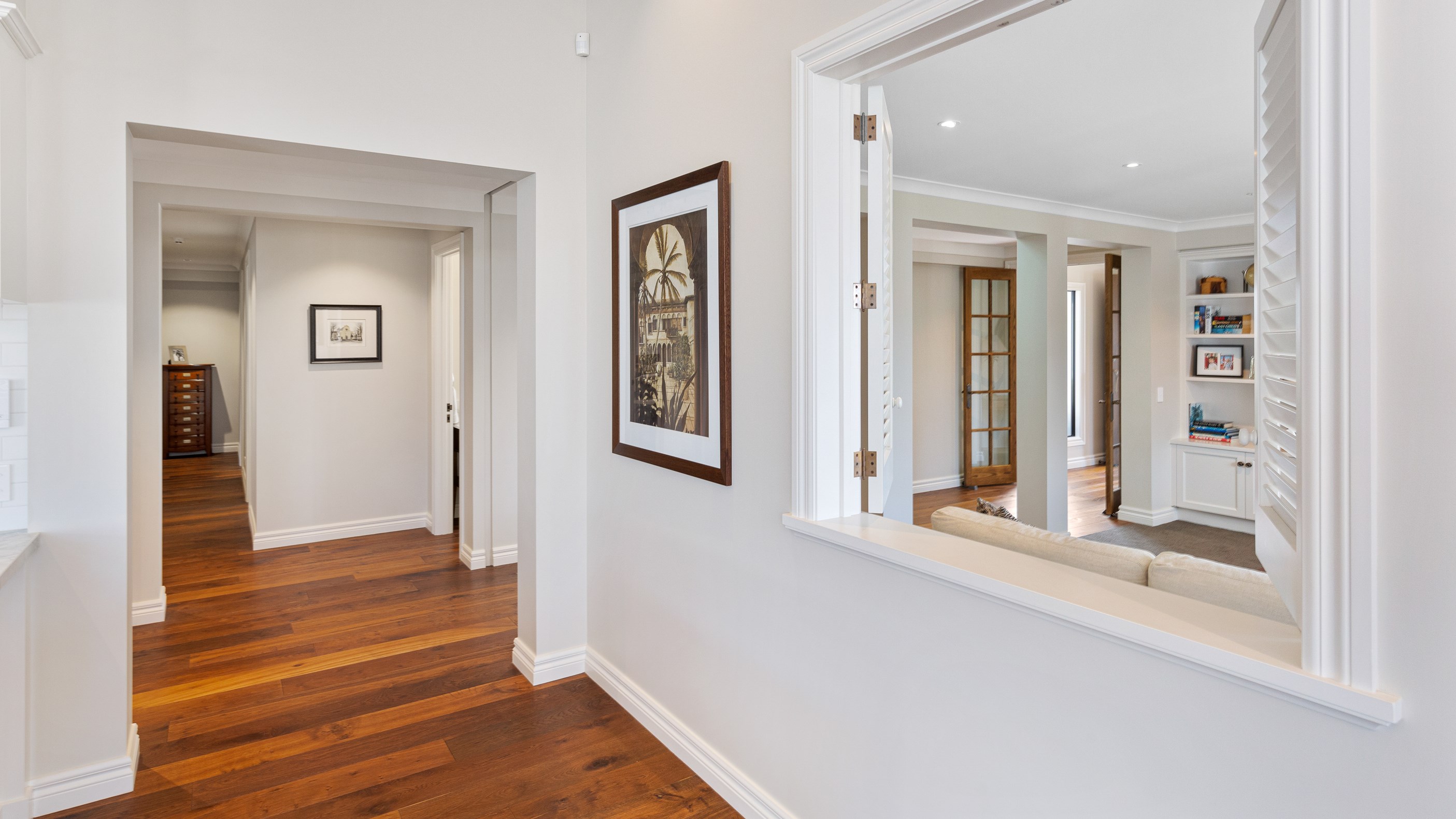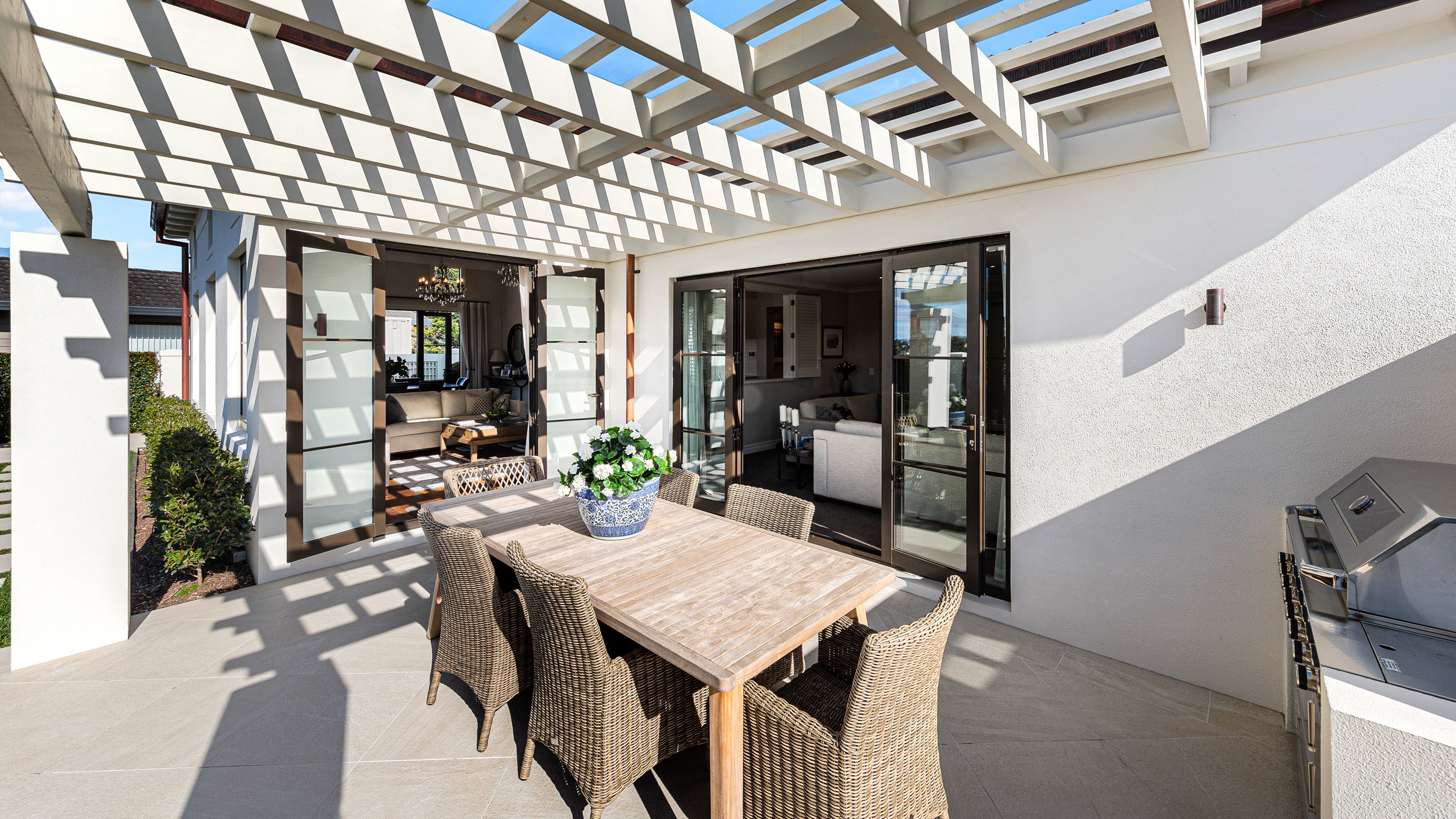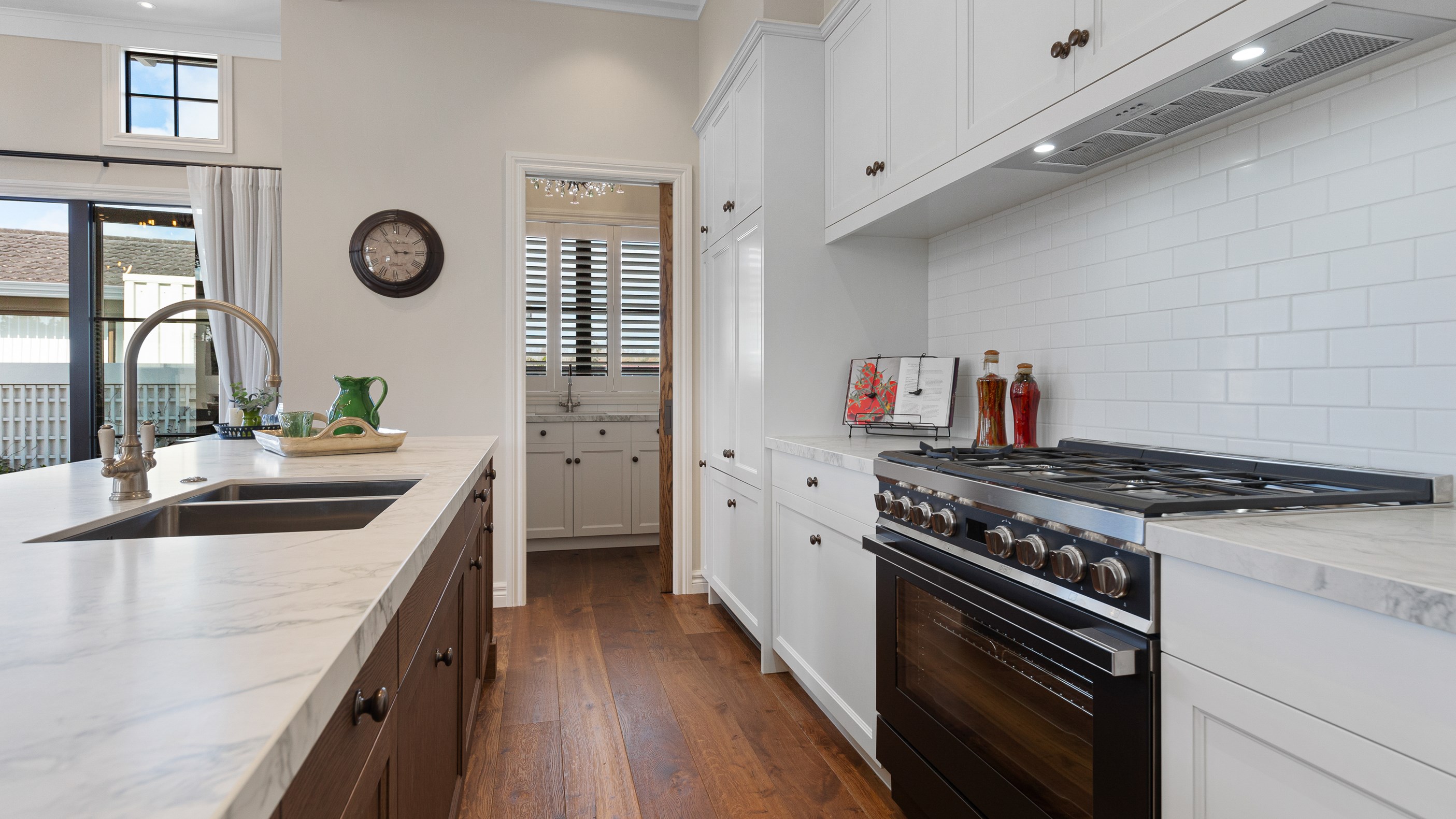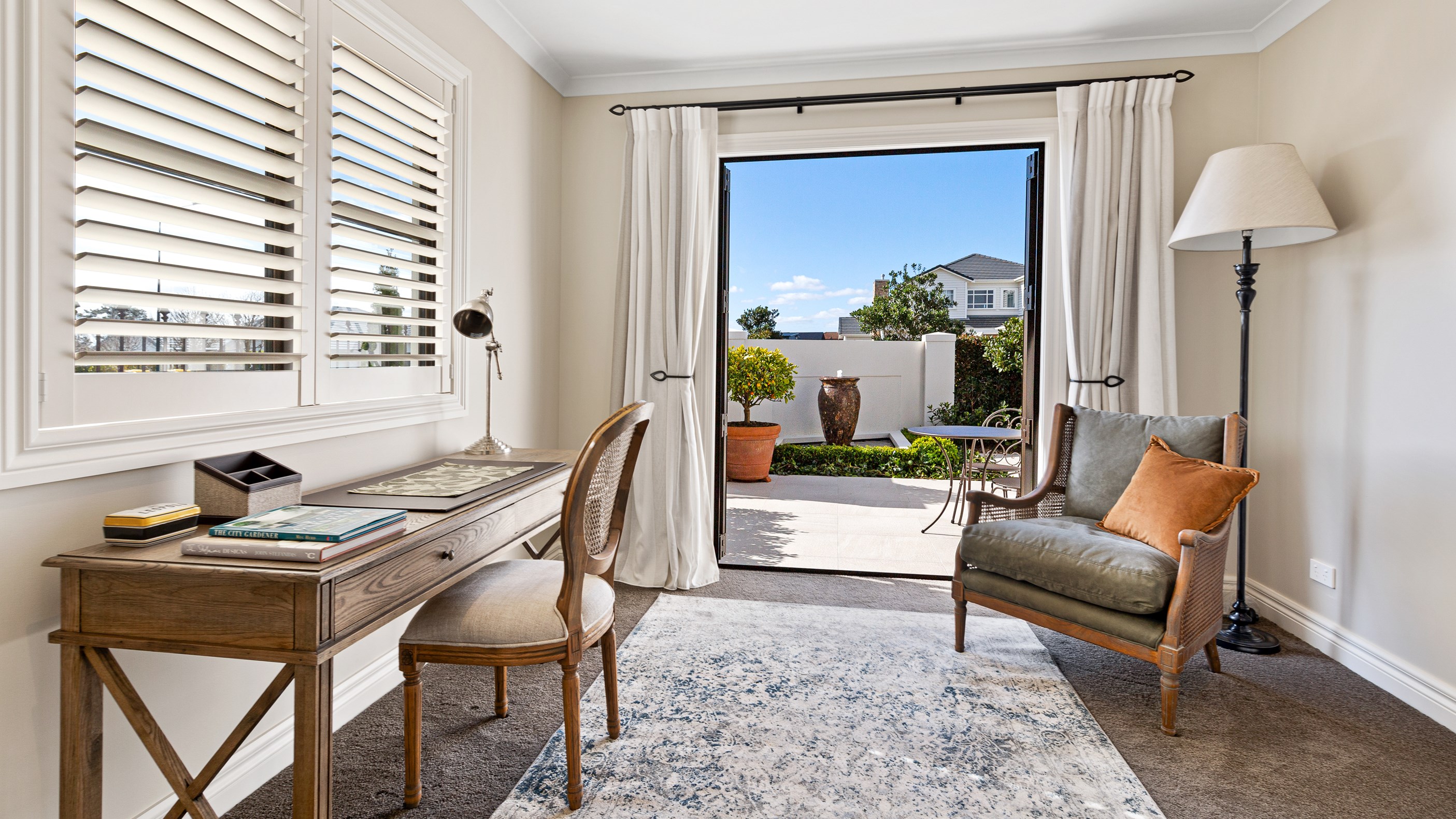 Standout design features inside the four-bedroom home include a hand-crafted ceiling window with a skylight in a gallery foyer, oak floors, hand-crafted Italian-style doors and pocket sliding doors, an over- height entry door and warm water in-floor heating. Among the interior design highlights are four glittering chandeliers, bespoke cabinetry, stone benchtops and a feature fireplace. In true Mediterranean villa style, outdoor spaces consist of multiple courtyard living spaces and include a water feature, specimen trees and topiary. A custom-built barbecue ensures easy living, indoors and out.