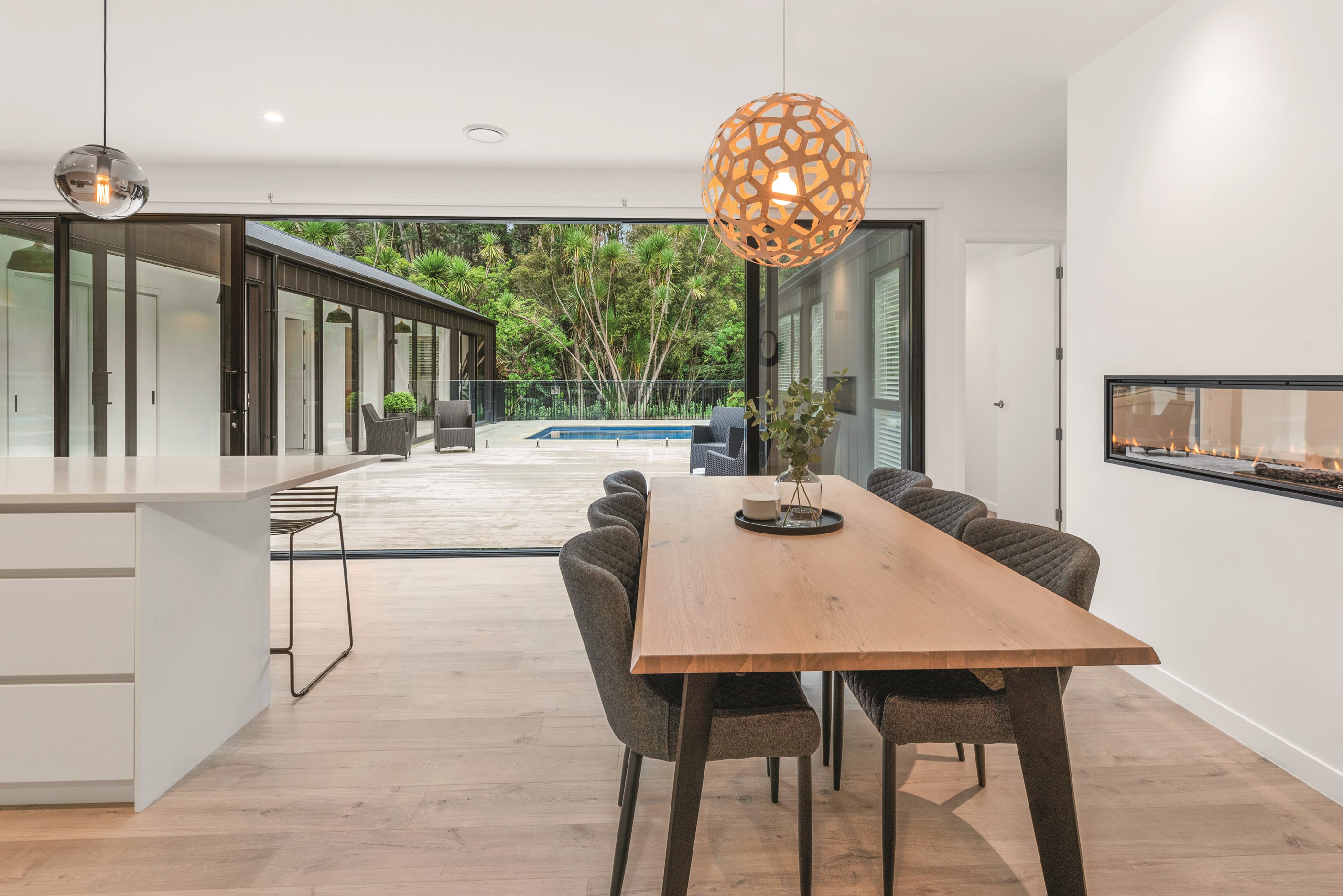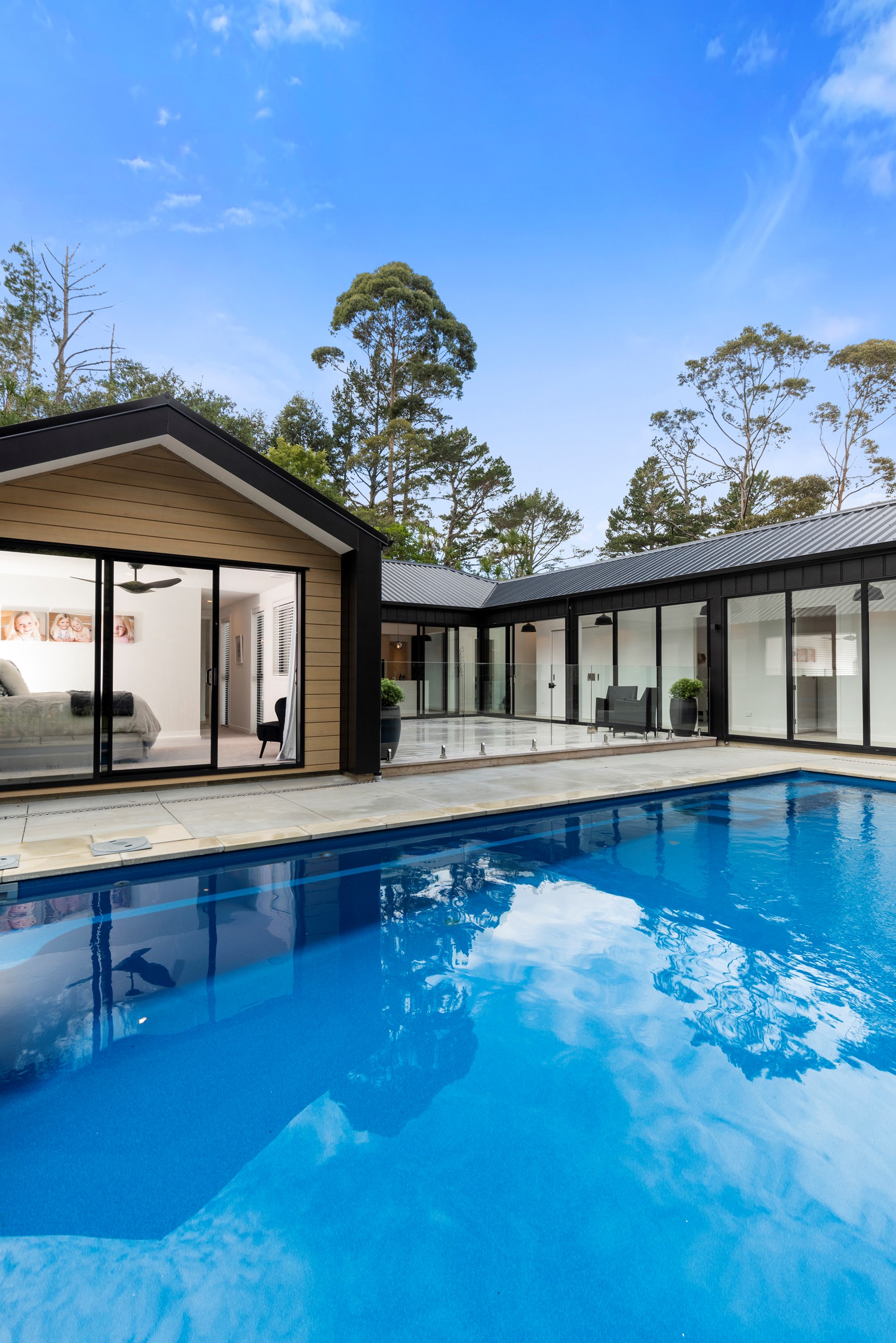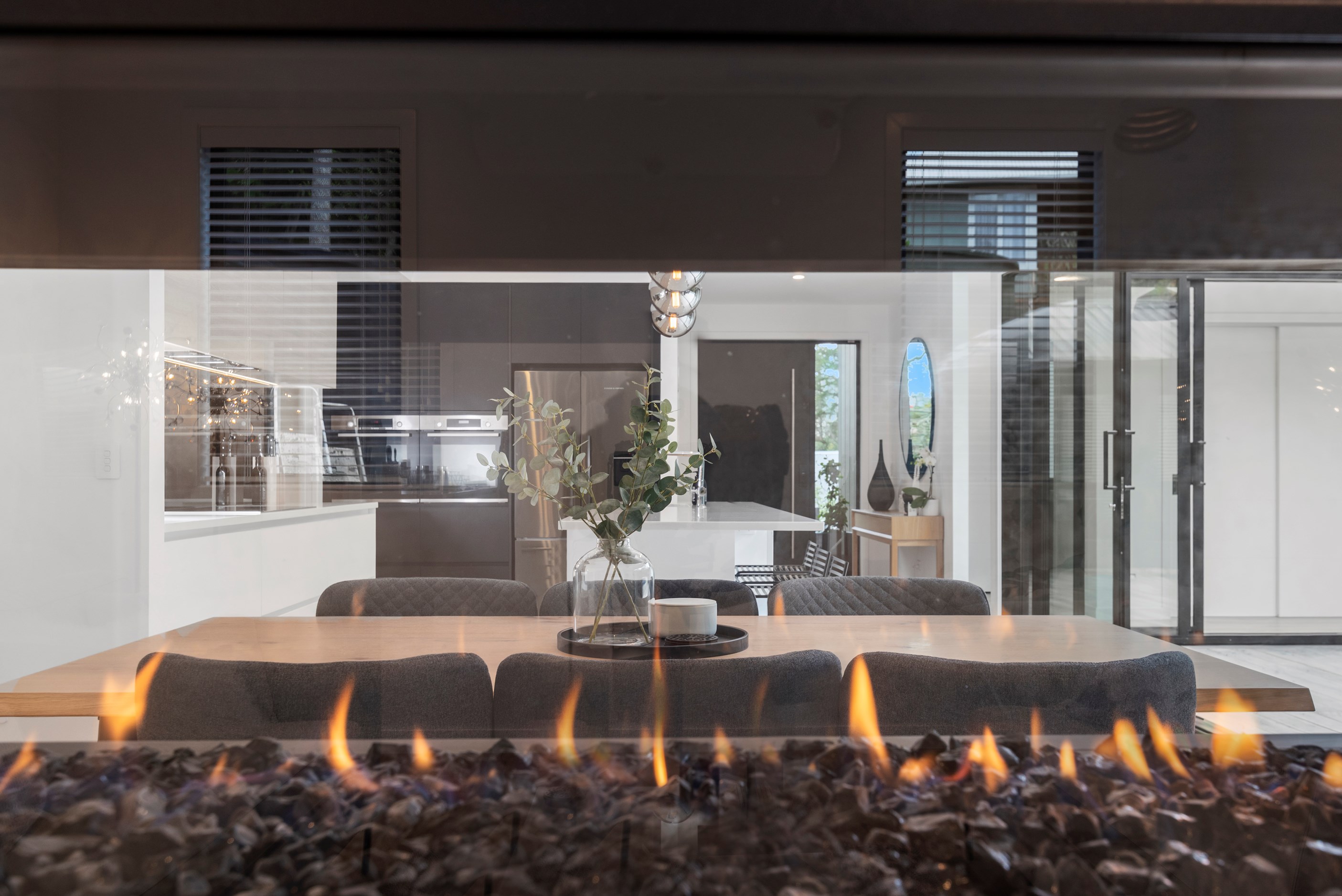 This prestigious new build is tucked away in native bushland – creating the ultimate private retreat. It has a defined family wing and separate main suite, and at the centre of the dwelling is a generous kitchen, scullery and laundry that leads to the internal garage. A two-way fire is a significant feature in the home, separating the dining from the living, while two more areas provide lots of space for the family to gather in.