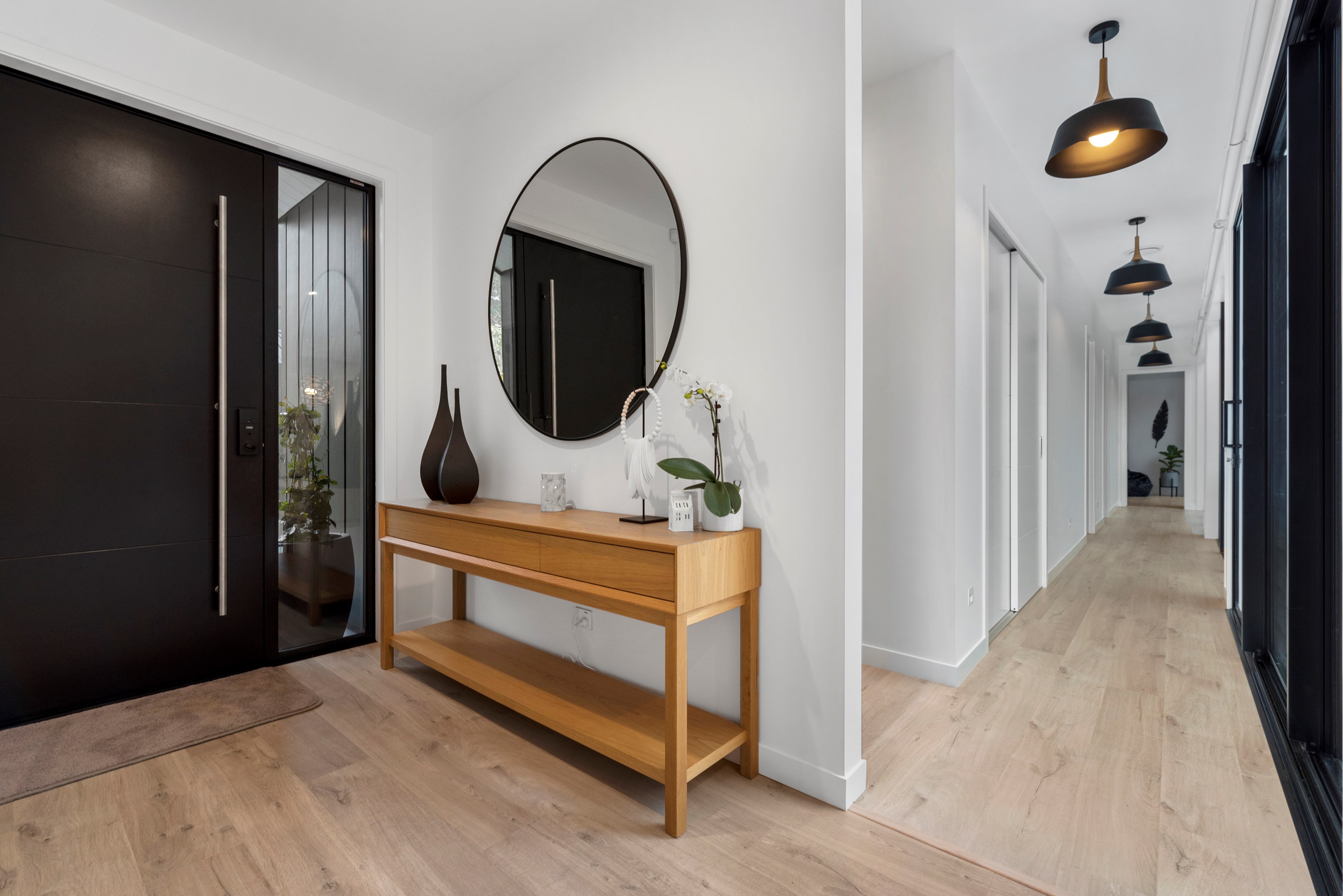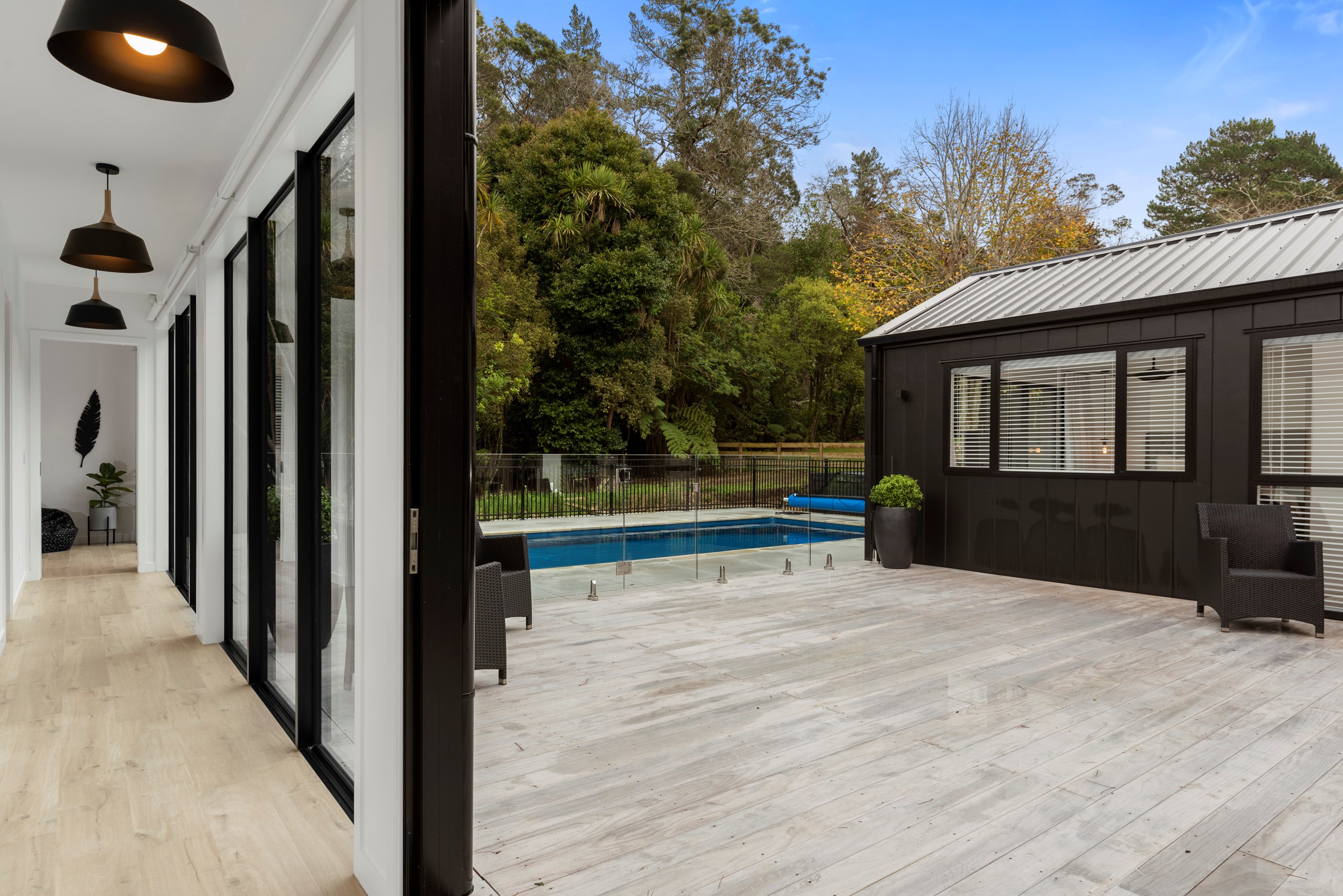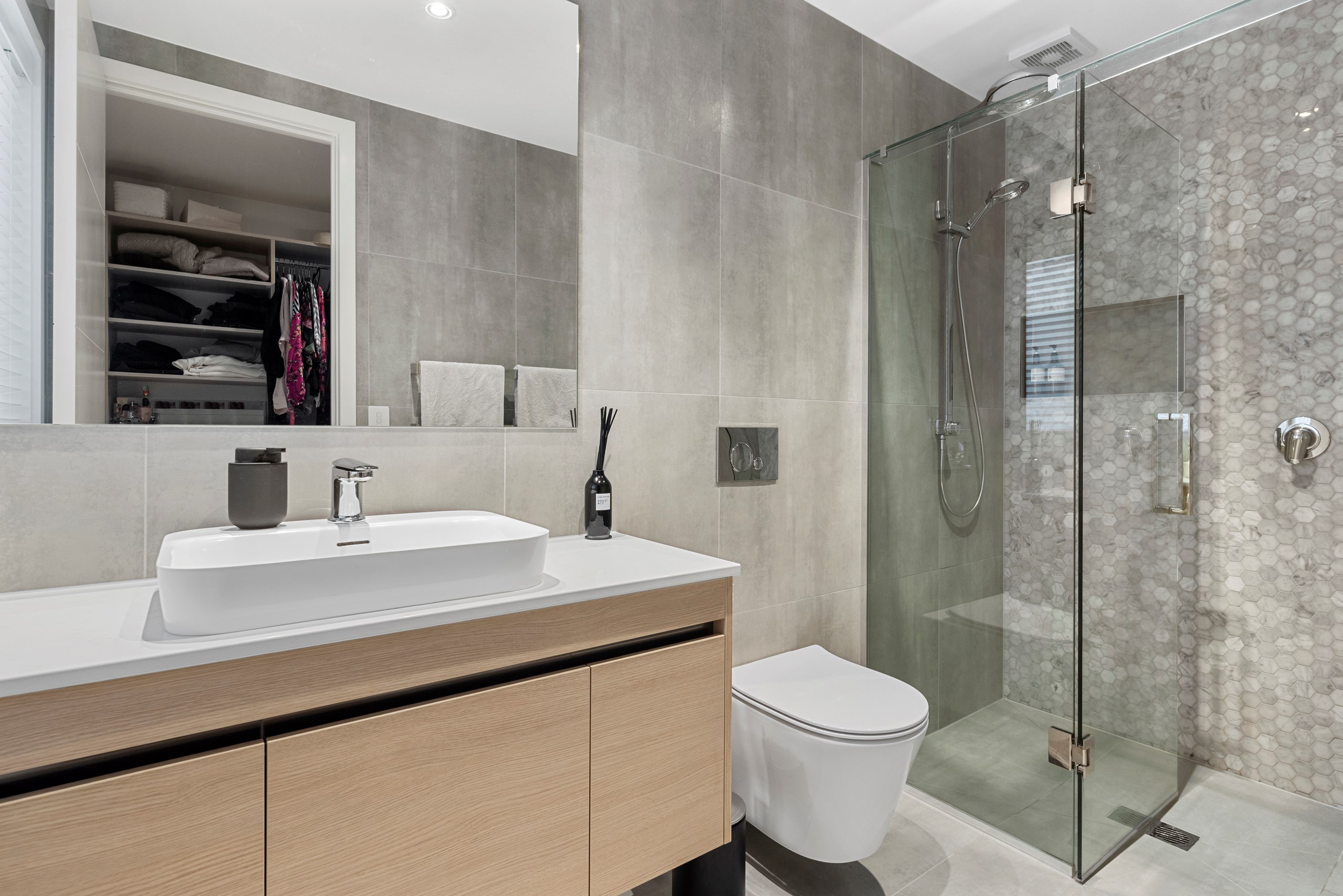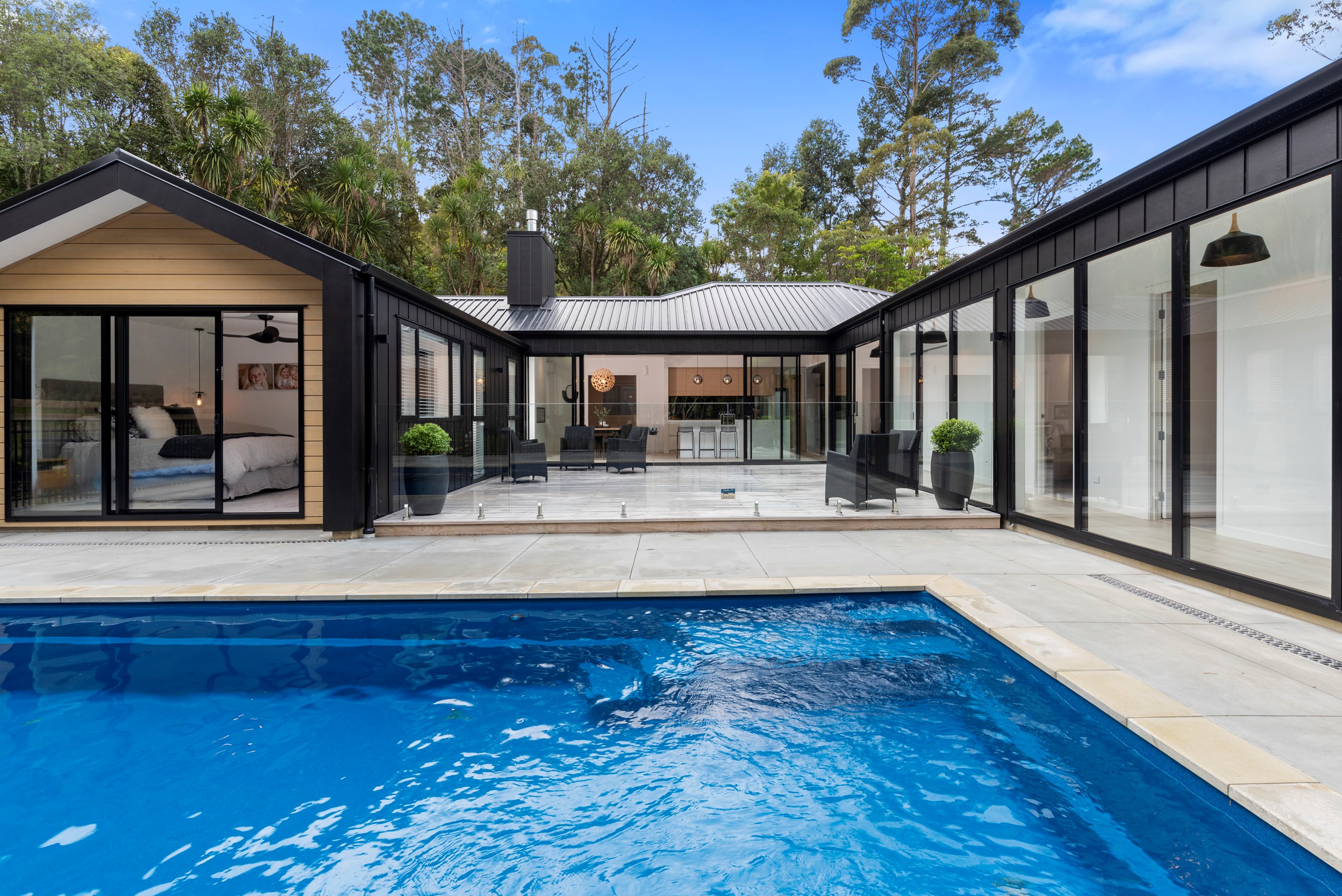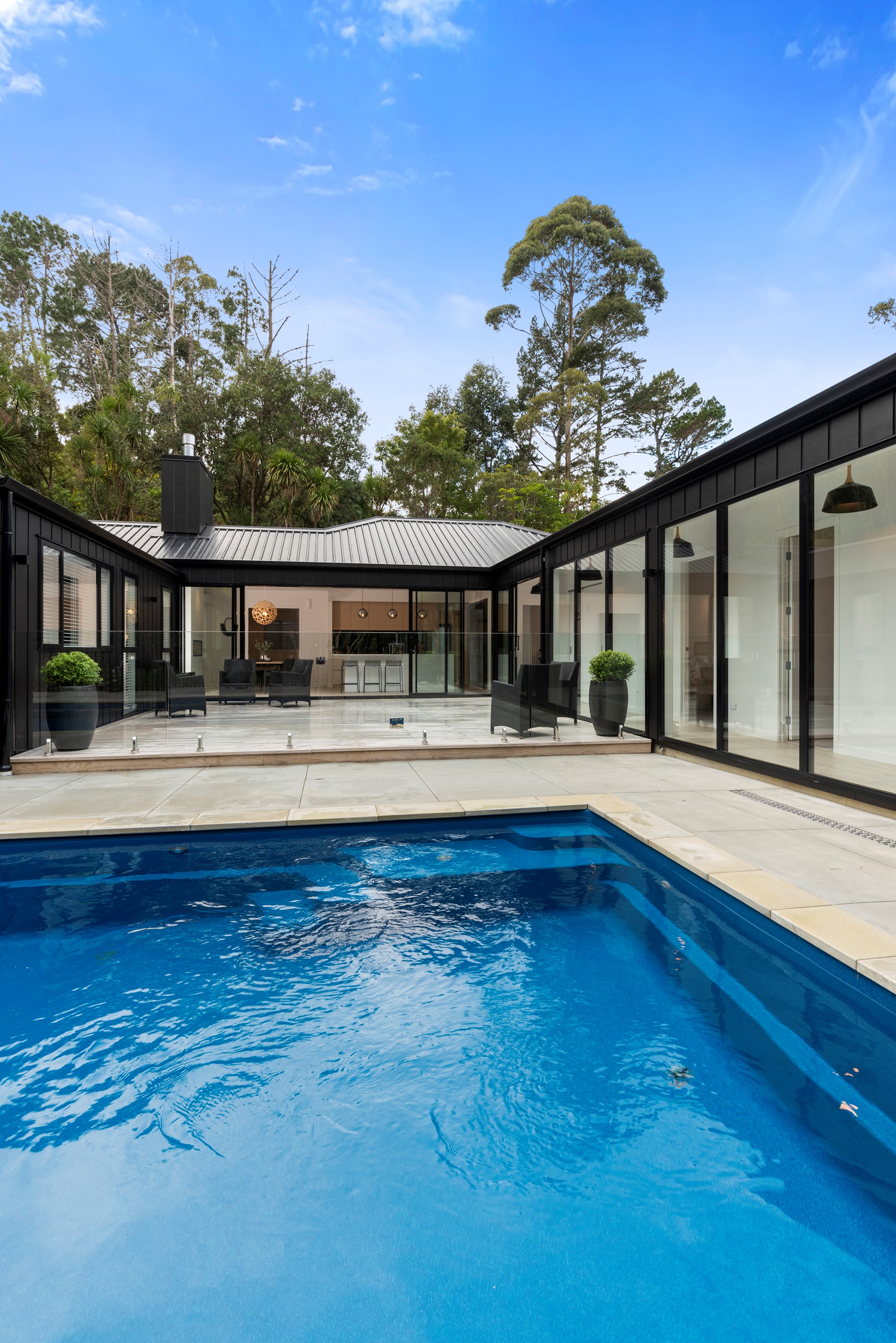 All fixtures and fittings have been chosen with real thought, and this shows in the quality of the end product. The kitchen features a stone island bench with built-in breakfast bar. A mirrored splashback adds a touch of luxe, and ties in well with the pendant lighting. Concrete-look tiling in the bathrooms complement the timber vanities and white benchtops. The home cleverly wraps around the pool and patio, making a staycation all the more appealing this summer. This area connects beautifully with the interior via sliding doors in the kitchen/dining area, hallway, main bedroom and second family room. This flawless home takes family life to the next level.