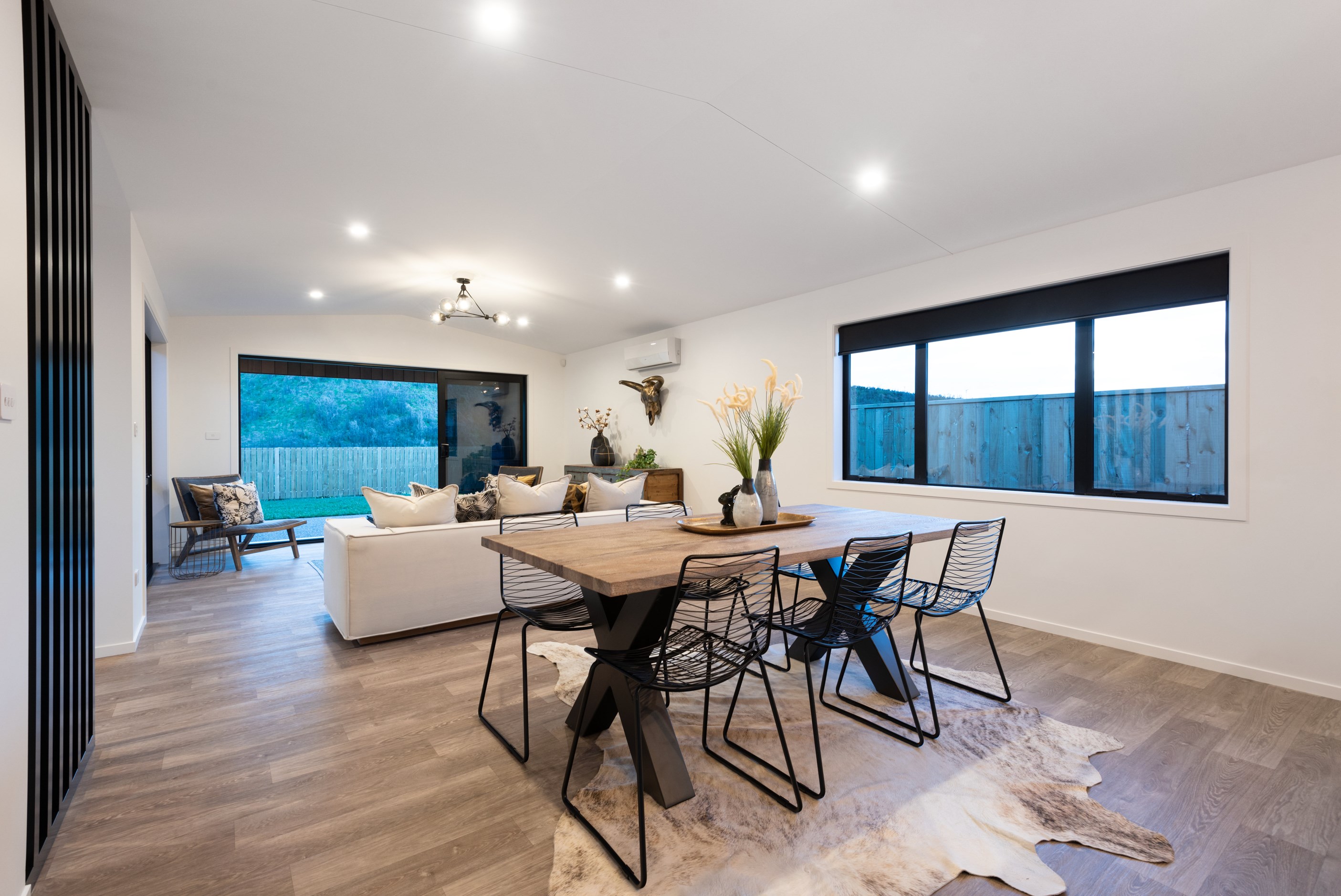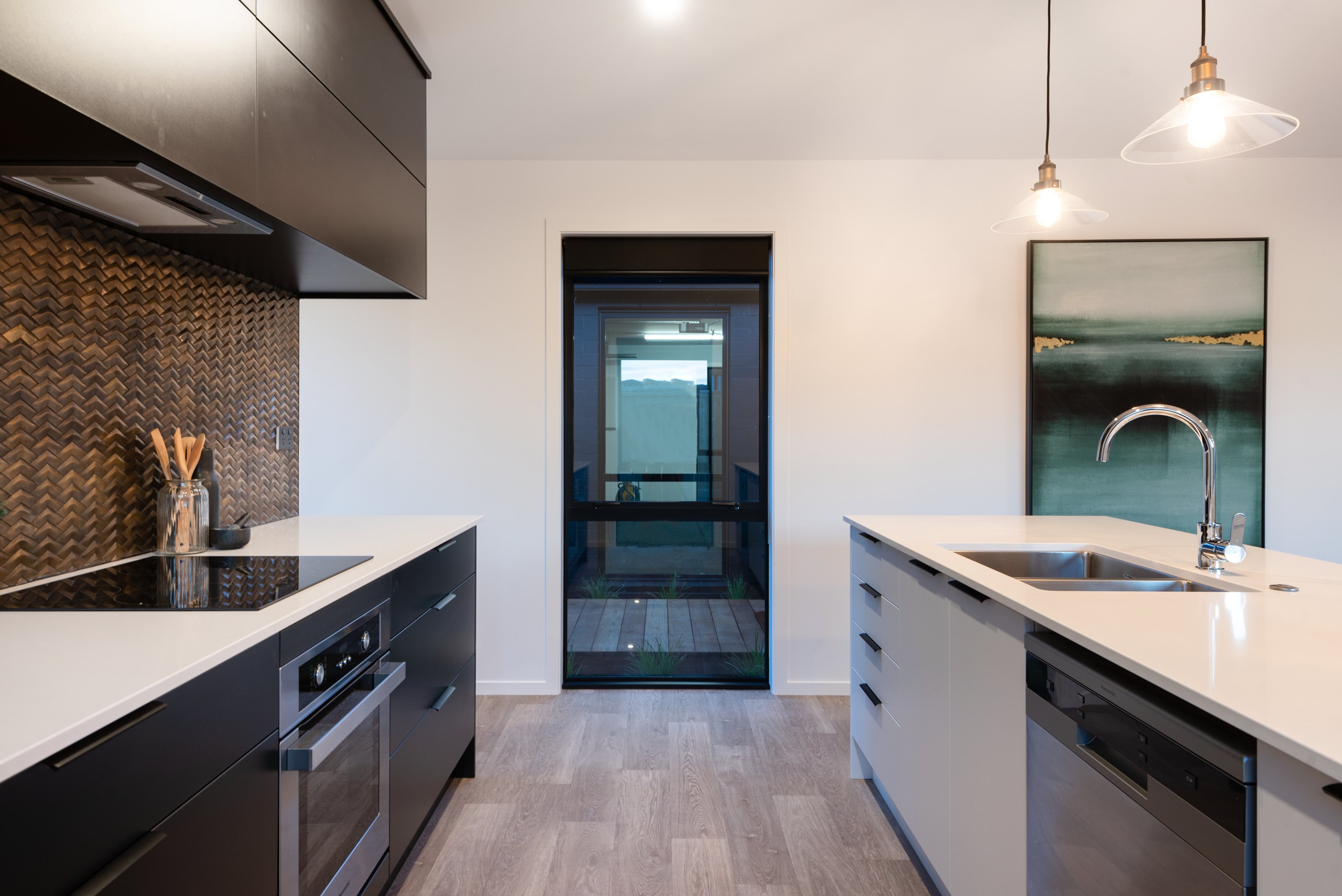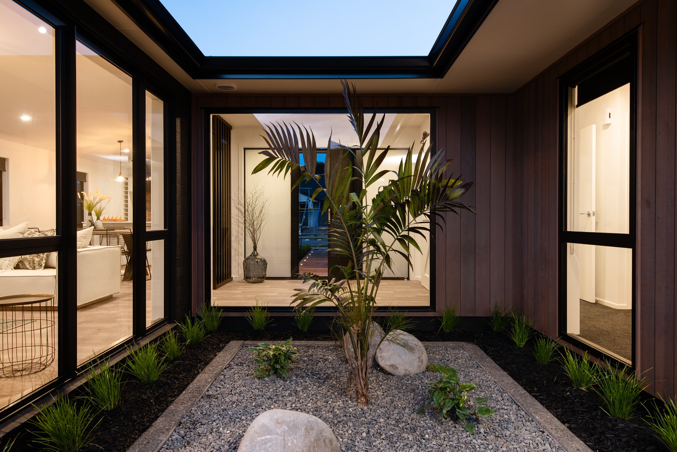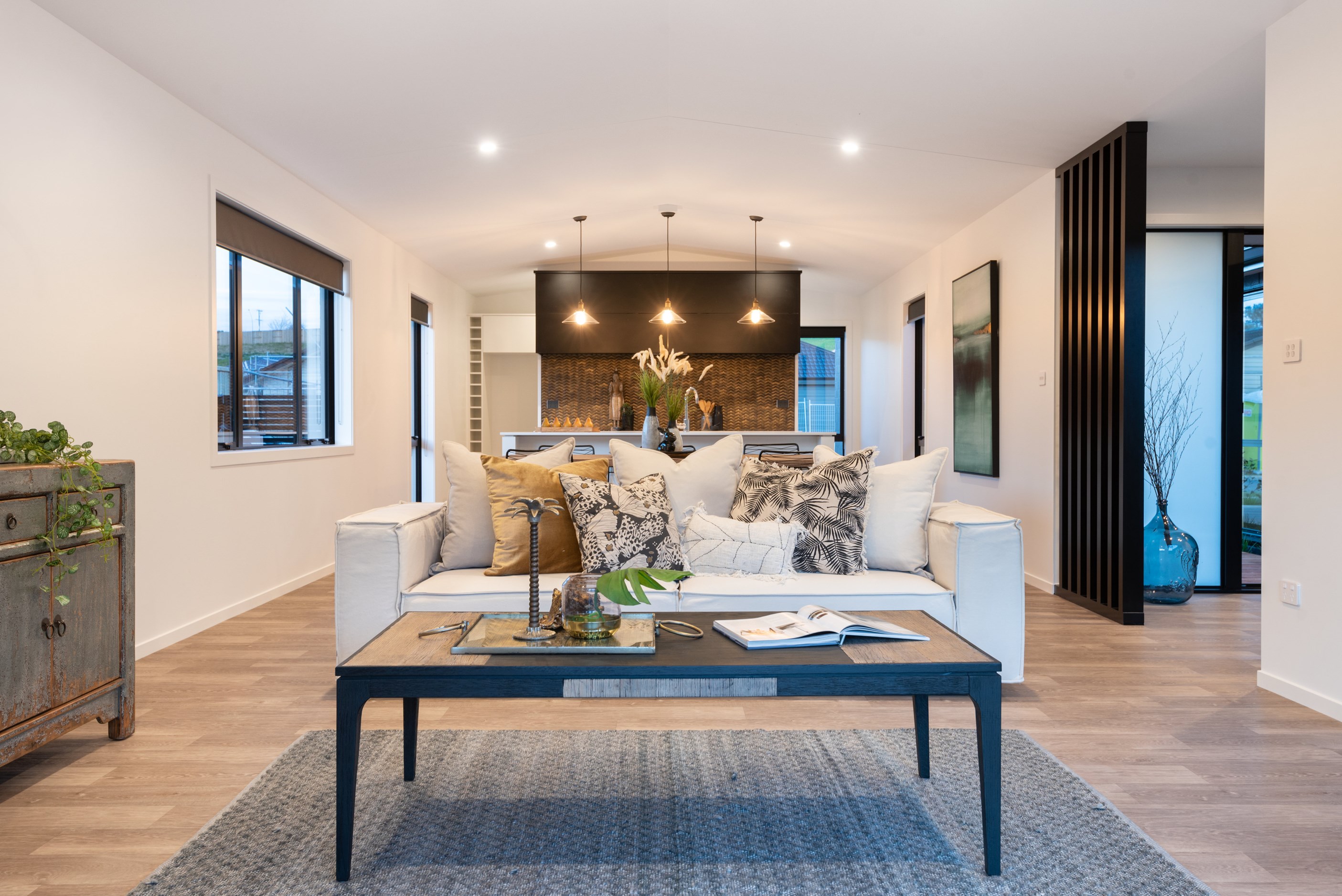The sleek symmetry of the ‘Whakaturou’ house will catch your eye as soon as you enter the property. A combination of vertical cedar cladding, black Colorsteel roofing and elegant landscaping creates flawless street appeal.