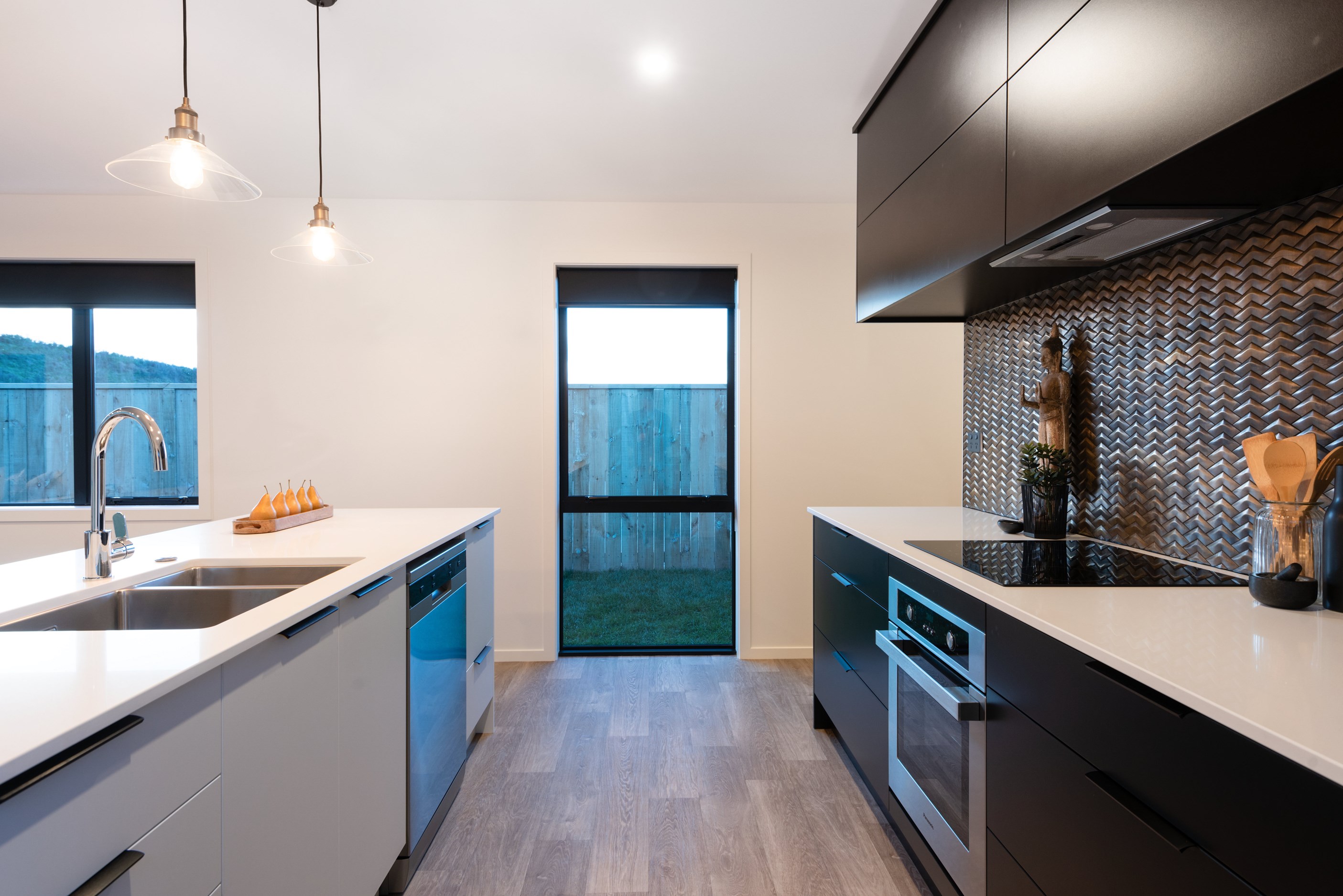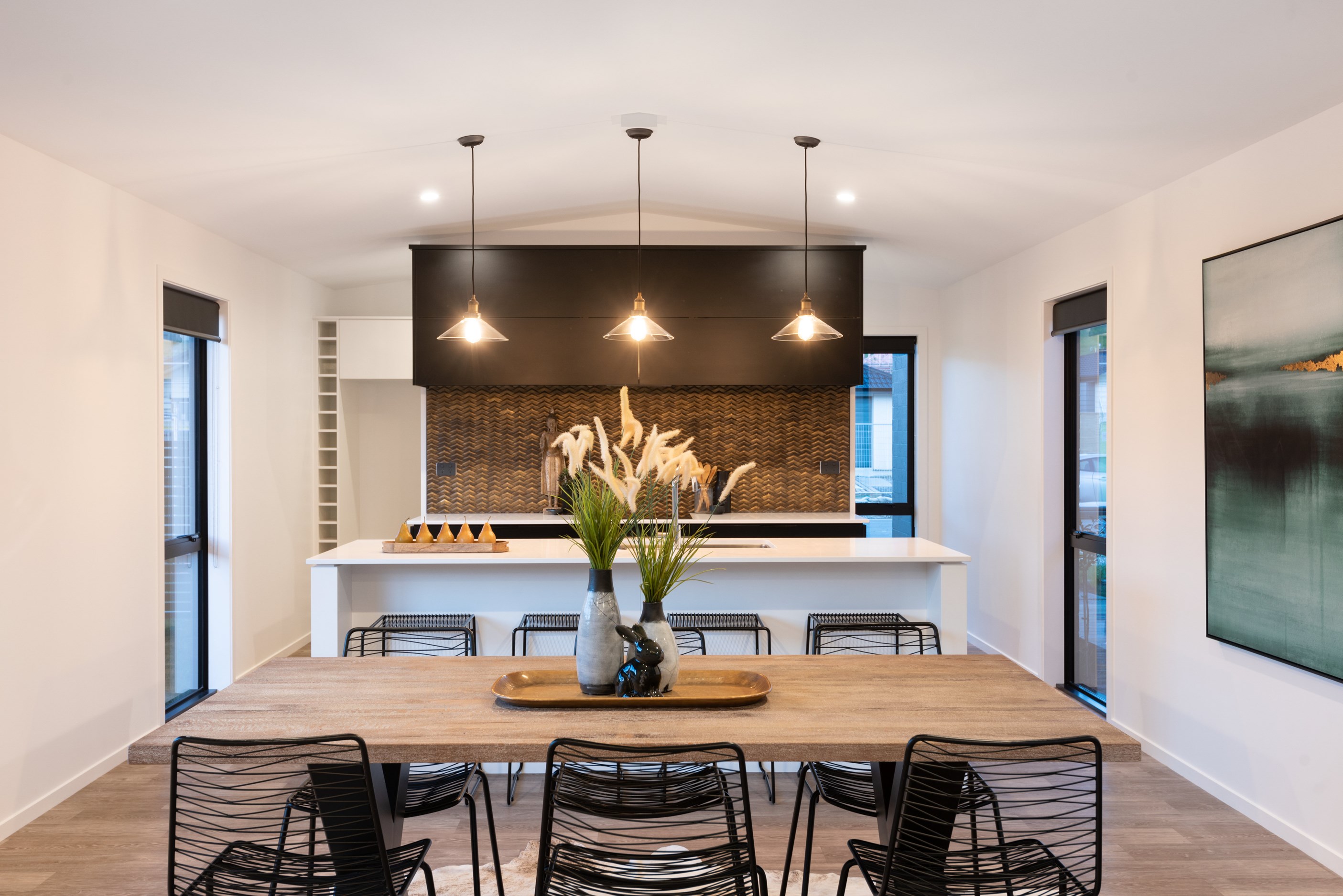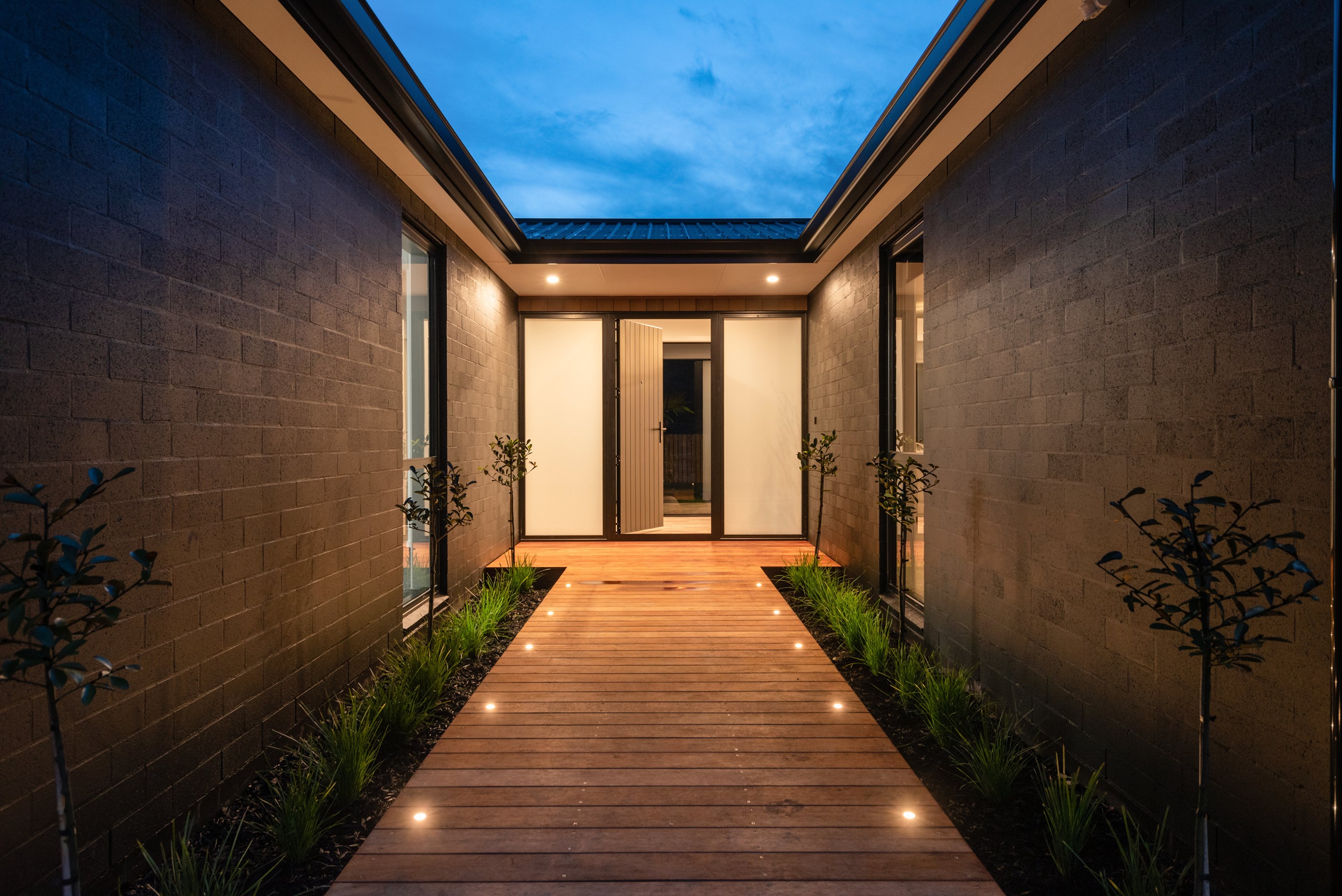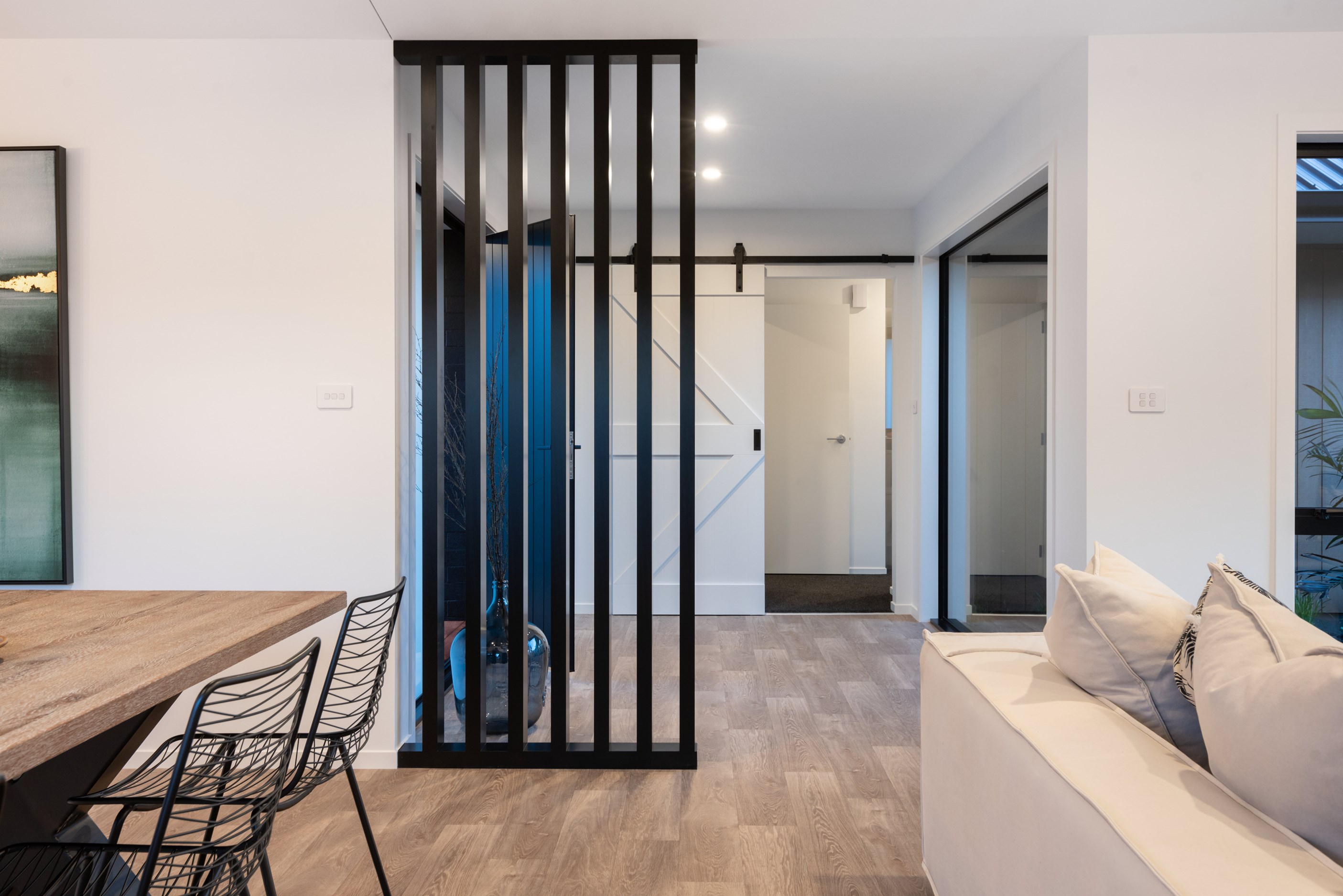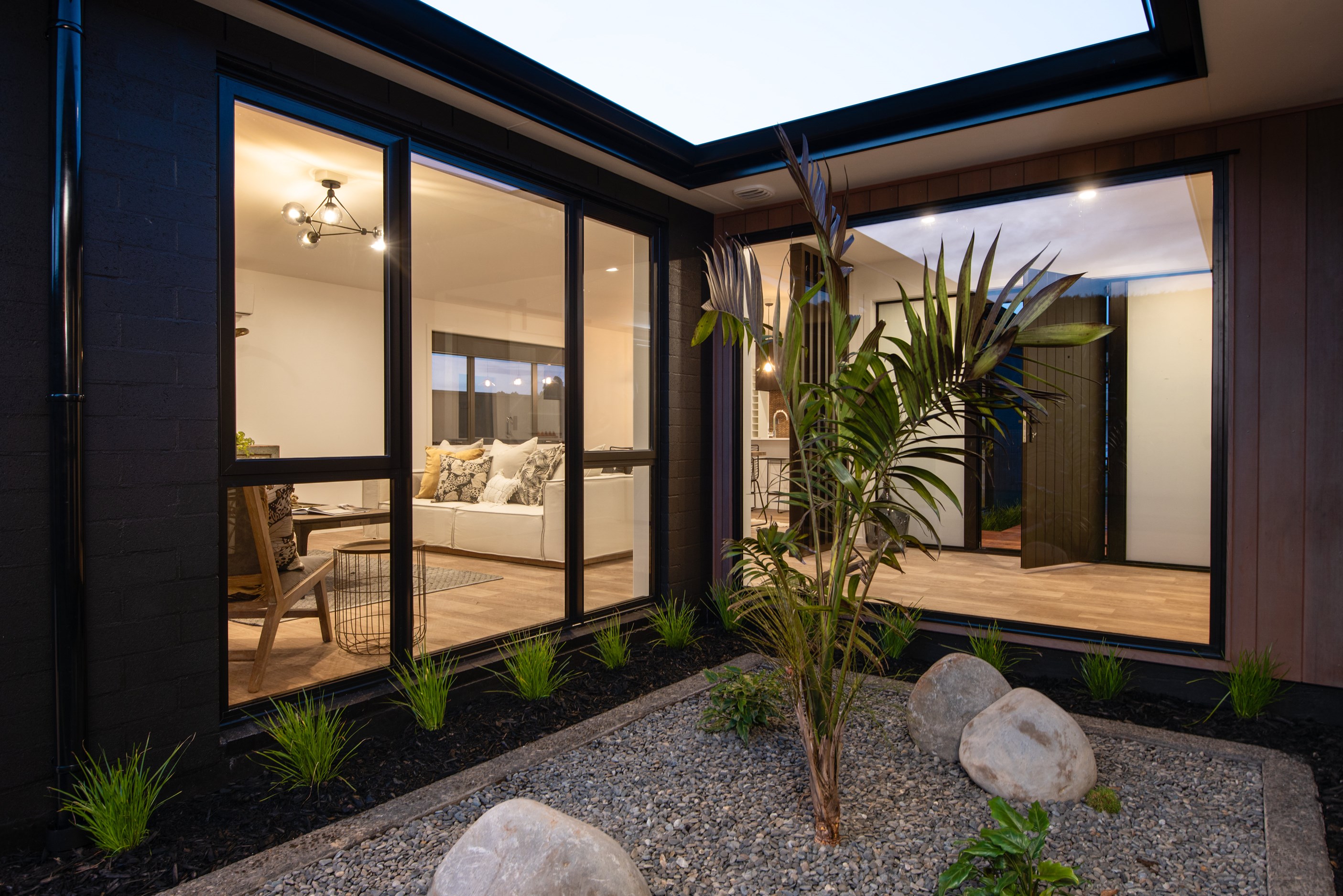 The sleek symmetry of the ‘Whakaturou’ house will catch your eye as soon as you enter the property. A combination of vertical cedar cladding, black Colorsteel roofing and elegant landscaping creates flawless street appeal.