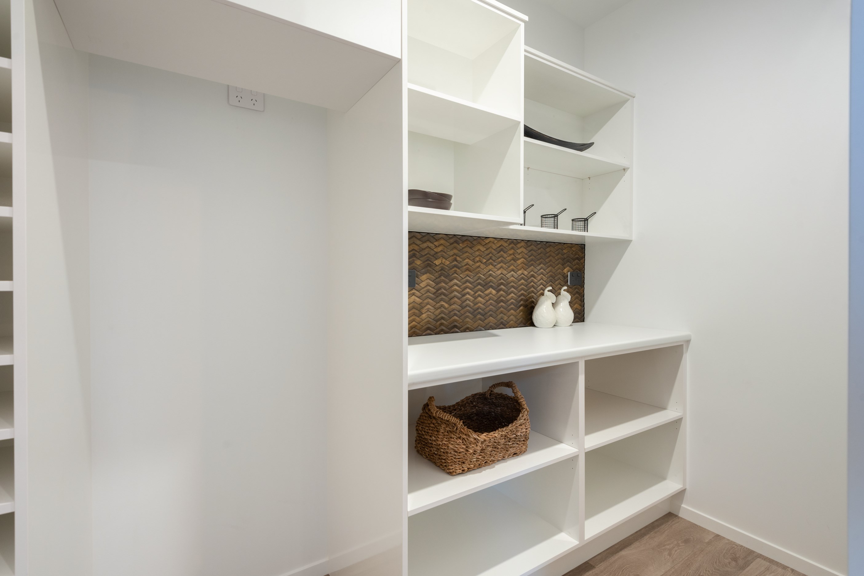 A formal entry connects to each wing. The kitchen is built for socialising and has generous stone benchtops, dark cabinetry and a feature tiled splashback. This entertainer’s space is also part of a relaxed open-plan living and dining area. Messes can easily be tucked away in the scullery.