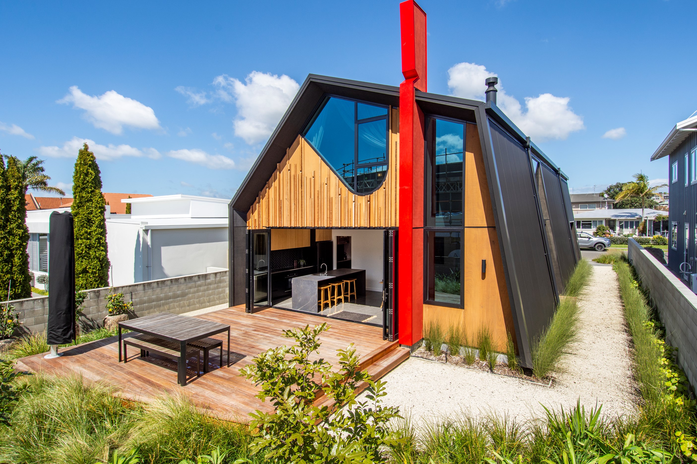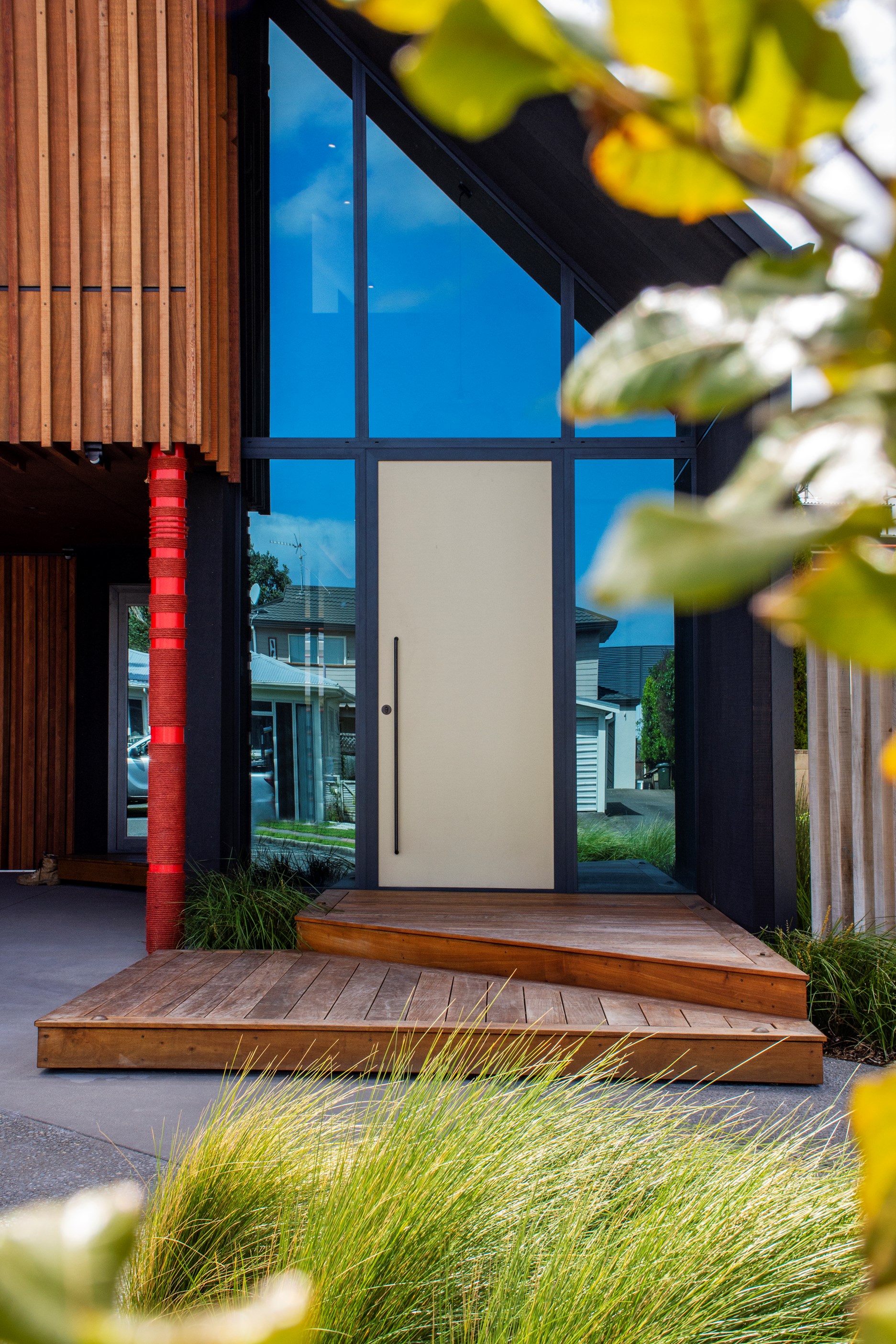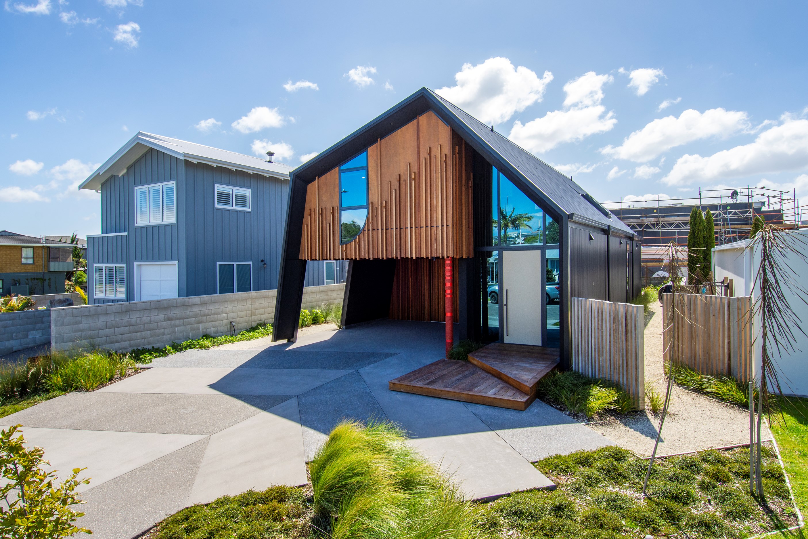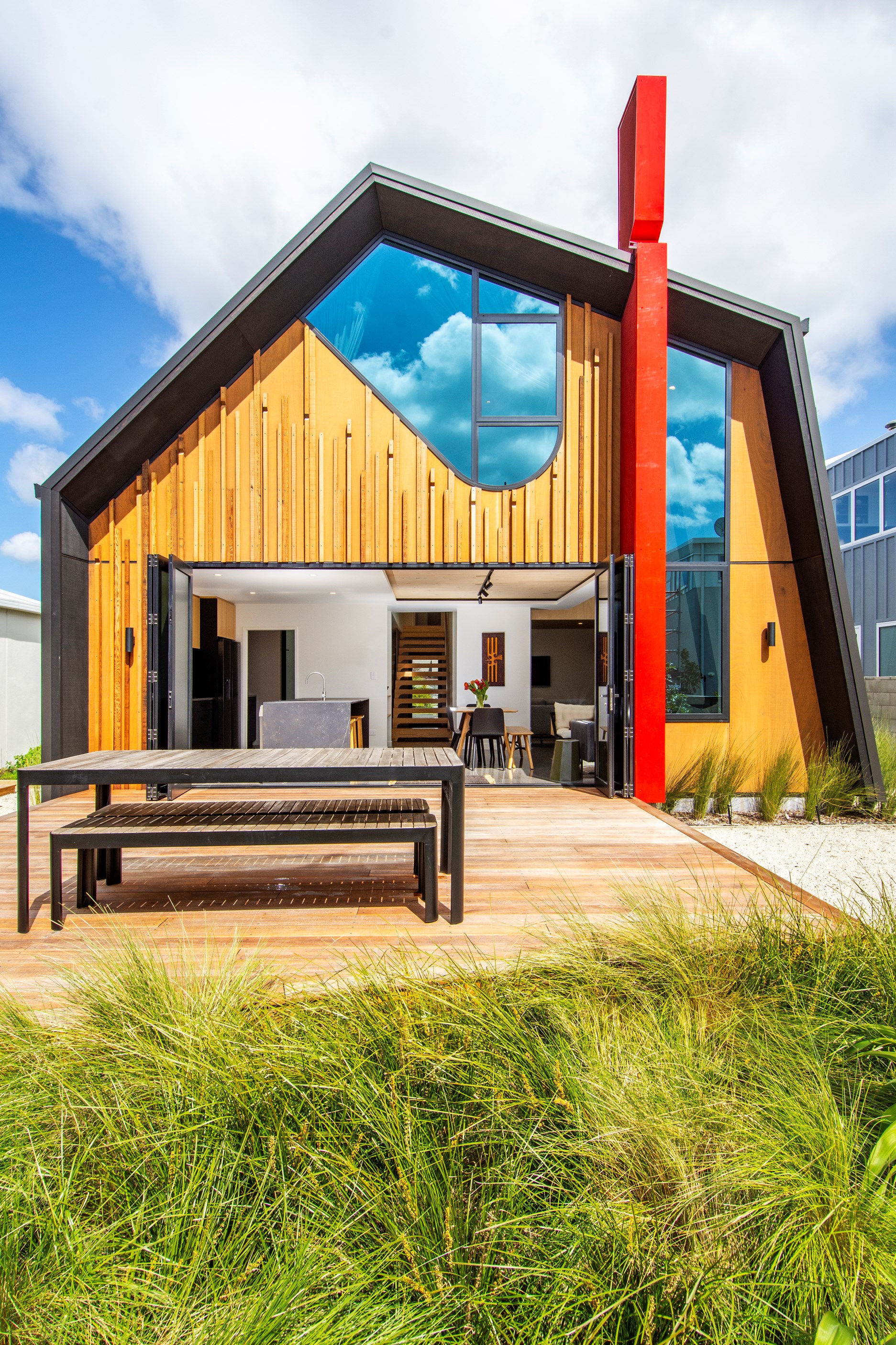 ‘Maungārongo’ honours the heritage of its Bay of Plenty surroundings and puts into practice sustainable initiatives. Traditional Māori whare are repositories of whakapapa (genealogy), knowledge and histories. Every element tells a story, from the pou whakairo (carved figures on the walls) to the tukutuku (decorative lattice) panels and kōwhaiwhai (painted rafters). They are places that connect people to people, and people to place. The design of this distinctive 194sqm three-bedroom home is in keeping with this custom, and depicts traditional whare in a contemporary way.