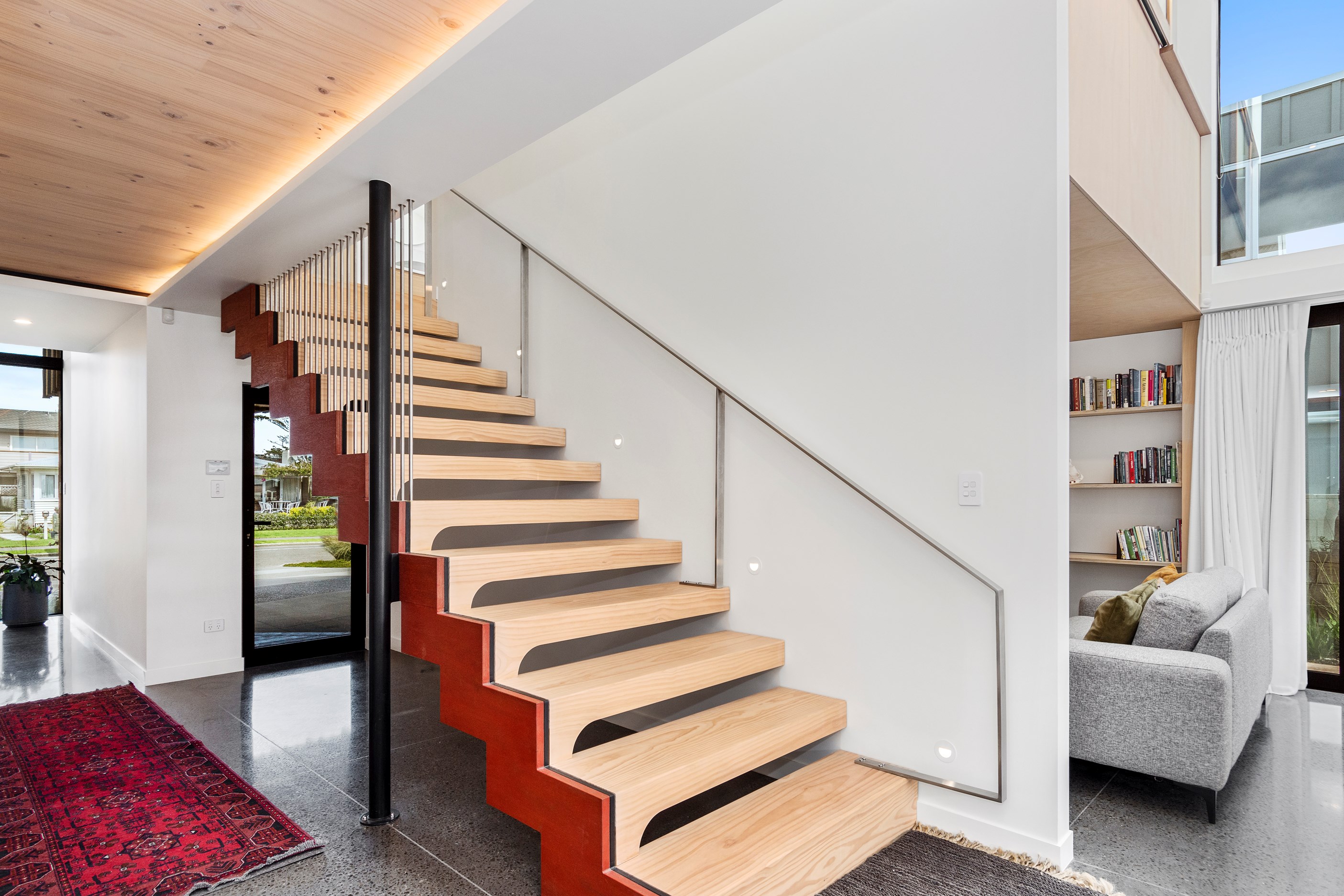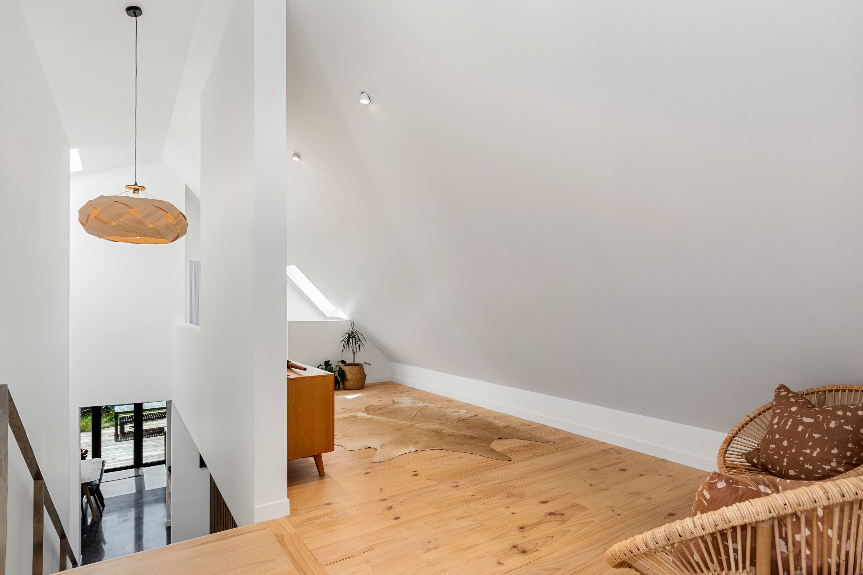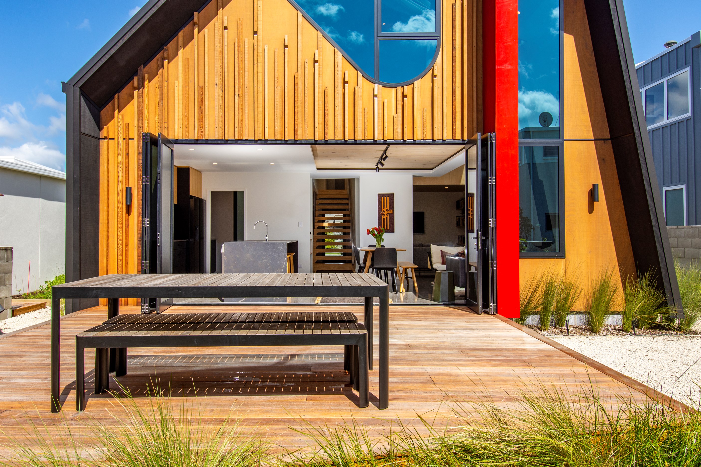 ‘Maungārongo’ honours the heritage of its Bay of Plenty surroundings and puts into practice sustainable initiatives. Traditional Māori whare are repositories of whakapapa (genealogy), knowledge and histories. Every element tells a story, from the pou whakairo (carved figures on the walls) to the tukutuku (decorative lattice) panels and kōwhaiwhai (painted rafters). They are places that connect people to people, and people to place. The design of this distinctive 194sqm three-bedroom home is in keeping with this custom, and depicts traditional whare in a contemporary way.