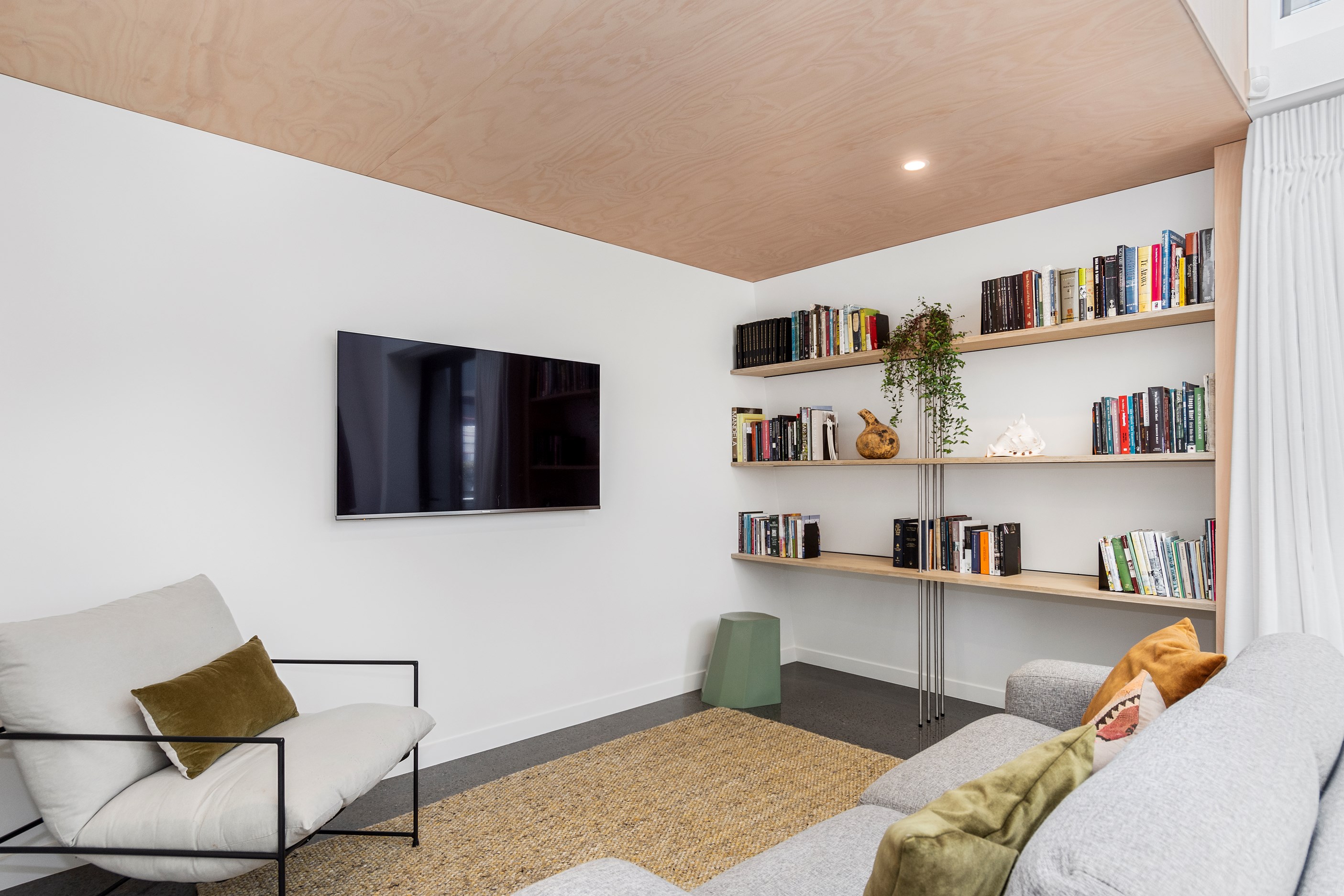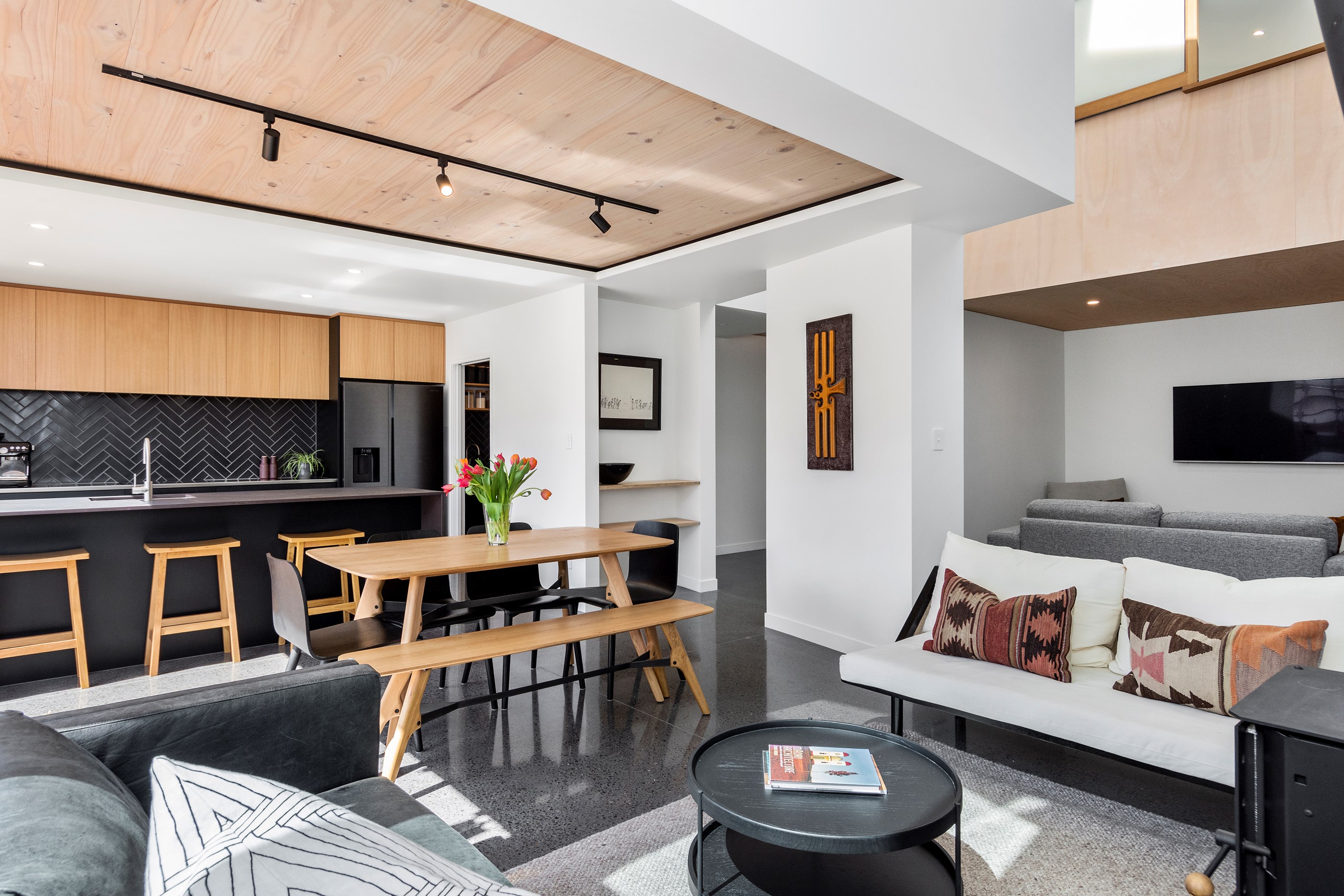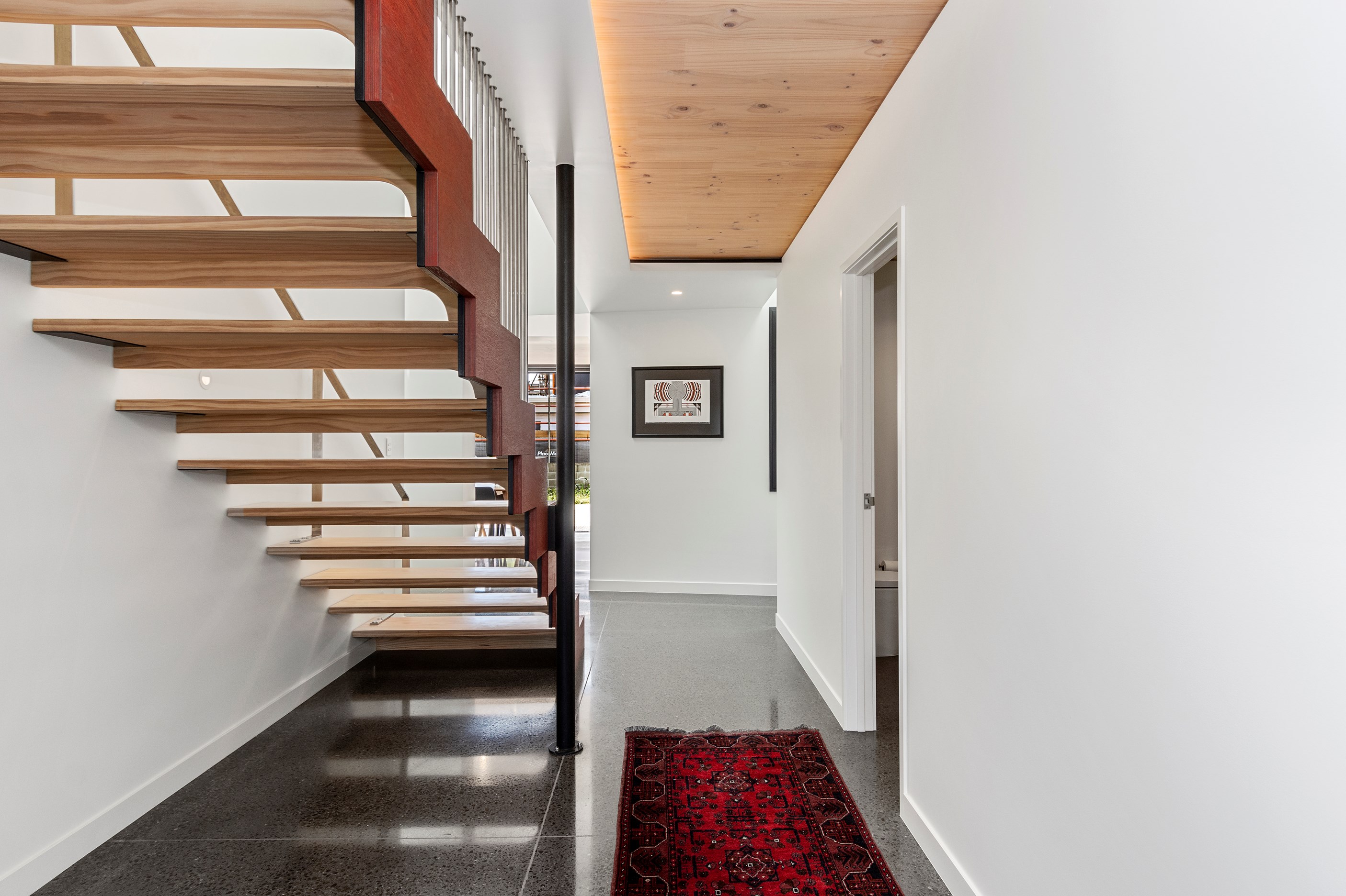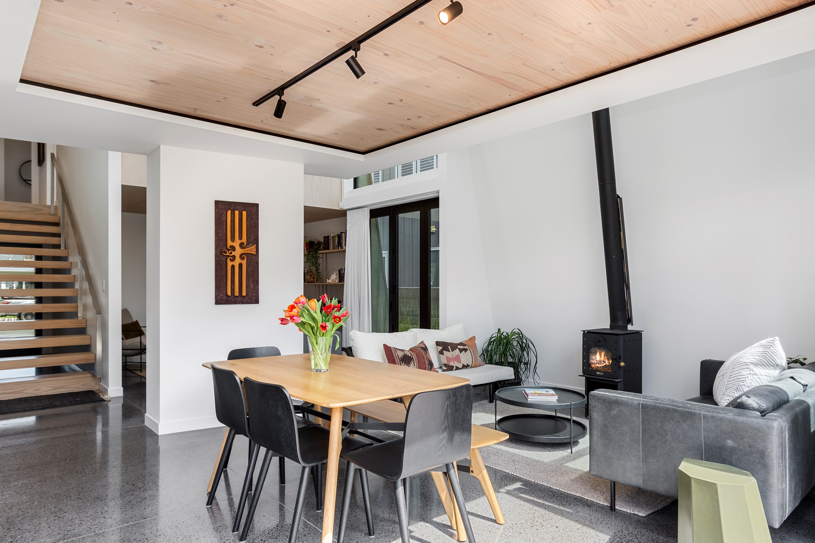 ‘Maungārongo’ honours the heritage of its Bay of Plenty surroundings and puts into practice sustainable initiatives. Traditional Māori whare are repositories of whakapapa (genealogy), knowledge and histories. Every element tells a story, from the pou whakairo (carved figures on the walls) to the tukutuku (decorative lattice) panels and kōwhaiwhai (painted rafters). They are places that connect people to people, and people to place. The design of this distinctive 194sqm three-bedroom home is in keeping with this custom, and depicts traditional whare in a contemporary way.