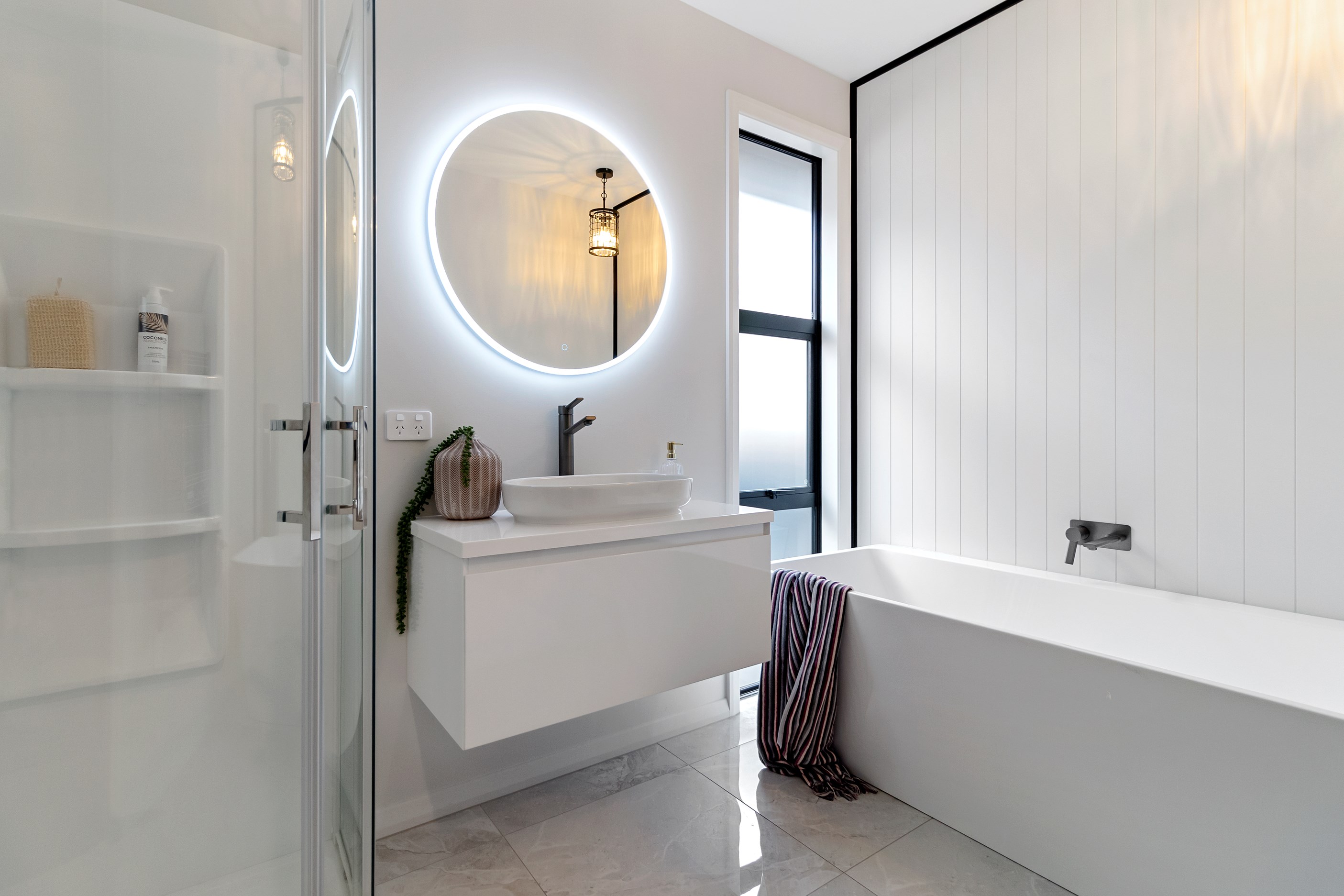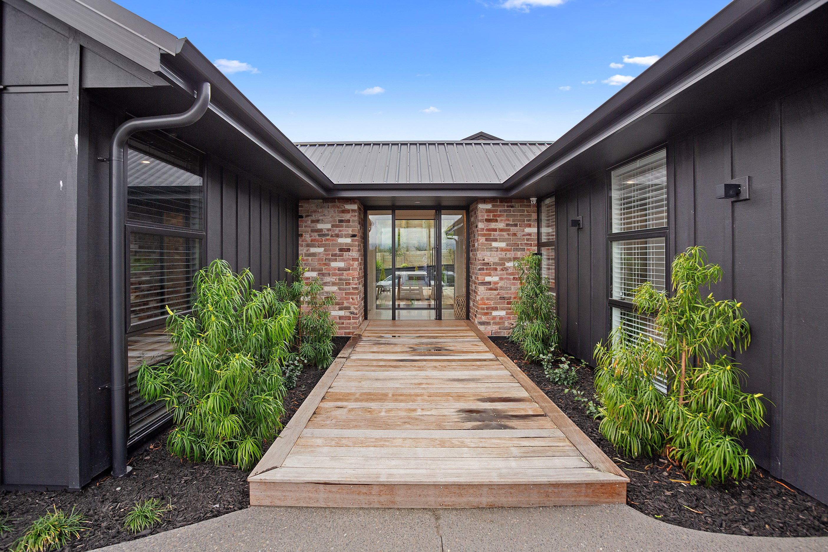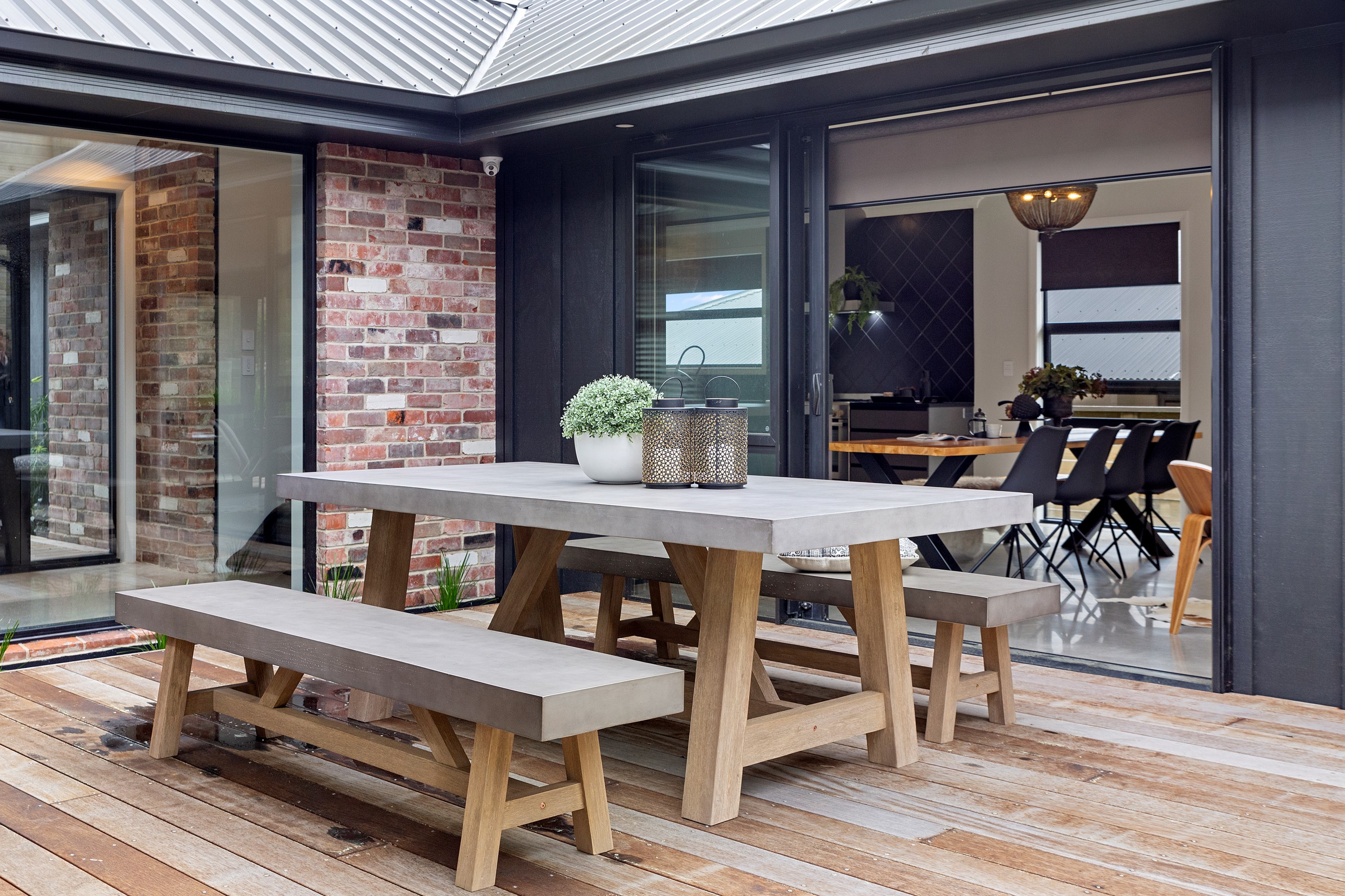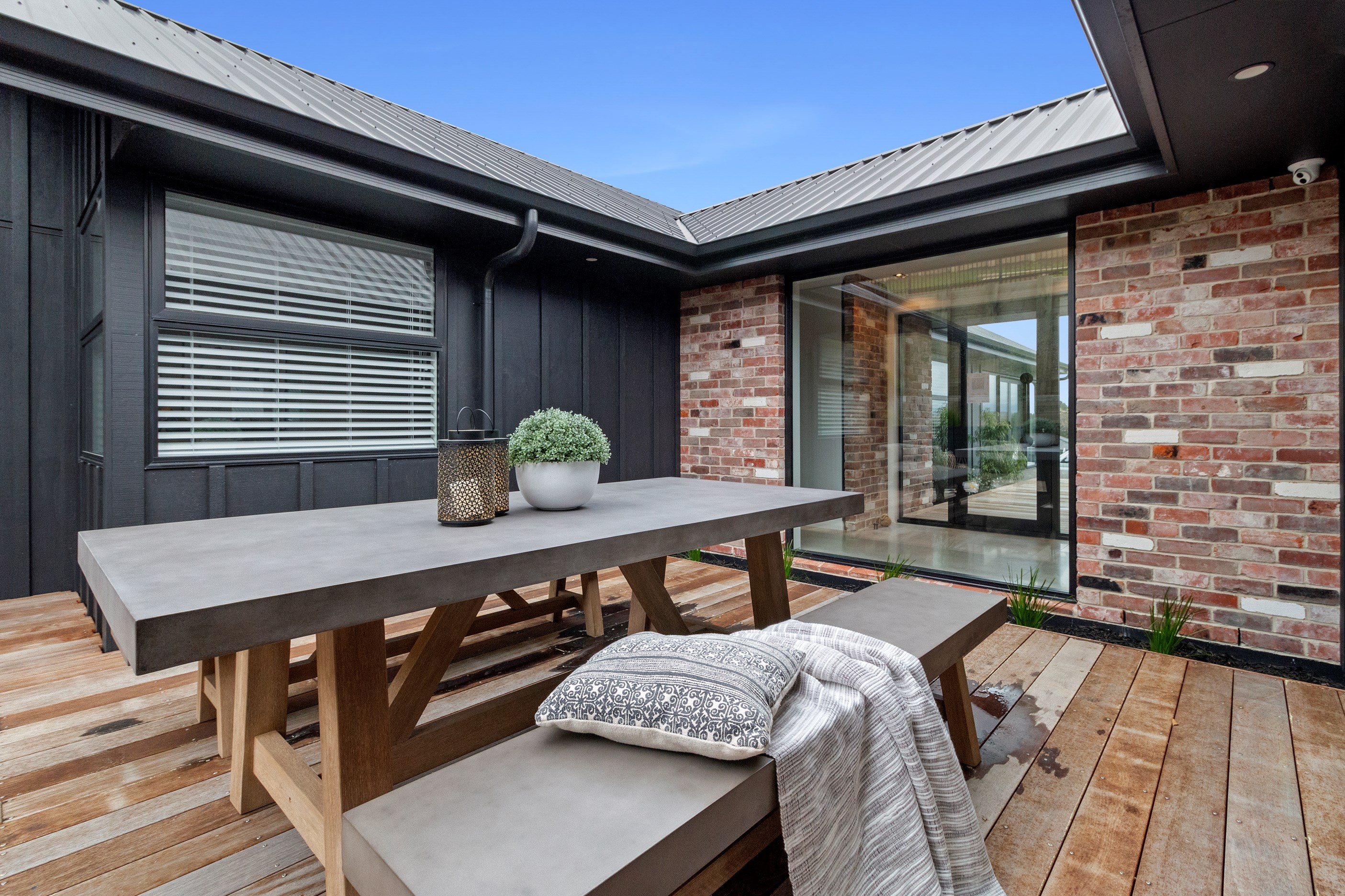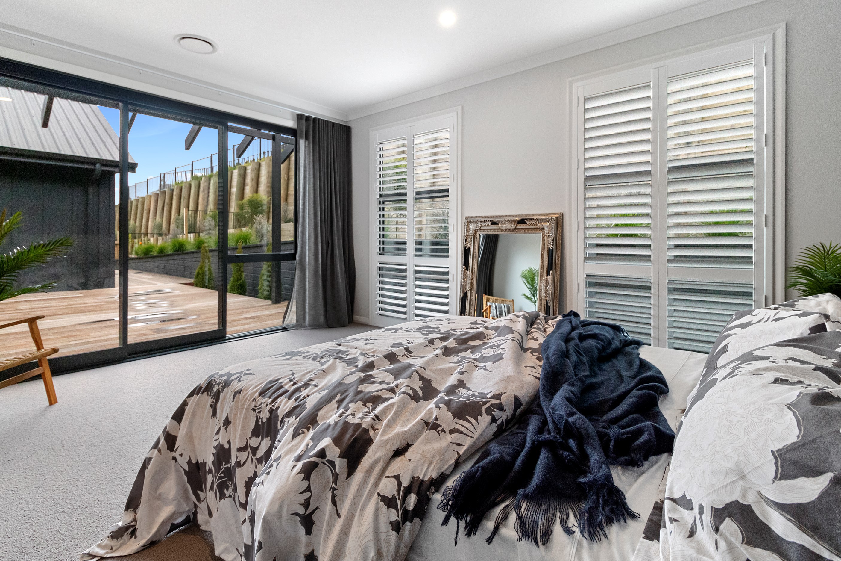 The ‘Pavillion’ design is popular for its layout and strong lines, but there are plenty more reasons why it has become a customer favourite. Solar panels mean this Tauranga show home can be run throughout the day, without having to draw electricity from the grid. Polished concrete floors are warmed by the morning sun.