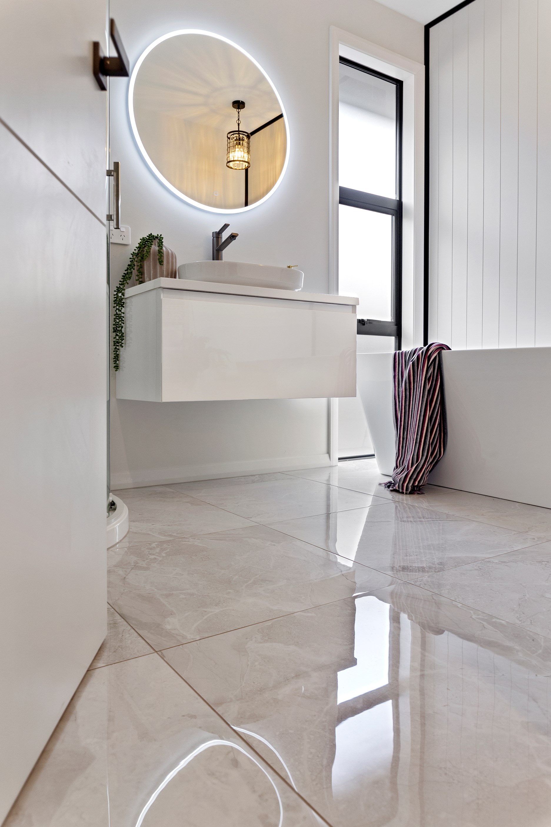 The bathrooms, with their quality fittings, provide a quiet sanctuary and there’s also a freestanding bath.