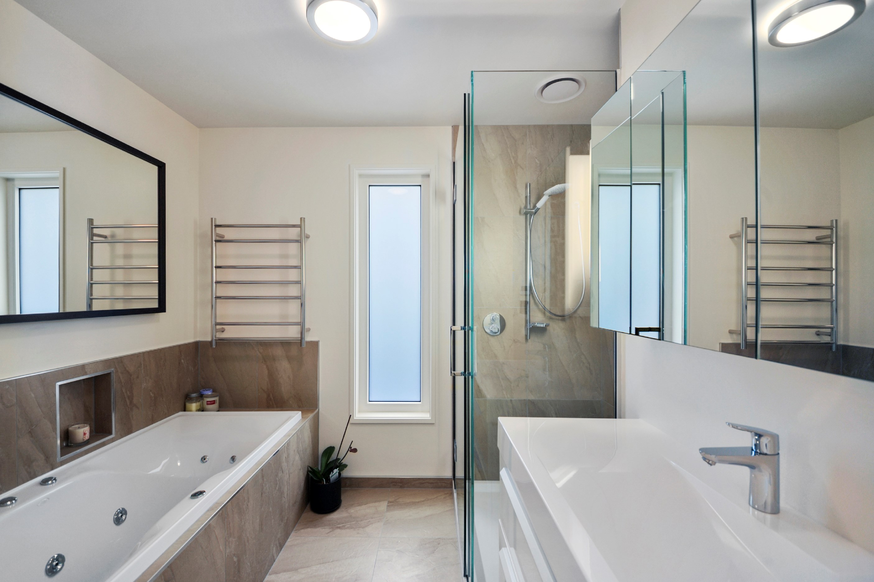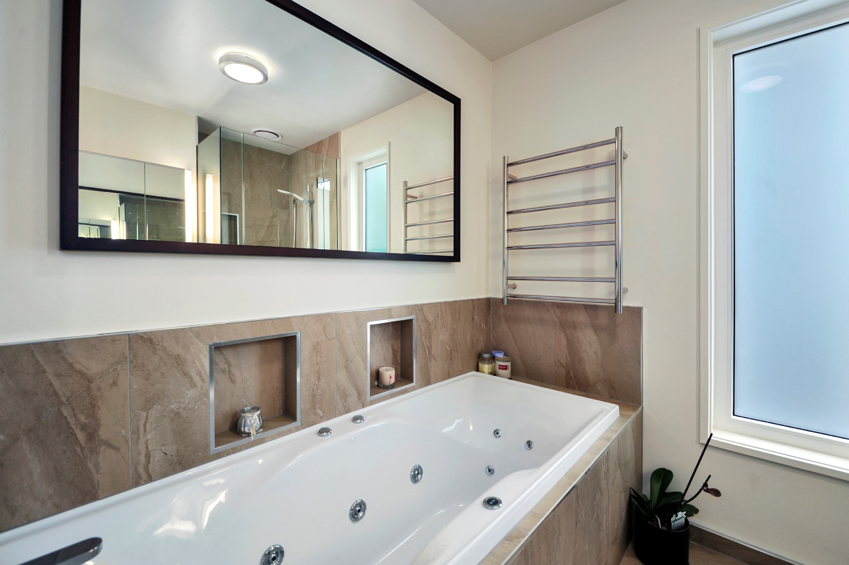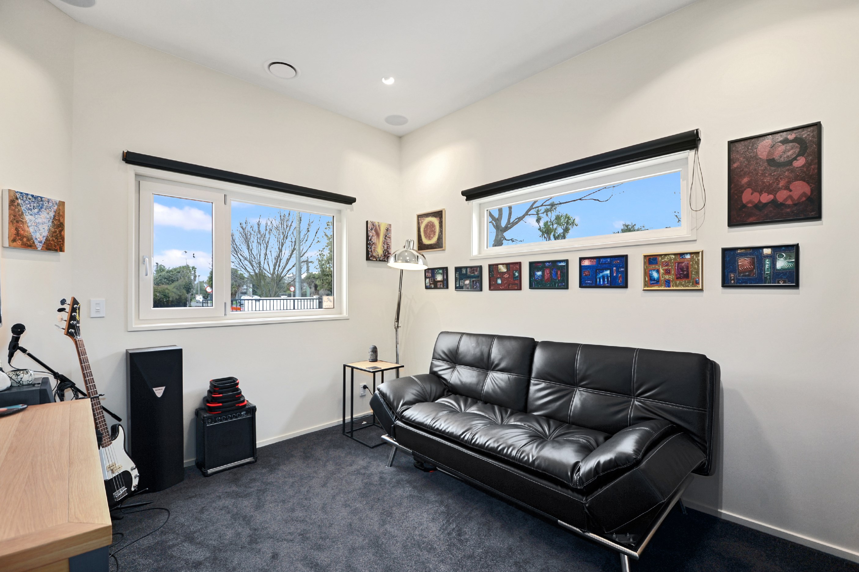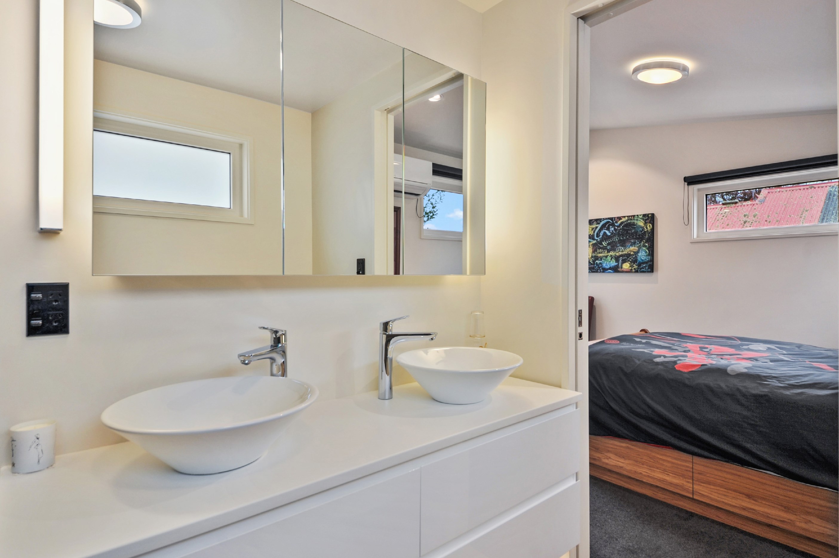 The main bedroom also opens out to the outdoor entertainment area, and features an ensuite with a double vanity and walk-in shower. Plenty of glazing and water-saving outlets ensure that this home minimises its environmental footprint, without compromising on comfort and style.