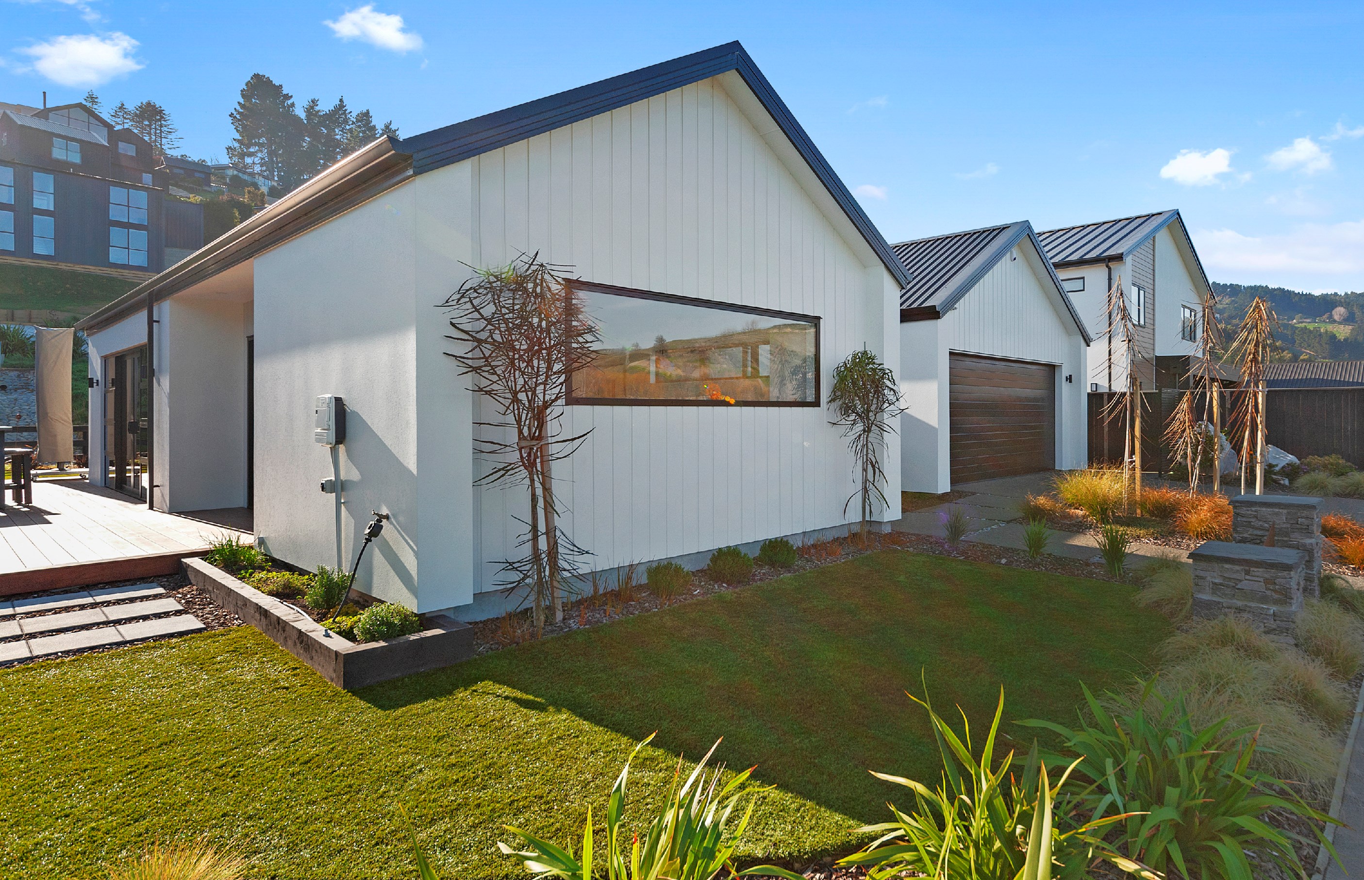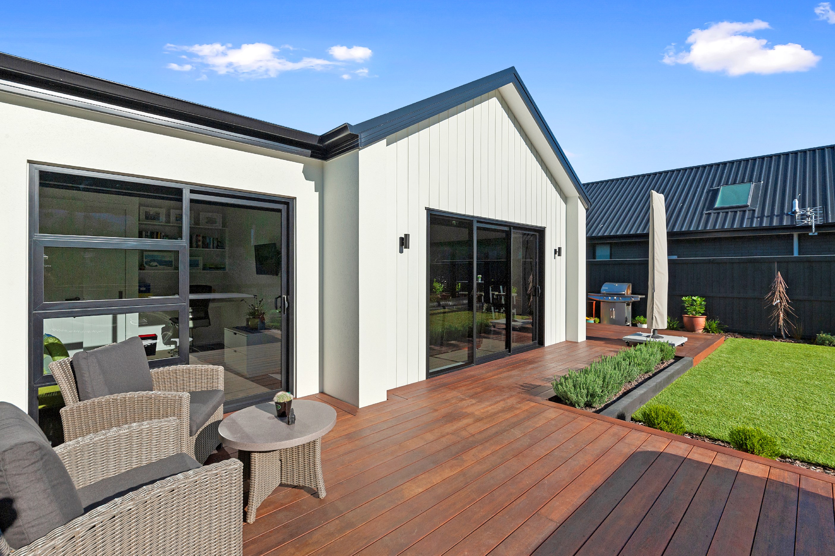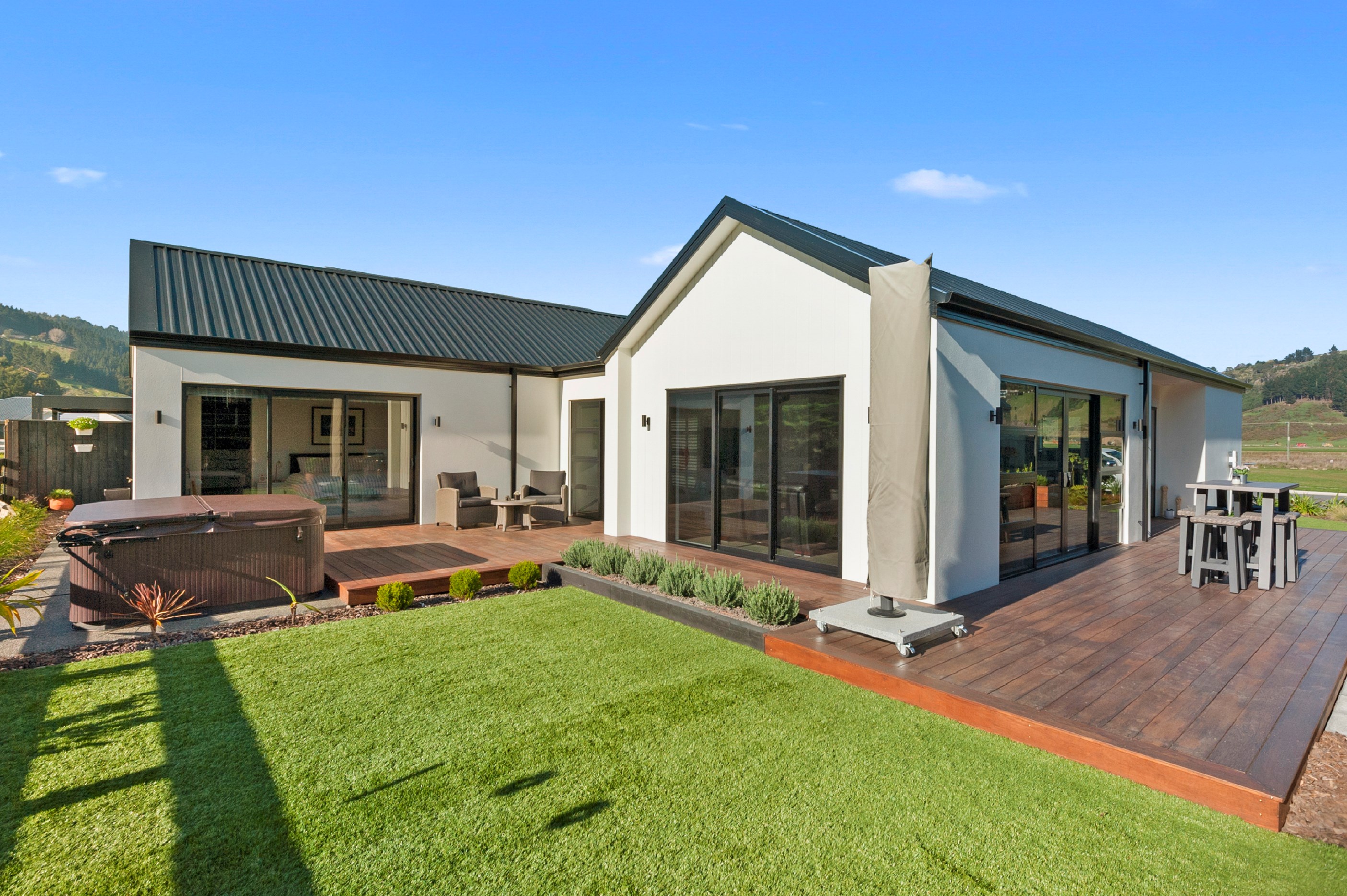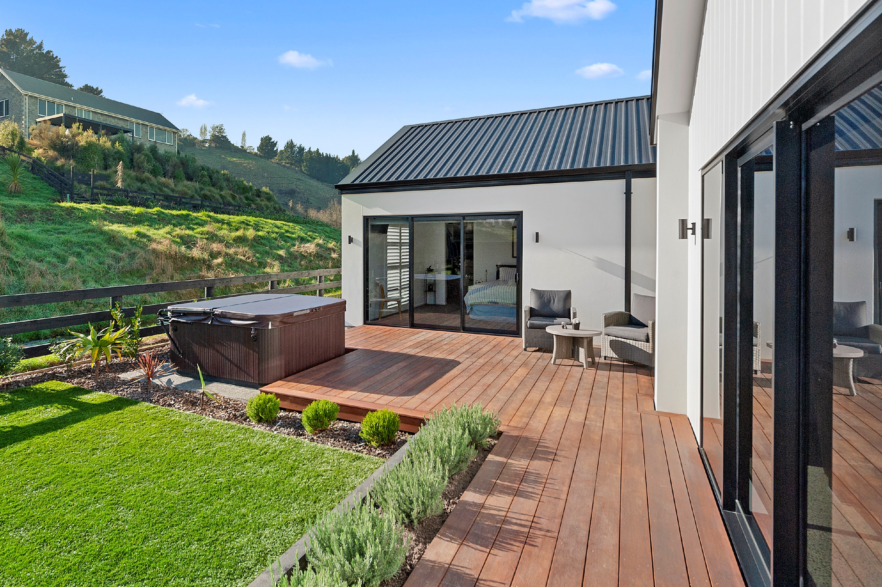 With uncompromised quality and outstanding design, this new build leaves no detail overlooked. Expertly arranged for socialising and relaxation, the living area features a pitched ceiling for a wonderful sense of space, and sliding doors seamlessly open out onto a deck area. Complete with a luxurious spa pool and plant boxes, this space steps down onto a flat lawn – the place to be on warm, sunny days.