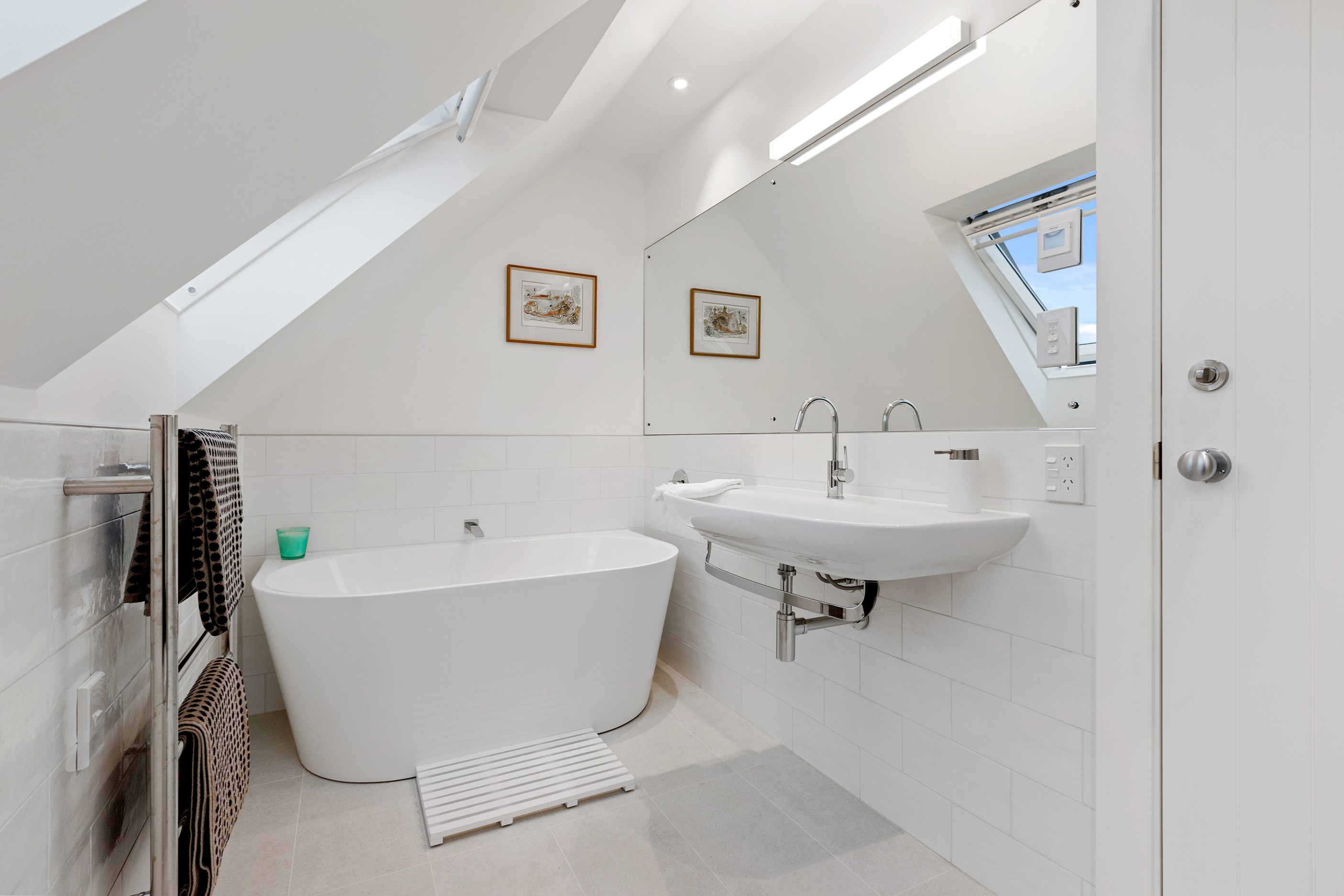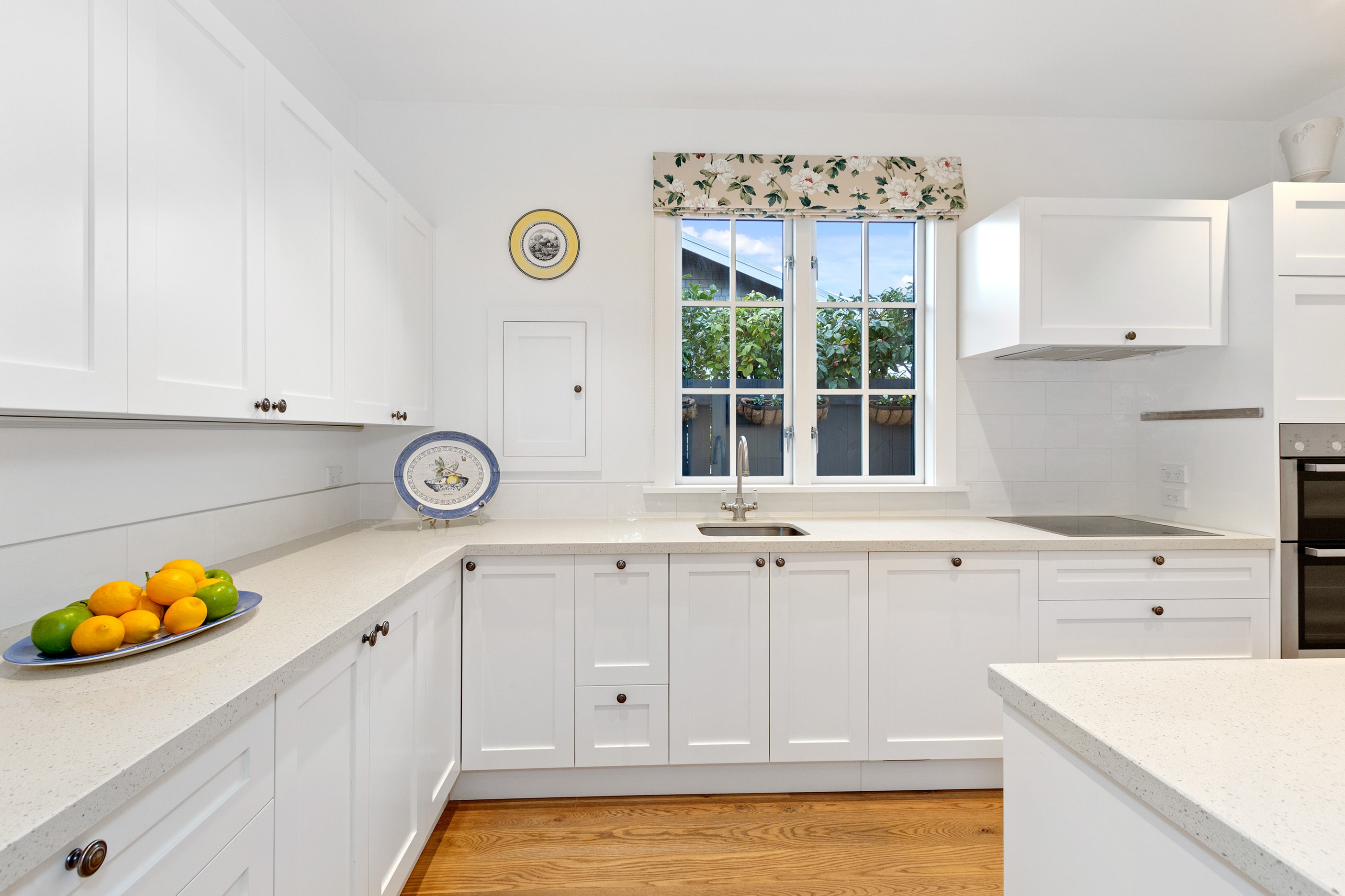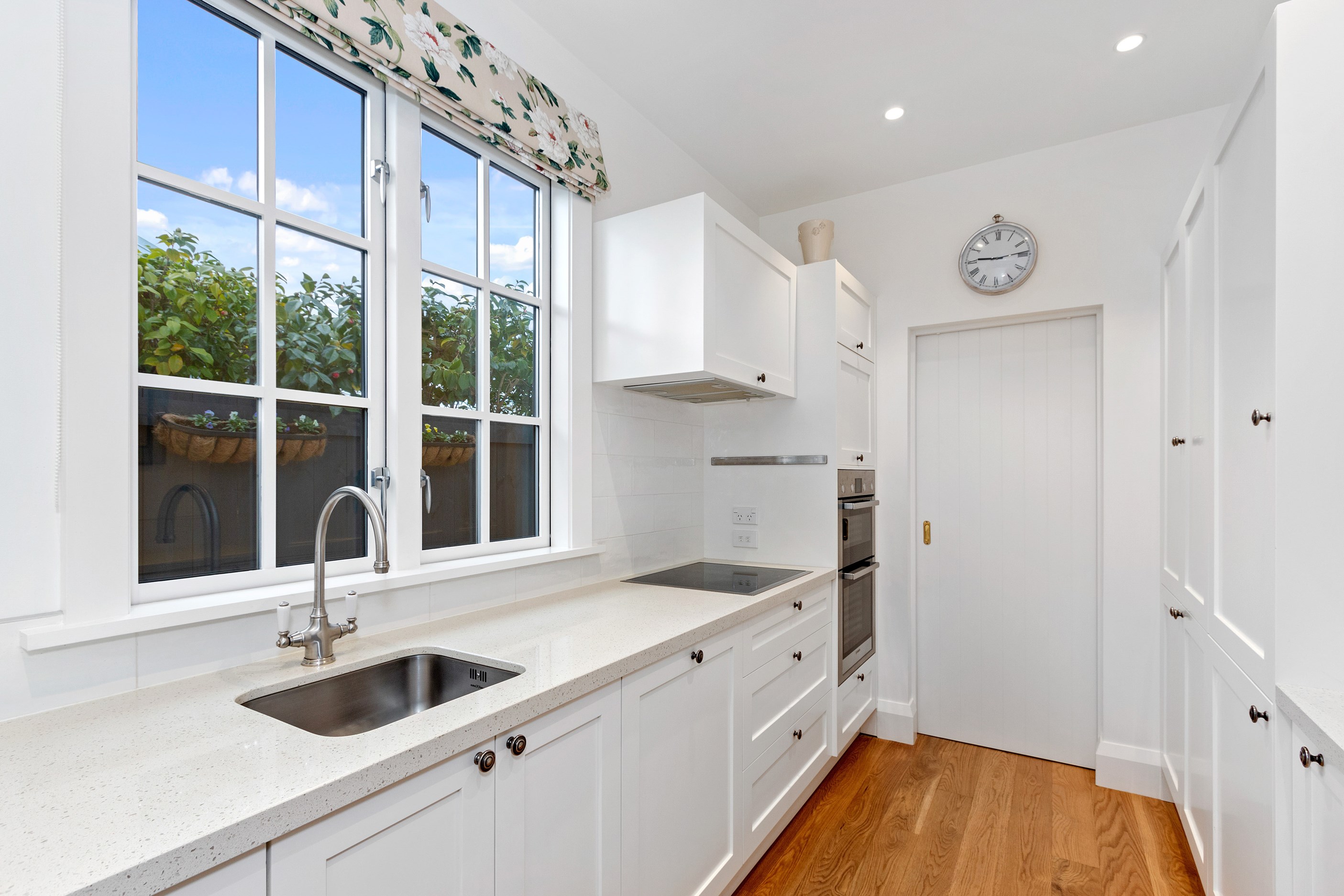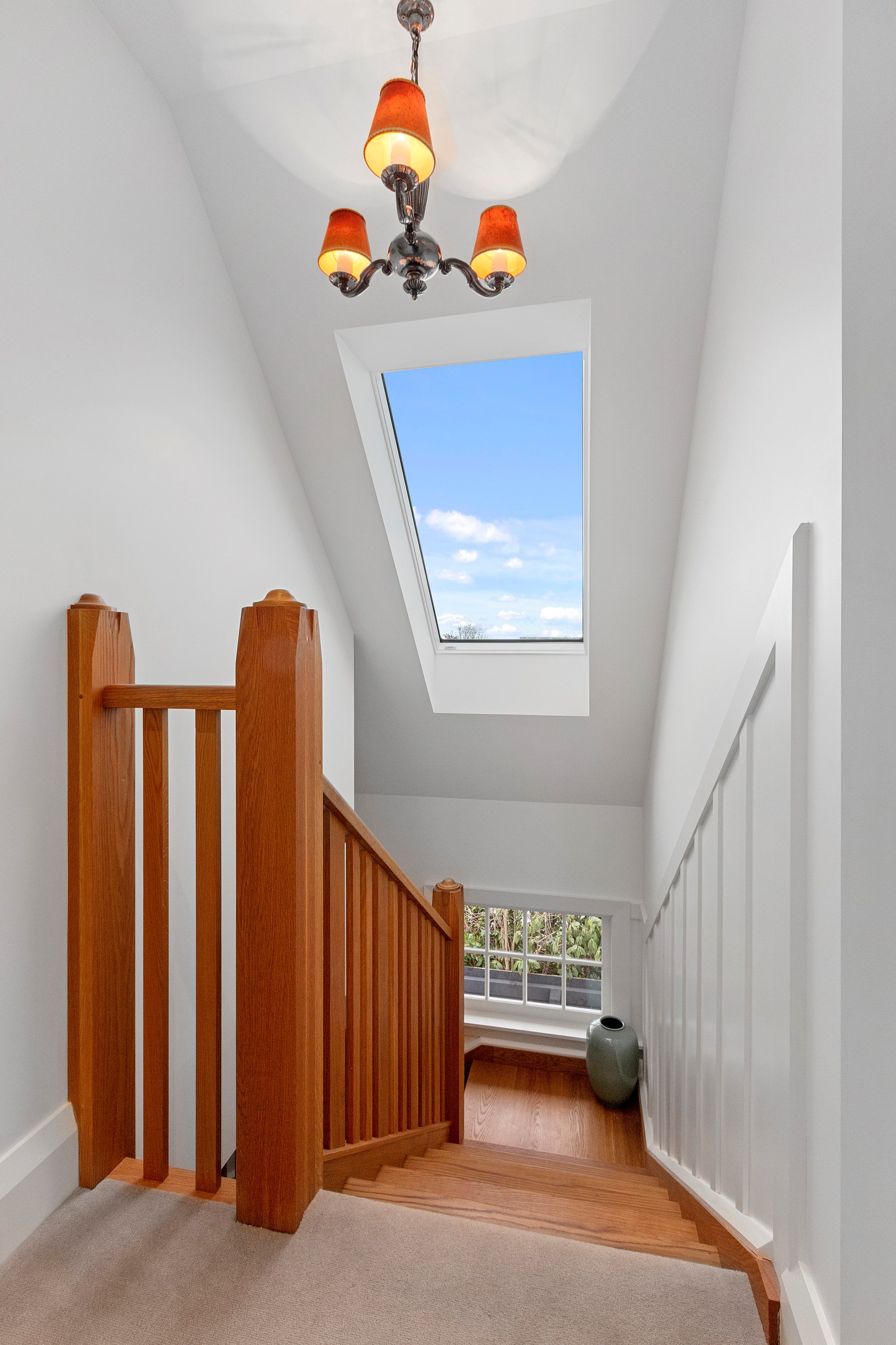 The house is crafted in traditional materials that are in step with the original weatherboards and cedar shingles, only now there are double-glazed windows and a smart Colorsteel roof. Interior finishes include oak timber floors and a charming oak staircase, while joinery replicates the original look but in a more contemporary way. The rebuild has also managed to preserve the existing planting and landscaping, so the new home appears to have been in situ for many years. It’s all charm.